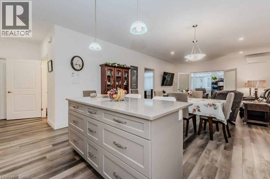 MLS# 40680923 – FOR SALE : 375 Mitchell Road S Unit# 41 Listowel – 2 Beds, 2 Baths Attached Row / Townhouse ** Lovely life lease bungalow in Listowel, perfect for your retirement! With 1,333 sq ft of living space, this home has 2 bedrooms, 2 bathrooms and is move-in ready. Walk through the front foyer, past the 2 piece powder room into the open concept space. The white kitchen has ample counter space and large island, a great spot for your morning cup of coffee! The living room leads into an additional room, perfect for a home office or craft room. There are 2 bedrooms including a primary bedroom with 3 piece ensuite with a walk-in shower. The in-floor heating throughout the house is an added perk, no more cold toes! The backyard has a private patio with a gas BBQ. This home has a great location with easy access to downtown, Steve Kerr Memorial Recreation Complex and much more! (id:51158) ** 375 Mitchell Road S Unit# 41 Listowel **