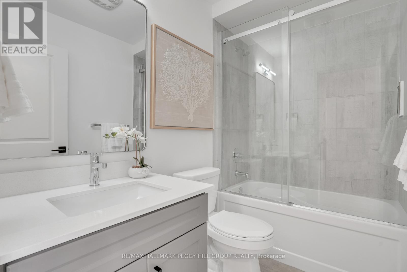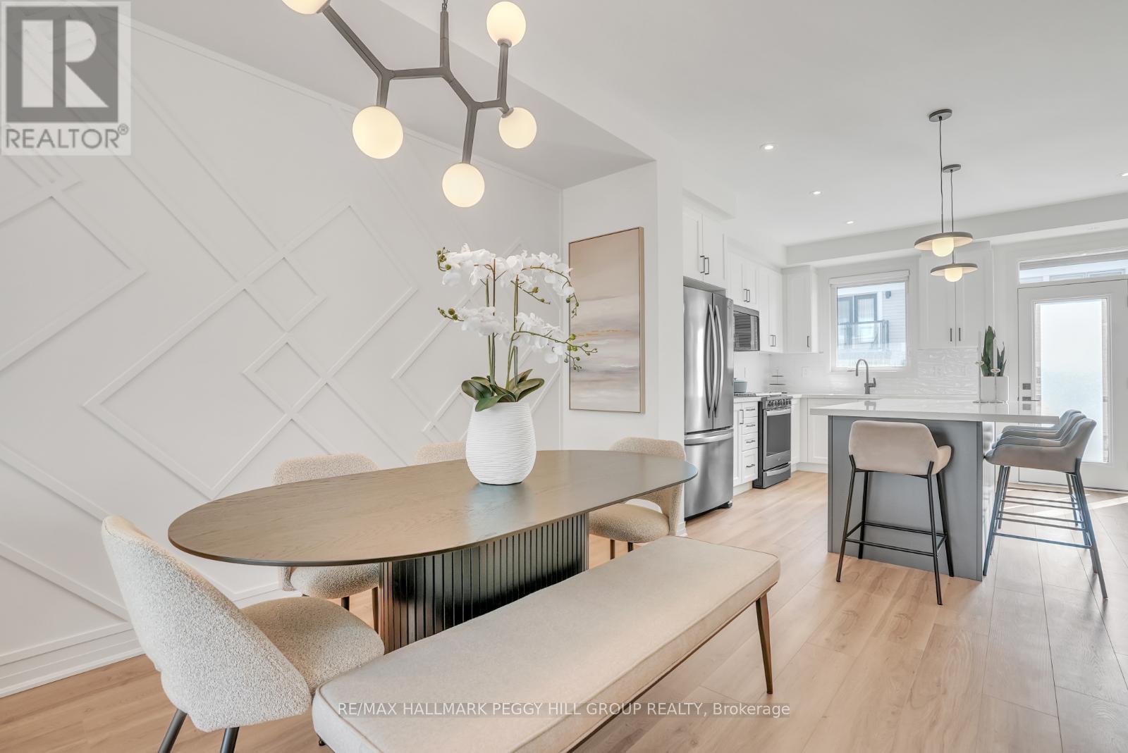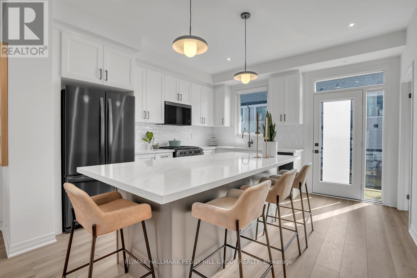 A NEW STANDARD OF LIVING ELEGANCE, COMFORT & COMMUNITY COMBINED! Welcome to the Townes at Deer Springs by Honeyfield Communities. Sophistication, peace of mind, and a true sense of community come together in this brand-new 3-storey end-unit townhome. Located in a newly established neighbourhood, this thoughtfully upgraded home delivers stylish, low-maintenance living. Premium laminate flooring runs throughout, including the upper level, paired with upgraded tile in select areas. The open-concept layout features a modern kitchen with upgraded cabinetry, quartz countertops, a brick-patterned tile backsplash, under-cabinet valance lighting, a zero-radius undermount sink, upgraded base cabinet for a built-in microwave, counter-depth deep upper cabinet above the fridge with one gable, a chimney-style stainless steel hood fan, and stainless steel appliances including a counter-depth fridge, gas range with front controls, and dishwasher with 3rd rack. The great room features a 50 wide built-in floating electric fireplace set on a contemporary feature wall, with a TV wall-mount rough-in above. The primary suite includes a walk-in closet and a 3-piece ensuite with upgraded quartz vanity, frameless glass shower door with niche, and matte black fixtures. The main bathroom offers an upgraded vanity, quartz countertop, frameless glass tub sliding door, and Moen plumbing fixtures. Additional highlights include white front load washer and dryer, LED pot lights, smart lock, matte black front entry gripset and door hardware, smooth ceilings, elegant oak-finish stairs, central air, and rough-ins for a gas stove and fridge water line. Two balconies with glass railings and a fenced backyard extend your living space. Images shown are of the model home and are intended to represent what the interior can look like. (id:51158)