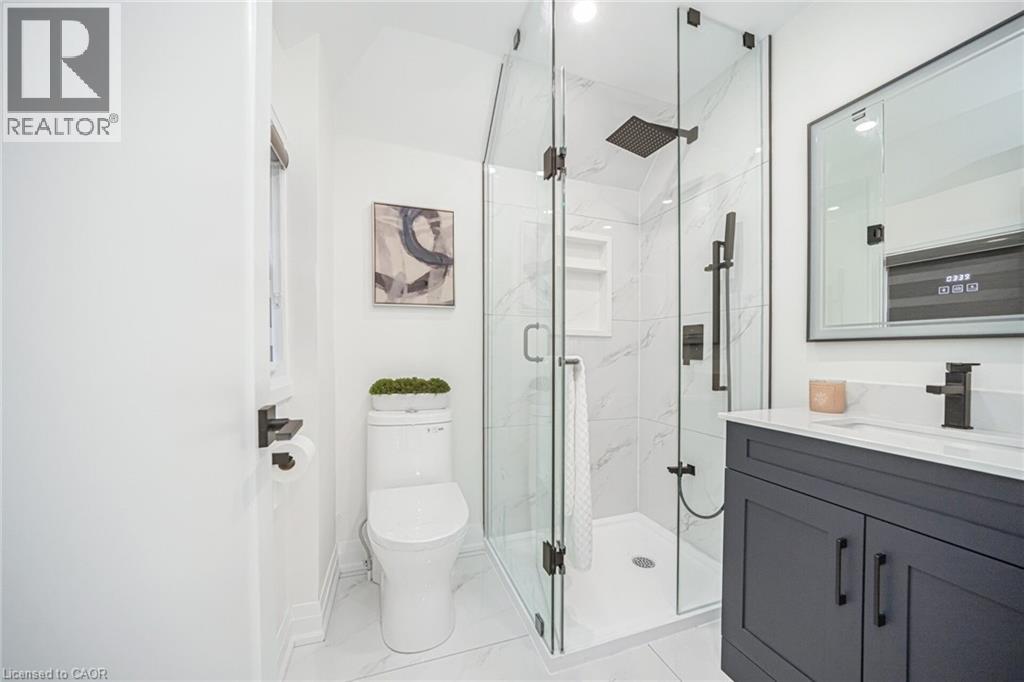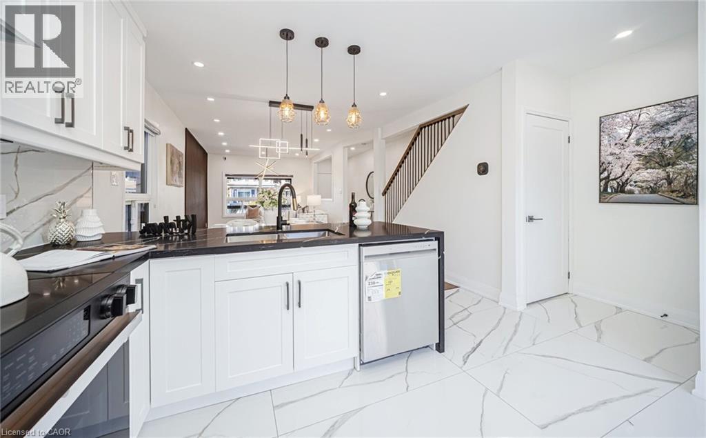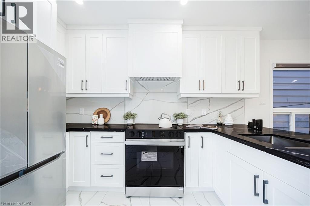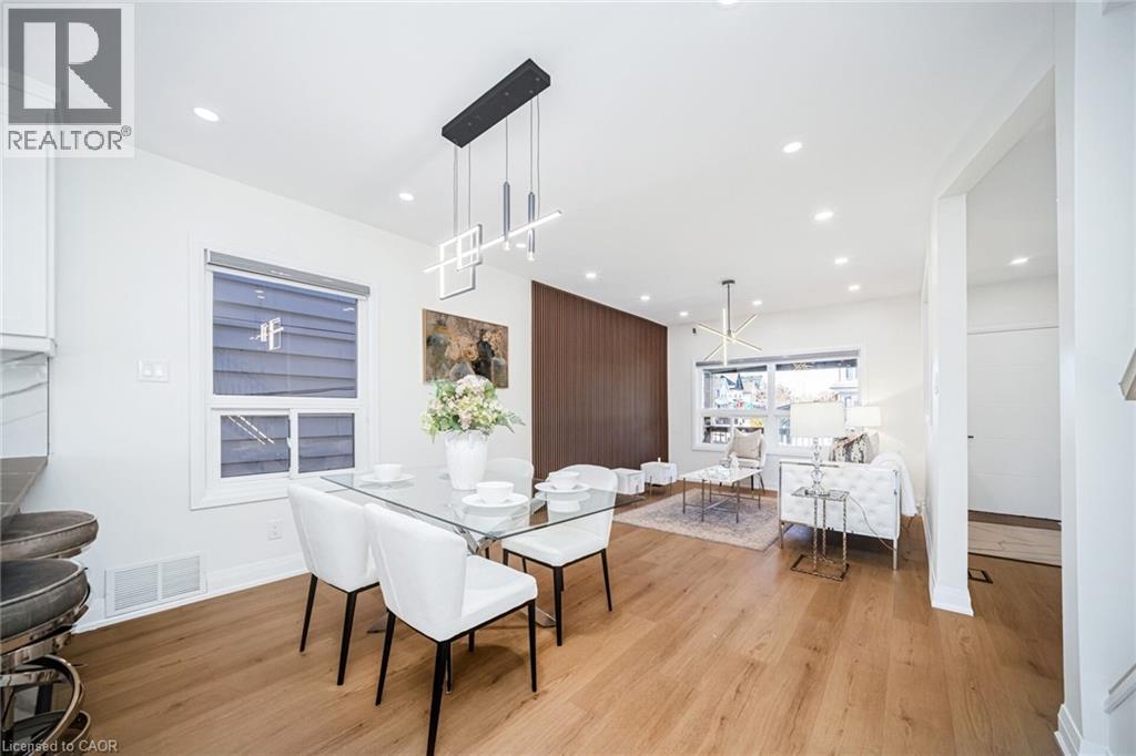Gage Park Family-Friendly Neighbourhood Fully Renovated, Custom-Designed Home — Move-In Ready! This impeccably renovated property showcases top-to-bottom upgrades completed with city permits, blending modern luxury with functional design. Enjoy a stunning custom kitchen with a waterfall countertop and stainless steel appliances, complemented by brand-new flooring, doors, stairs, railings, and fresh designer paint throughout. The home features a fully upgraded main bathroom with contemporary finishes, as well as a new powder room. All new plumbing throughout the house, and completely new electrical wiring, with an upgraded 200-amp panel and ESA certificate. Exterior enhancements include new siding on both the front and back, a new rear deck, a new fence, an inviting front porch, and refreshed landscaping that elevates curb appeal. Additional features include a new AC unit, improved insulation for energy efficiency, and a dedicated EV charger receptacle, offering the perfect blend of comfort, style, and modern living. Within walking distance to King Street (LRT), parks, schools, library, community centre, and much more. (id:51158)