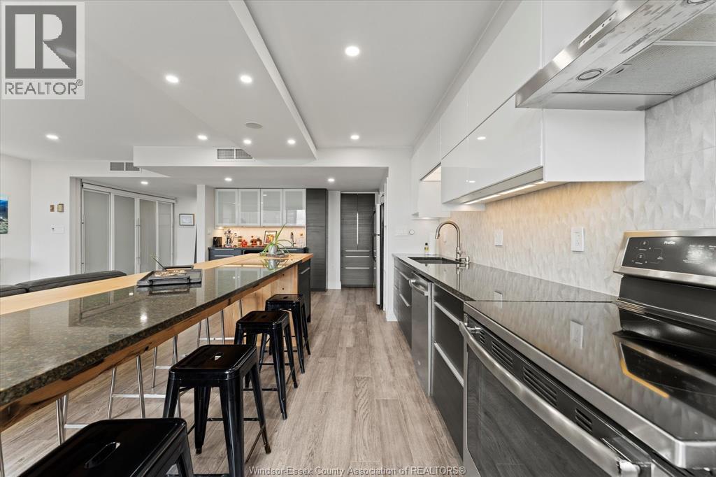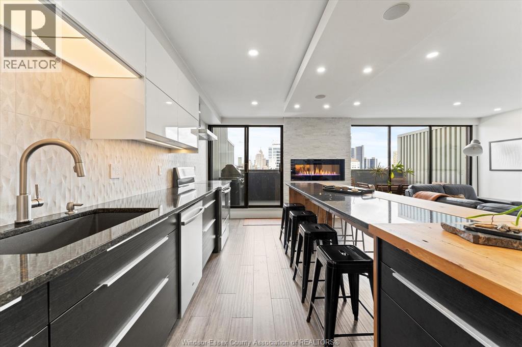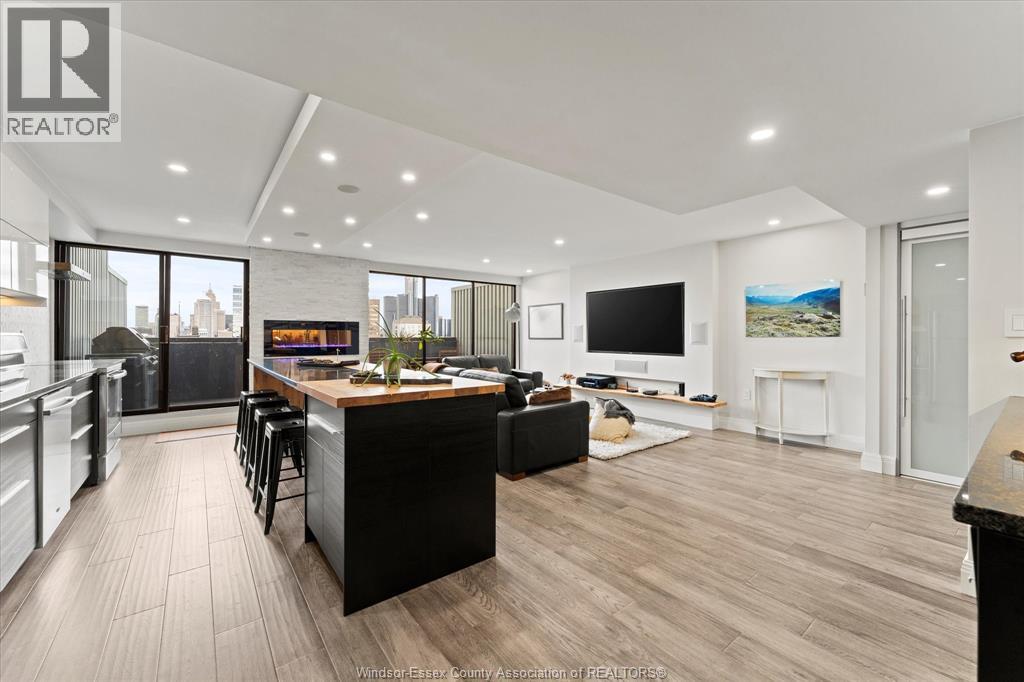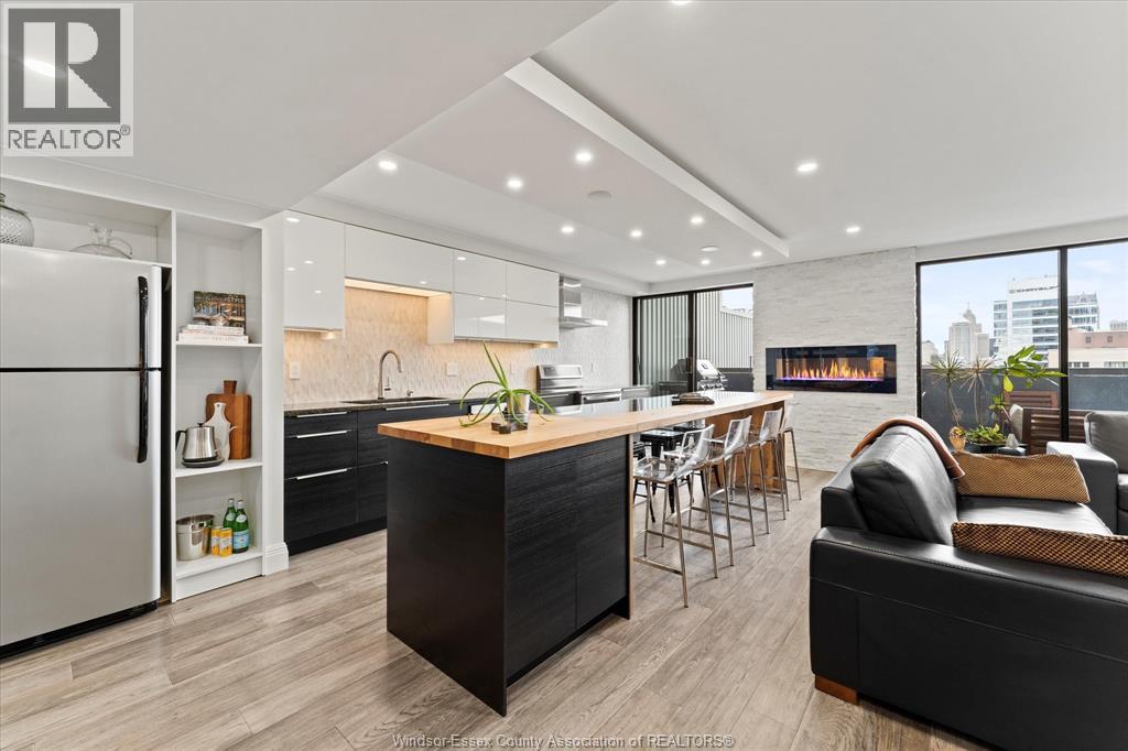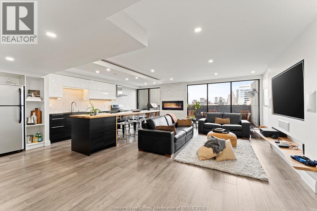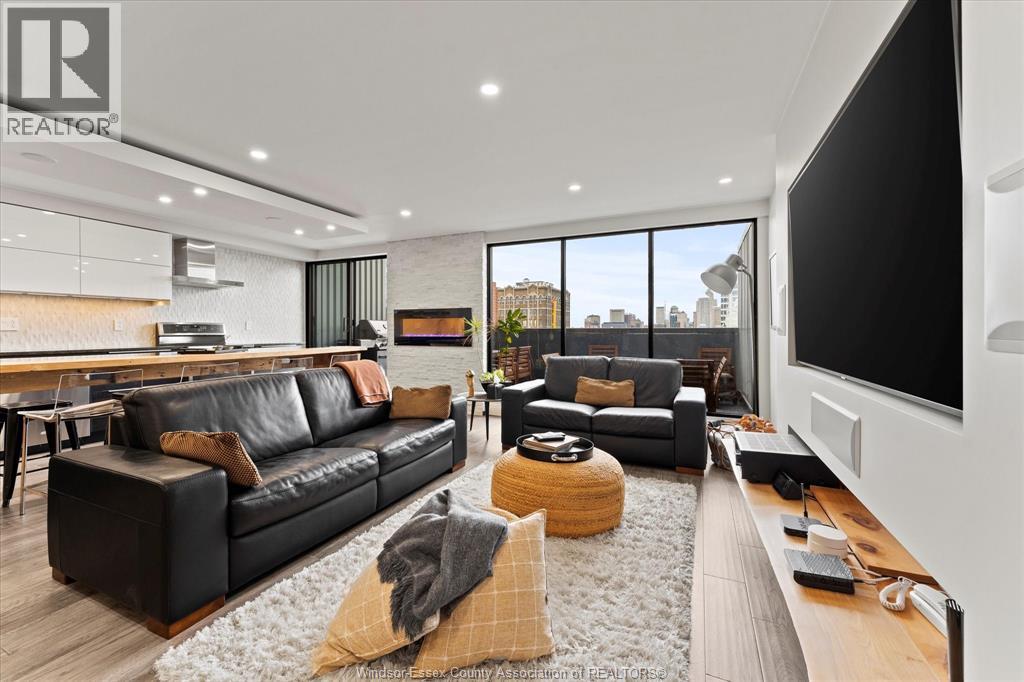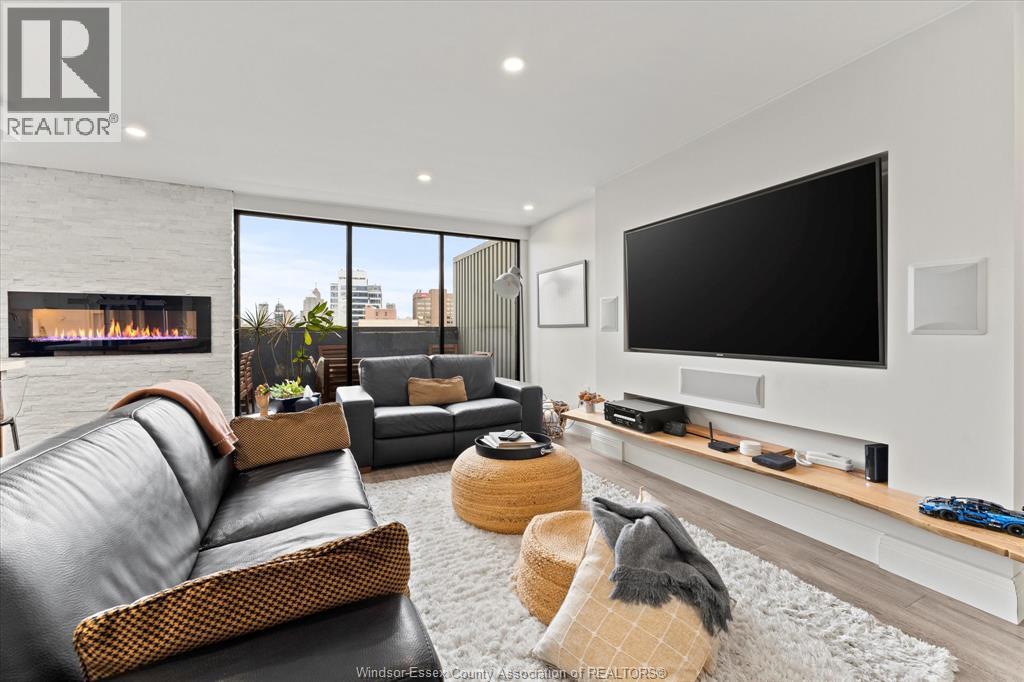 $743.97 MonthlyONE-OF-A-KIND TWO-STORY CONDO IN THE ROYAL TERRACE! Experience urban modern living at its finest in this stunning 1230 sq. ft. unit located in the heart of Downtown Windsor. This spacious 2-bedroom, 2-bath condo features a sleek open-concept design with a striking updated kitchen, complete with a large center island, contemporary cabinetry, and an eye-catching geometric backsplash. The expansive living and dining area showcases floor-to-ceiling windows that flood the space with natural light, a feature wall fireplace, and direct access to a private balcony with panoramic city and water views — perfect for entertaining or relaxing. The upper level offers two generously sized bedrooms, including a primary suite with ensuite bath. Enjoy resort-style amenities including an indoor pool, party room, sauna, whirlpool, and car wash area. Steps away from the waterfront, restaurants, cafés, and the University of Windsor’s downtown campus — this rare two-level condo combines space, style, and convenience in one incredible address! (id:51158)