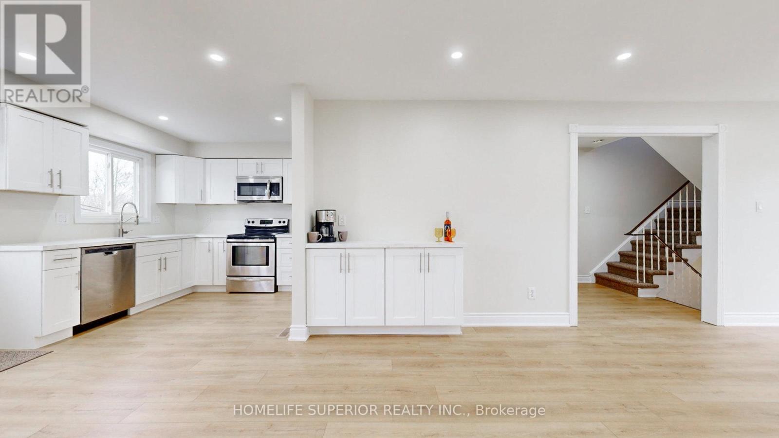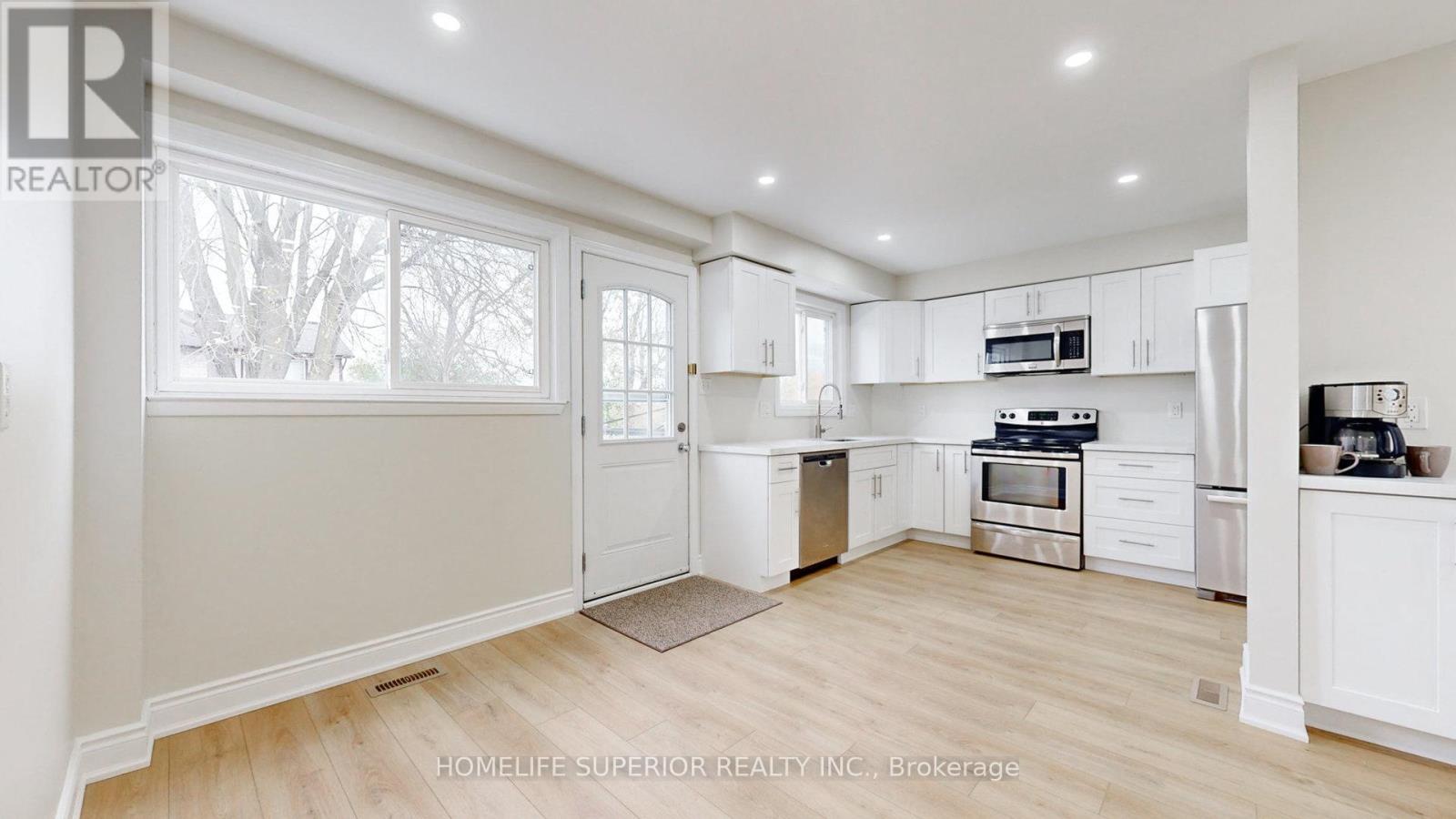 Bring the family! Overimproved, fully renovated 3+1 bedroom home with self-contained basement in-law suite in a prime location, backing onto a quiet park. $$$ spent to refinish top to bottom! Luxury vinyl floor, baseboards and pot light throughout. Huge Living room/Dining room combo with coffee/wine bar. Eat-in Kitchen with quartz counters, double size SS sink with pull down tap, stainless steel appliances, direct vent microwave and W/O to yard. Upper 4pc bathroom has new toilet, tub surround and new vanity with quartz counter and new faucets in sink and bathtub. Basement has private entrance to living room with pot lights and laminate floor, 4th bedroom with double closet and laminate floor, island kitchen with quartz counters, double size SS sink, pull down faucet, pot lights and luxury vinyl flooring and 4pc bathroom. Interlock front walkway with paving stones so tandem parking is an option. Separate shared laundry. Shed, patio and deck in fully fenced yard backing onto park. Walk to shopping, schools, parks, rec centre, Trent University campus..., close to 401 access and Go Station. (id:51158)