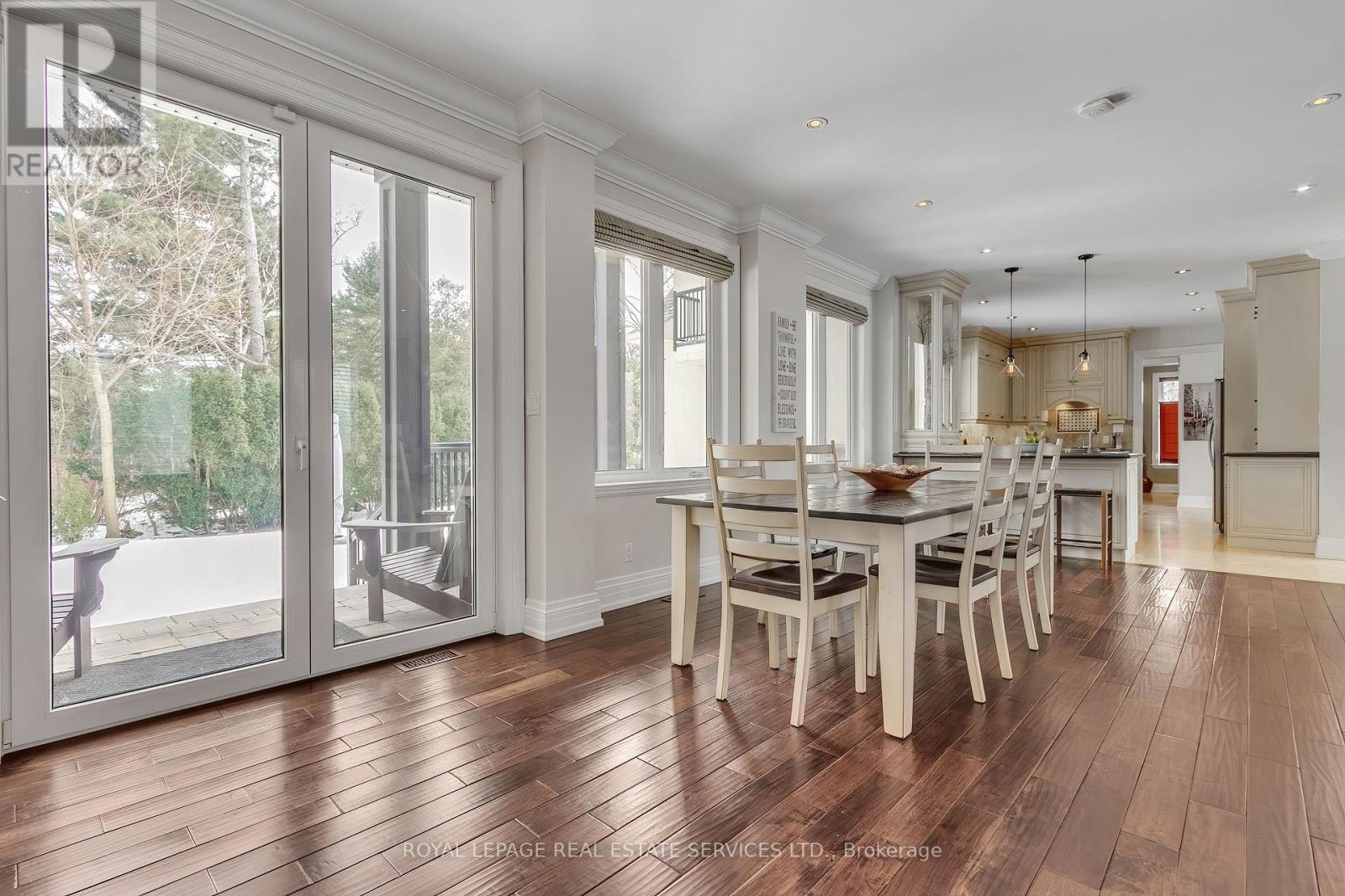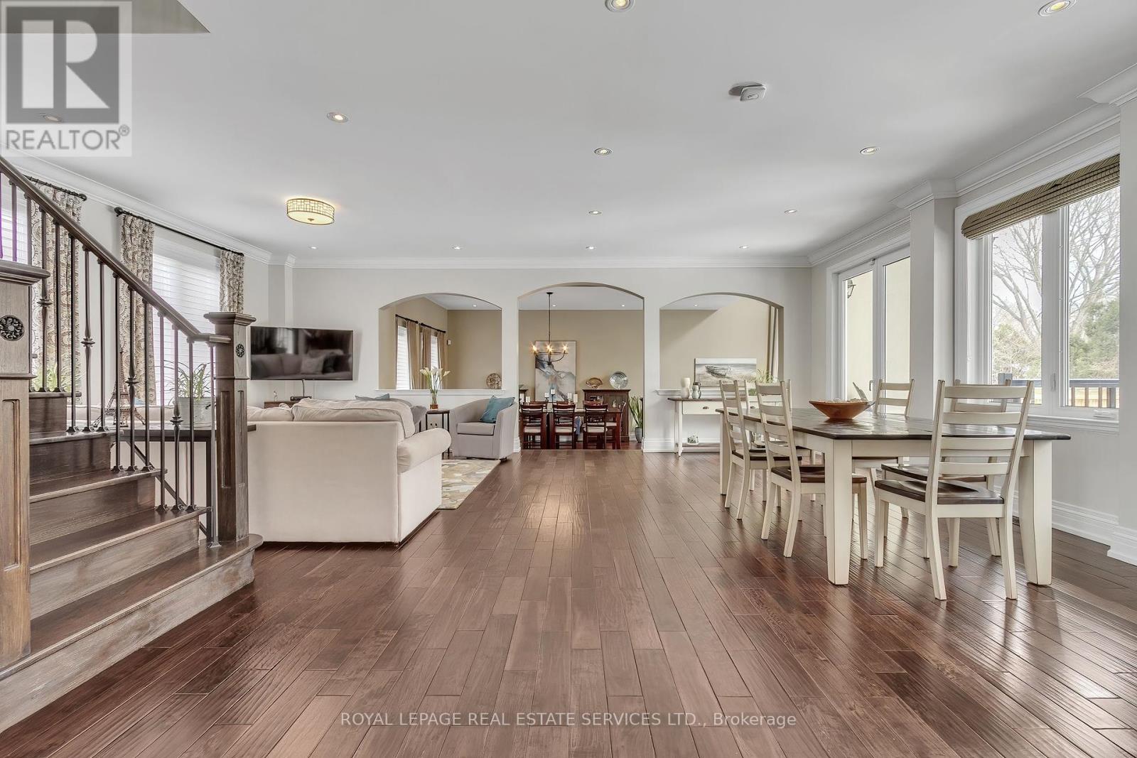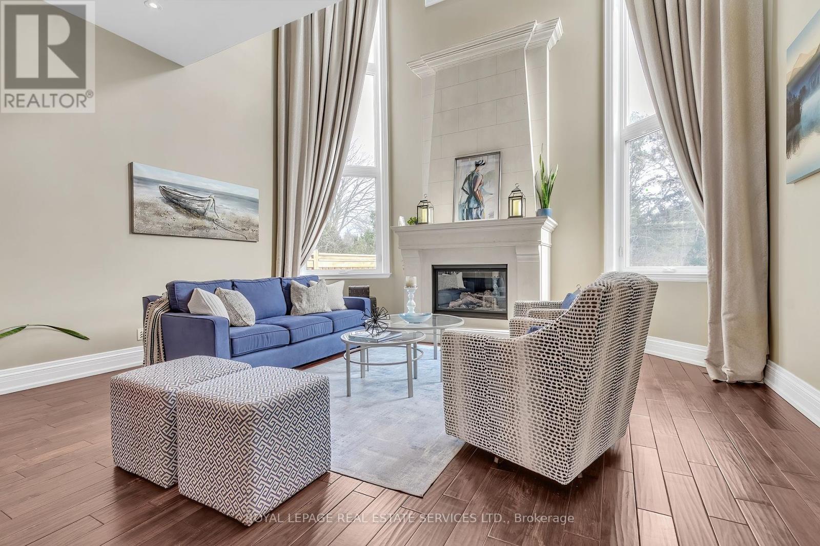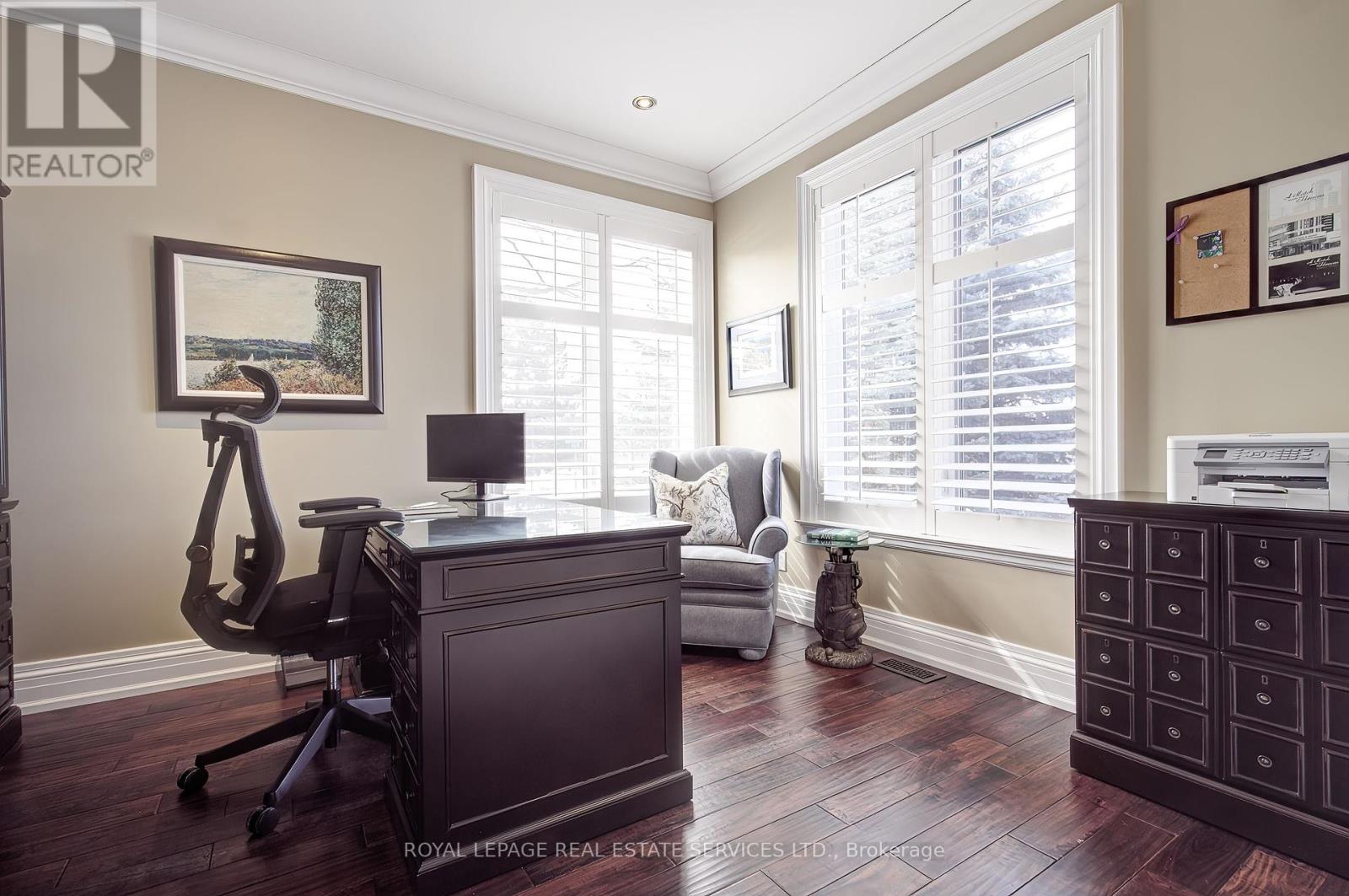 Custom built with exceptional quality that you can see and feel, starting with the stunning front doors that span 12ft and welcome you with style into the impressive two-storey foyer. This exceptionally spacious home features nearly 3800 sq ft of above-grade living space and is set on a beautiful 100'x100' mature lot. The garage and side door are accessed from Christina Drive, a quiet child-friendly side street. The main floor is perfect for both entertaining on a grand scale, and casual family life. The highly functional layout includes a main floor office, a gourmet kitchen with chef's island and breakfast bar overlooking the expansive great room. Elegant formal living & dining rooms with soaring ceiling heights and a stunning pre-cast stone fireplace are large enough to host all of your family's special occasions. The mudroom area includes a convenient side door entry from the drive and access to the 2-car garage with enough height to accommodate a car lift. Upstairs, you'll find a laundry room, four large bedrooms, and three full baths with heated floors in all. The primary bedroom is a true retreat, complete with vaulted ceilings, fireplace, Juliette balcony, walk-in closet, and luxurious 6-piece ensuite. The basement offers bright and versatile space that can be adapted to meet your family's needs. This home boasts 9' ceilings, wide plank hardwood floors, Safe 'n Sound solid core doors, and custom shutters/blinds throughout the main and second floors. The backyard is gloriously sunny and very private with all the room you'll need to play, entertain, or just relax and enjoy being in nature. All fabulously located close to downtown Oakville and the Lake, walking distance to the YMCA and great local schools, including Appleby College. (id:51158)