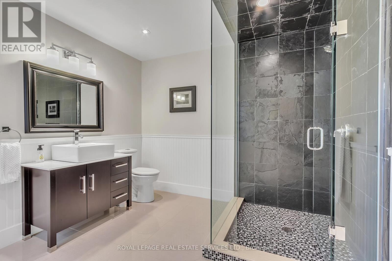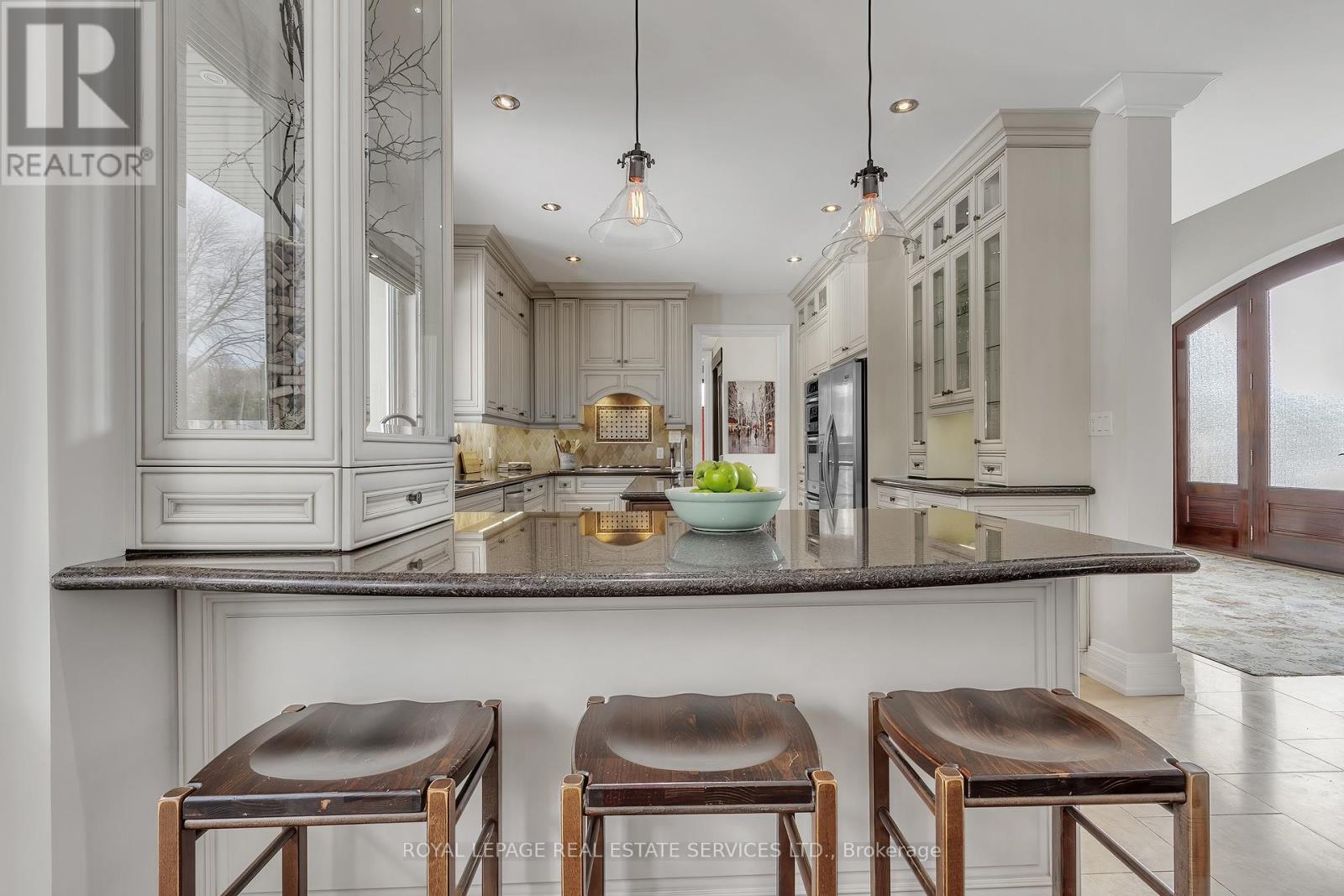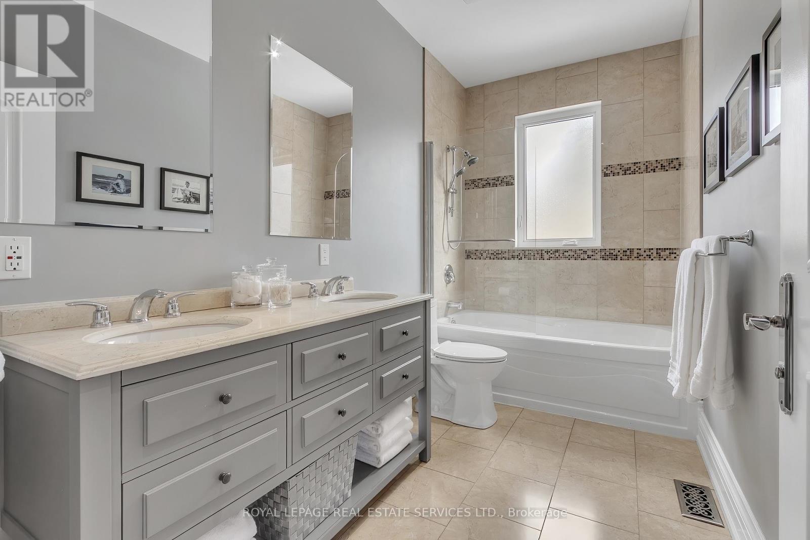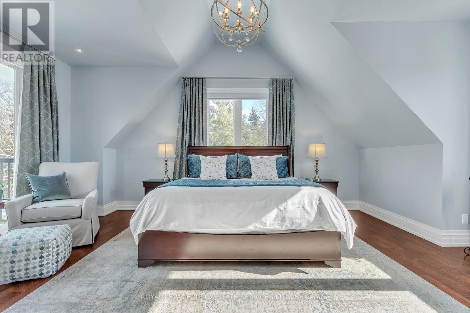 Custom built with exceptional quality that you can see and feel, starting with the stunning front doors that span 12ft and welcome you with style into the impressive two-storey foyer. This exceptionally spacious home features nearly 3800 sq ft of above-grade living space and is set on a beautiful 100'x100' mature lot. The garage and side door are accessed from Christina Drive, a quiet child-friendly side street. The main floor is perfect for both entertaining on a grand scale, and casual family life. The highly functional layout includes a main floor office, a gourmet kitchen with chef's island and breakfast bar overlooking the expansive great room. Elegant formal living & dining rooms with soaring ceiling heights and a stunning pre-cast stone fireplace are large enough to host all of your family's special occasions. The mudroom area includes a convenient side door entry from the drive and access to the 2-car garage with enough height to accommodate a car lift. Upstairs, you'll find a laundry room, four large bedrooms, and three full baths with heated floors in all. The primary bedroom is a true retreat, complete with vaulted ceilings, fireplace, Juliette balcony, walk-in closet, and luxurious 6-piece ensuite. The basement offers bright and versatile space that can be adapted to meet your family's needs. This home boasts 9' ceilings, wide plank hardwood floors, Safe 'n Sound solid core doors, and custom shutters/blinds throughout the main and second floors. The backyard is gloriously sunny and very private with all the room you'll need to play, entertain, or just relax and enjoy being in nature. All fabulously located close to downtown Oakville and the Lake, walking distance to the YMCA and great local schools, including Appleby College. (id:51158)