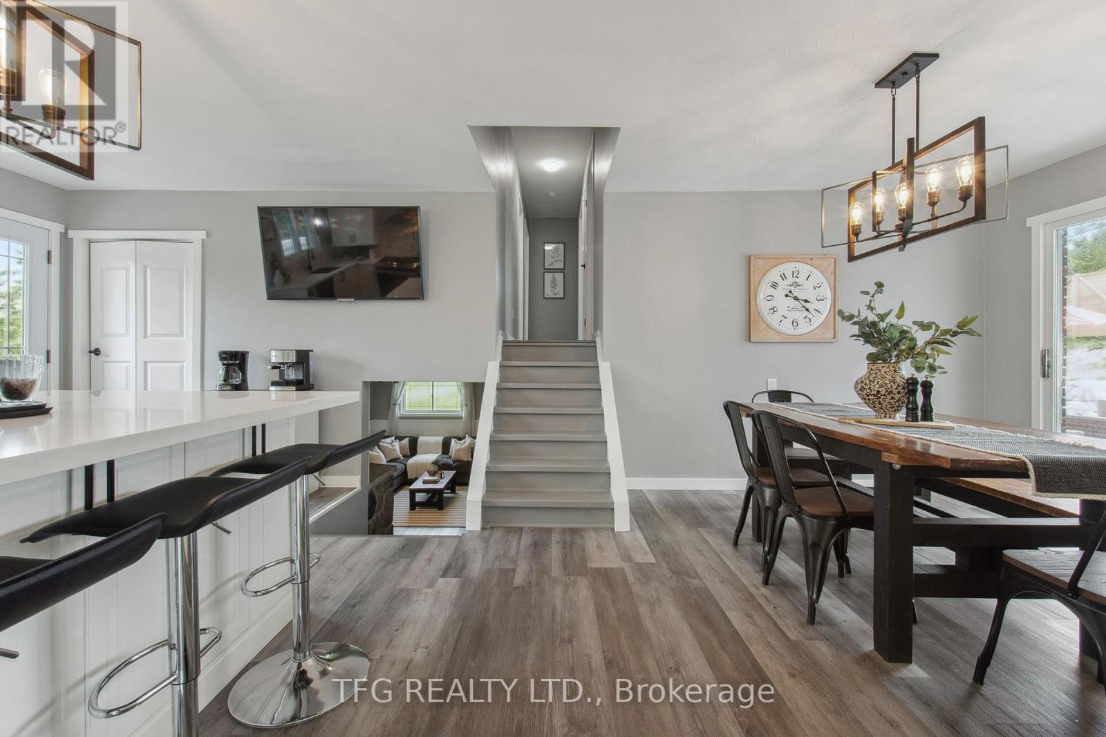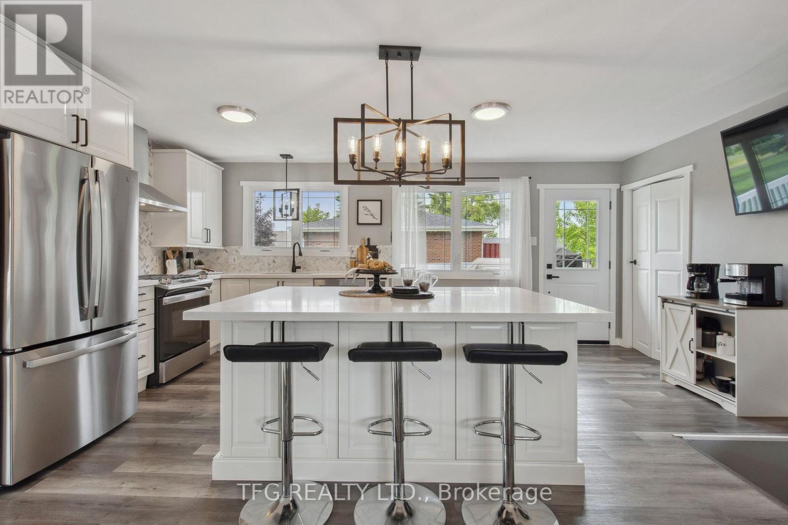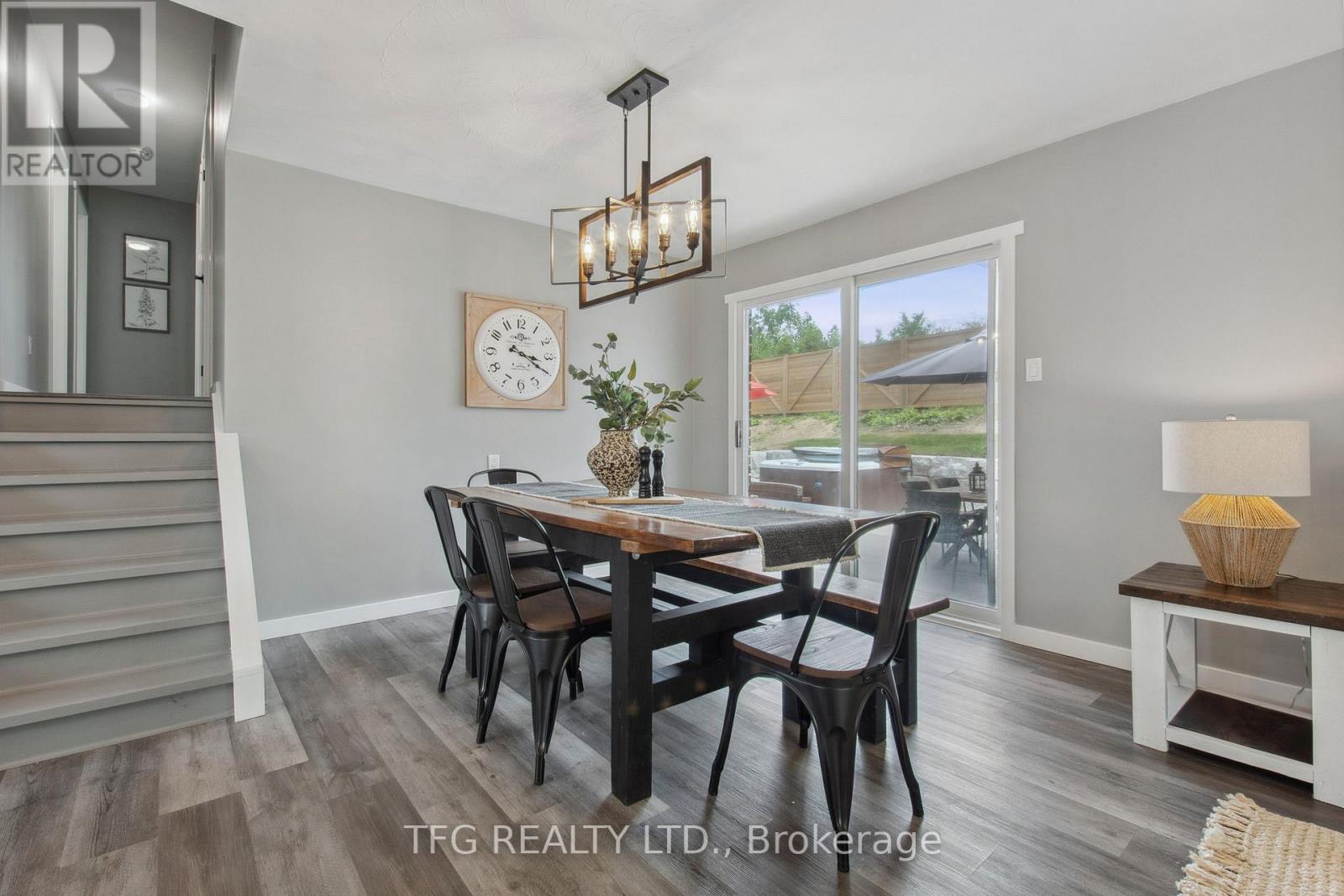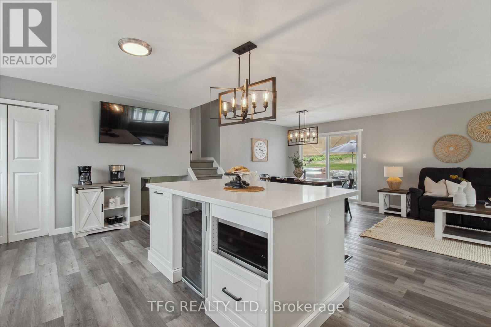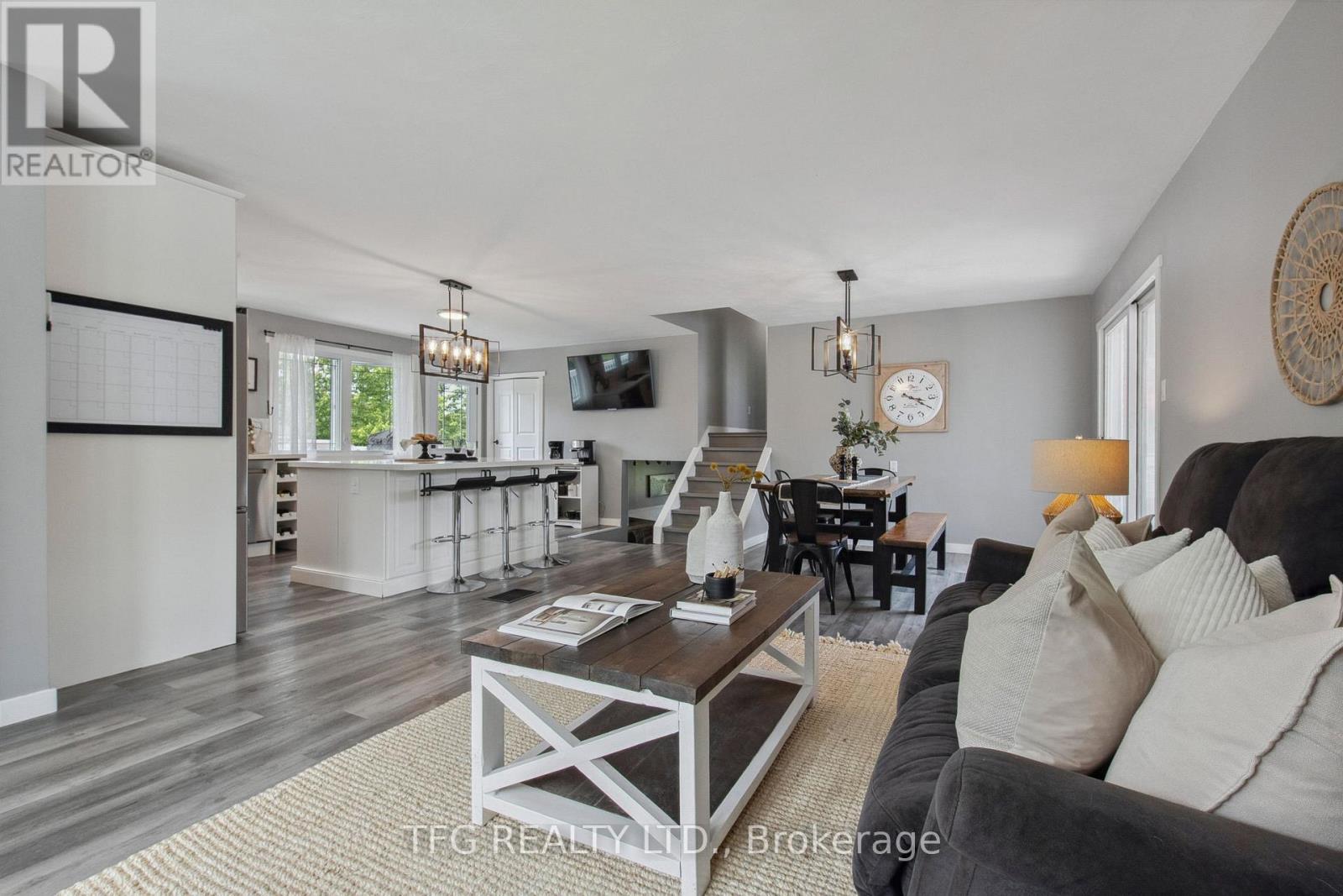 Set back with big driveway on a quiet street, school bus pickup just steps from the house, this beautifully updated 3-bedroom, 2-bathroom backsplit offers the perfect blend of modern comfort, thoughtful upgrades, and peaceful country living. Resting on a nearly 1-acre (0.96 acre) landscaped lot, this property showcases a massive circular driveway, mature trees, and an incredible outdoor space featuring an above-ground pool, hot tub, and patio area ideal for entertaining or relaxing year-round. The main floor boasts a bright, open-concept layout with new modern vinyl plank flooring throughout, a fully updated kitchen complete with gas stove, custom island with built-in mini fridge, stainless steel appliances, and walkouts to both the backyard oasis and side deck with a gas BBQ hookup. Upstairs, you'll find three freshly painted bedrooms, each with closets, and an updated 3-piece bathroom featuring a new vanity. The lower level offers a cozy yet functional rec room with a wood-burning fireplace, large windows providing ample natural light, continued vinyl plank flooring, and direct access to the garage, laundry room and a 3-piece bathroom. The garage is a standout feature heated with its own furnace, offering direct access to both the backyard and basement. Whether you need a workshop, extra storage, or are considering finishing the space further, this area offers amazing flexibility and value. Located just a short drive to Peterborough, Lindsay, and local amenities and major highways including 115,407,401. **HOUSE IS NO LONGER STAGED** (id:51158)