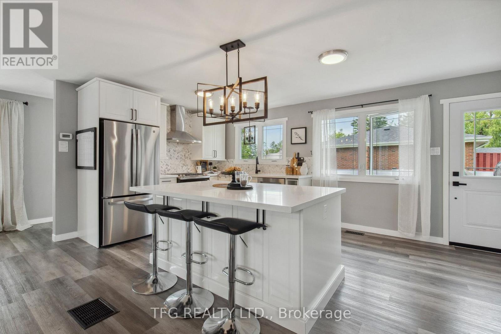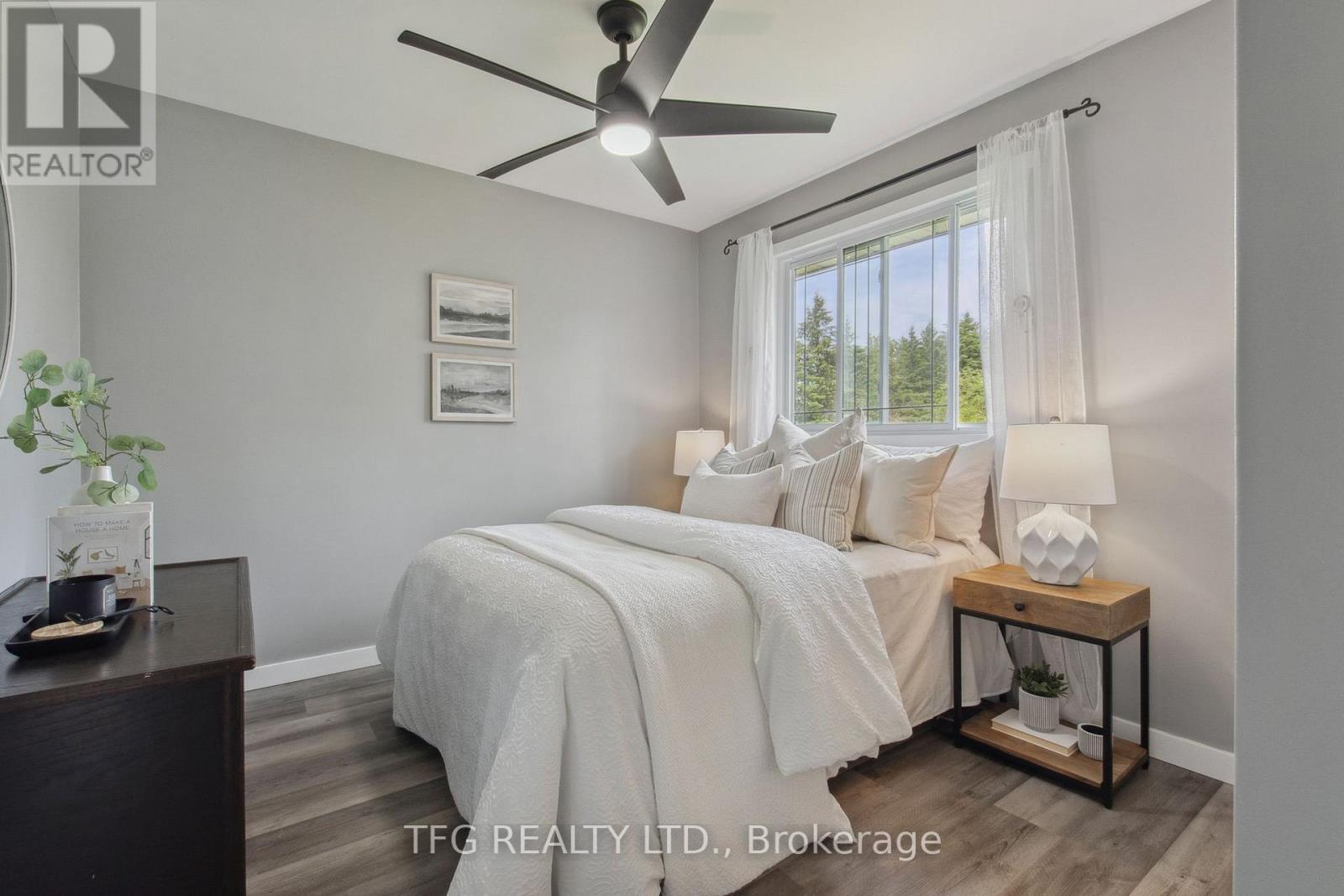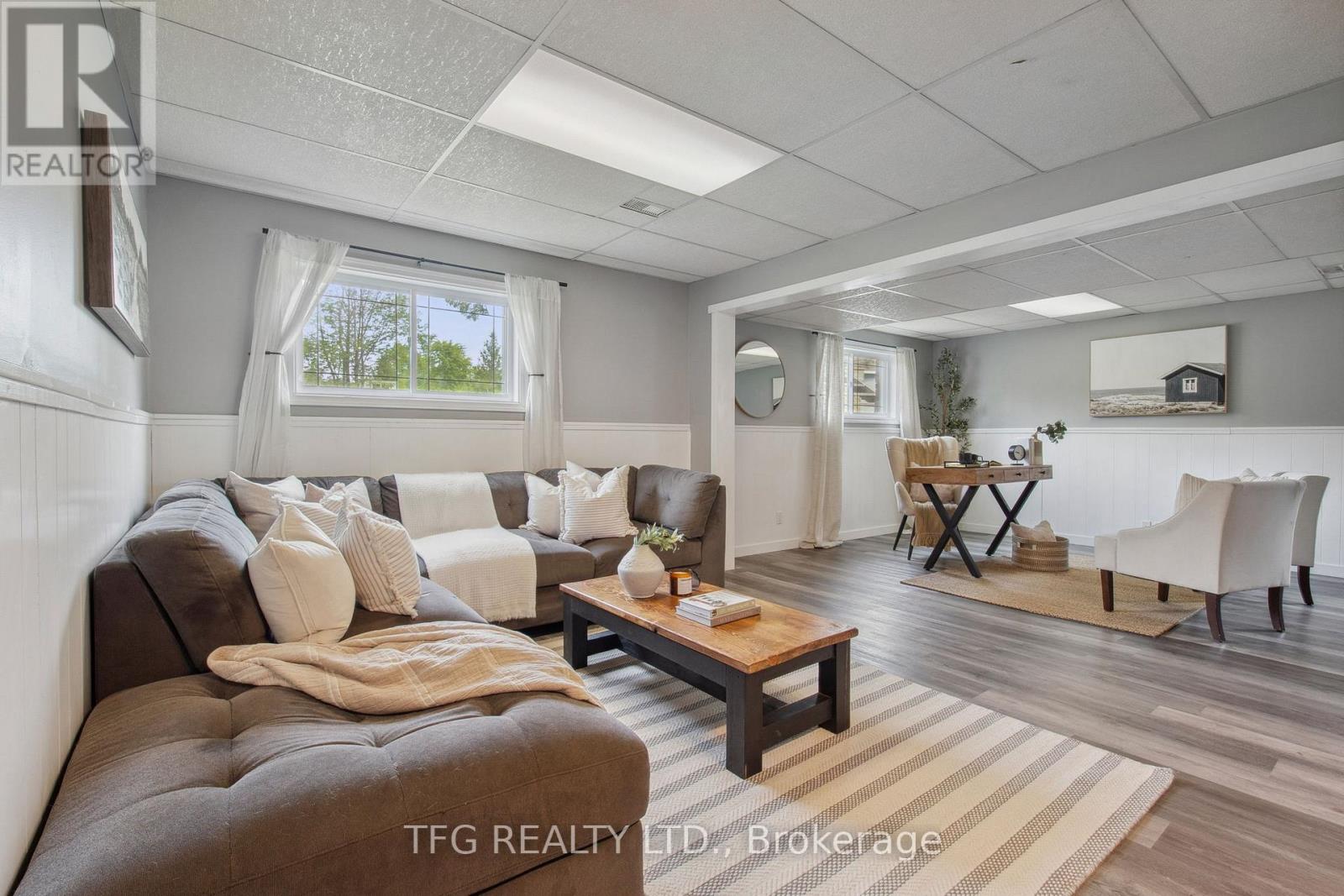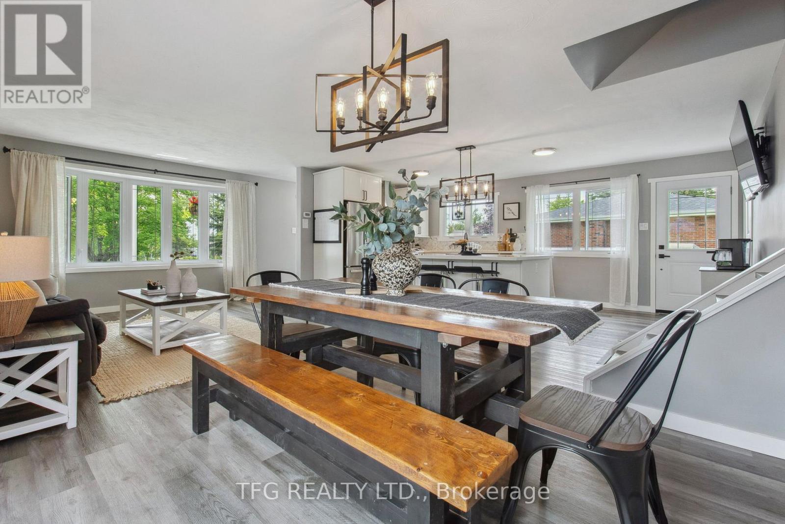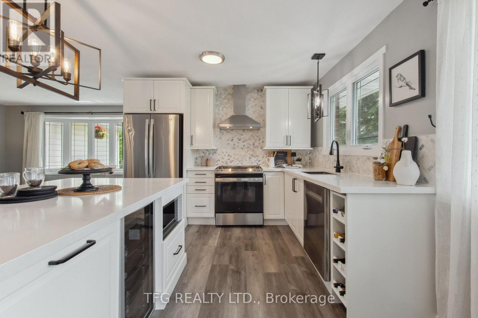 Set back with big driveway on a quiet street, school bus pickup just steps from the house, this beautifully updated 3-bedroom, 2-bathroom backsplit offers the perfect blend of modern comfort, thoughtful upgrades, and peaceful country living. Resting on a nearly 1-acre (0.96 acre) landscaped lot, this property showcases a massive circular driveway, mature trees, and an incredible outdoor space featuring an above-ground pool, hot tub, and patio area ideal for entertaining or relaxing year-round. The main floor boasts a bright, open-concept layout with new modern vinyl plank flooring throughout, a fully updated kitchen complete with gas stove, custom island with built-in mini fridge, stainless steel appliances, and walkouts to both the backyard oasis and side deck with a gas BBQ hookup. Upstairs, you'll find three freshly painted bedrooms, each with closets, and an updated 3-piece bathroom featuring a new vanity. The lower level offers a cozy yet functional rec room with a wood-burning fireplace, large windows providing ample natural light, continued vinyl plank flooring, and direct access to the garage, laundry room and a 3-piece bathroom. The garage is a standout feature heated with its own furnace, offering direct access to both the backyard and basement. Whether you need a workshop, extra storage, or are considering finishing the space further, this area offers amazing flexibility and value. Located just a short drive to Peterborough, Lindsay, and local amenities and major highways including 115,407,401. **HOUSE IS NO LONGER STAGED** (id:51158)