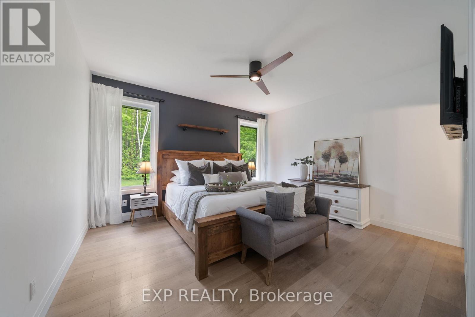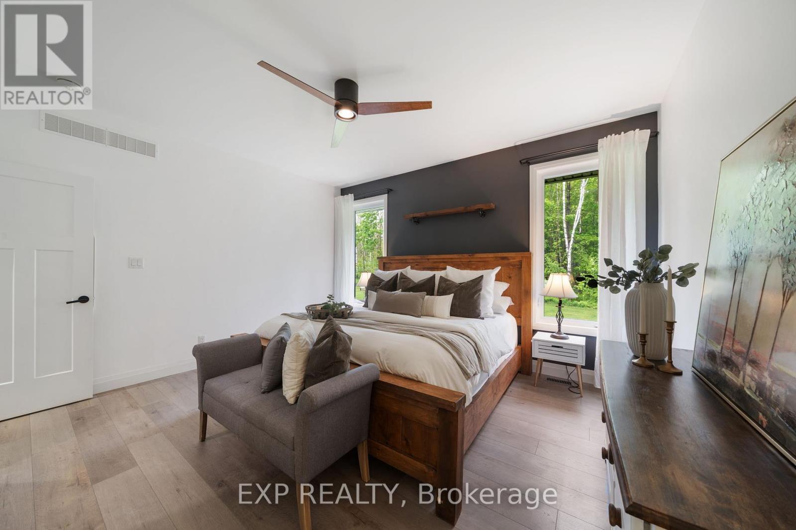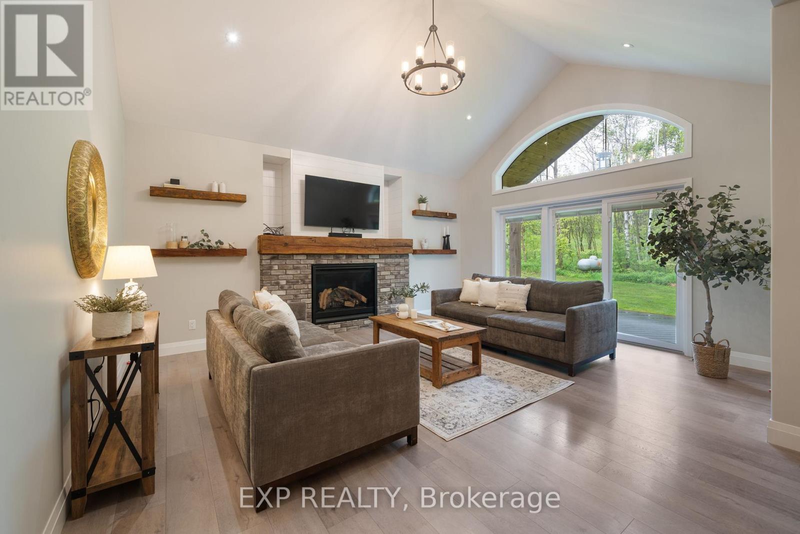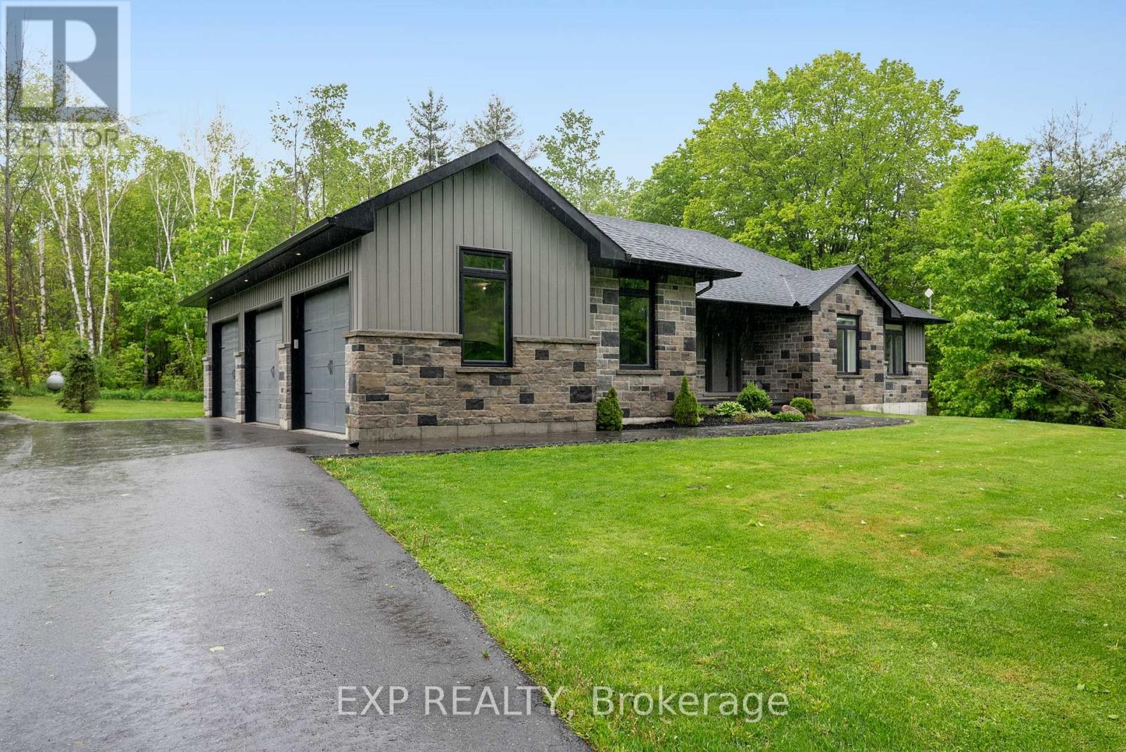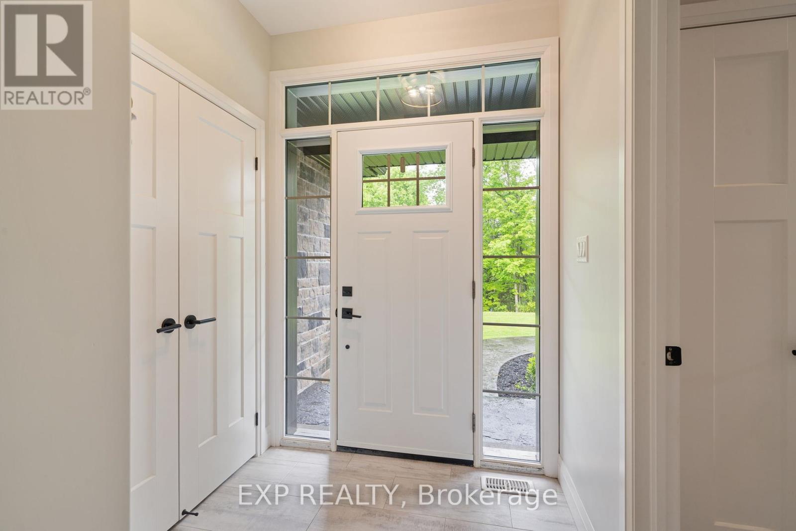 This custom-built 2021 bungalow offers over 3,000+ sq ft of finished space, featuring 4+2 bedrooms, 4 bathrooms, and a smart, modern layout perfect for entertaining. The main floor offers an open-concept design with vaulted ceilings, large windows, and a bright, airy feel. The kitchen is equipped with stainless steel appliances, a large island with breakfast bar, and ample storage, flowing seamlessly into the dining and living areas. Step outside to enjoy scenic views from your private backyard. The primary suite includes a walk-in closet and spa-like ensuite, with three additional bedrooms, a full bath, powder room, and laundry/mudroom completing the main level. The finished walk-out basement adds two more bedrooms, a full bath, a spacious rec room, and versatile bonus spaces, ideal for a gym, office, or in-law suite. Additional features include a three-car garage, oversized driveway, and generous storage all just minutes from Grafton, the 401, and Lake Ontario. Move-in ready and full of charm, this is modern country living at its best. (id:51158)