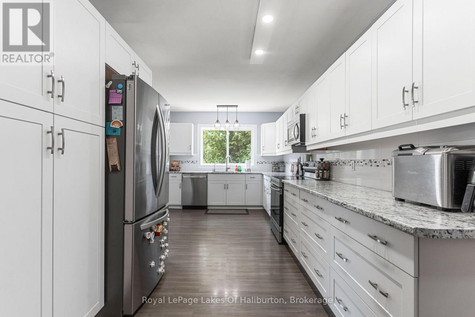**MOTIVATED SELLER - BRING AN OFFER!!!** This is a great family home with something for everyone. As you step through the door in to the welcoming foyer, the first thing you notice is the bright, open concept layout of the main floor. The expansive living room is perfect for large family gatherings and it flows seamlessly through the dining area and right in to the massive kitchen. In here you will find more cupboard and storage space than at most gourmet restaurants. It is the perfect place for those that want to hone their culinary skills or for preparing dinners for friend and family get togethers. Tucked nicely behind the common areas are three well sized bedrooms including the primary bedroom which offers a lovely ensuite with exceptional storage options. The other two bedrooms and well appointed main bath round out the main floor. Heading downstairs you'll find the large, totally finished family area that is perfect for movie night or as a large play area for the kids. Also located downstairs is a huge storage area that could be finished off to add even more livable space to this fabulous home. Back upstairs, you step out to the generous sized and completely private deck where you can sit and take in the sun or jump in the hot tub and just relax. The substantial yard is completely flat and is the perfect place for games, gardening or letting the kids burn off some energy. Don't overlook the tremendous, attached two car garage which is fully insulated and heated. With the property being close to trails and lakes, it's not only a great spot for storing all the toys, but it would make a great workshop or a home based business location as this property does have Commercial zoning. There is a separate room just off the back of the garage currently being used as a workout room, but could also be used as office space. All of this located within walking distance of all conveniences, 5 minutes to Wilberforce or 25 minutes to Haliburton or Bancroft. Exceptional value!! (id:51158)