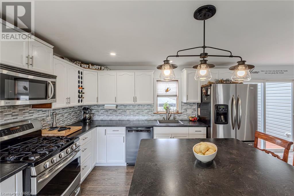 Check out this beautiful one-of-a-kind 2 storey home that offers over 3,000 sq ft of finished living space with 5 bedrooms & 3 full bathrooms! Sitting on a huge oversized lot with great curb appeal and located close to schools, parks and daily amenities! Sprawling covered front porch! Ample parking spaces in the private paved driveway for 6 cars plus additional parking for 2 more cars in the attached double car garage with 11 ft ceiling height. Heated wood working shop just off the back of the garage is any hobbyist's dream space with 11 ft ceiling height! This home is also perfect for a home based business with side door access to separate room with laundry hook up in closet (previuosly used as a hair salon) or could be used as a main floor bedroom or office space with full bathroom just across the hall! Kitchen with dinette area, centre island, pot lighting, loads of cupboard space and lots of natural light with the abundance of windows and sliding doors out to deck and fully fenced and well manicured rear yard with storage shed with hydro & water! Large living room space is perfect for hosting family gatherings!! There was an upper level addition completed in 2007 with massive primary bedroom with double closets and ensuite, 3 more large bedrooms, four piece bath and upper level laundry room and office! This home is perfect for a growing family ~ there is so much space for everyone!! Many updates over the years include furnace and a/c (2012), roof - ashpalt 35 yr shingles (2008), Nest thermostat, windows and doors (2008), central vac (2009), water softener (2020), updated flooring (2020). Fridge, microwave, washer & dryer (2009), dishwasher and gas stove (2020) are all included! (id:51158)