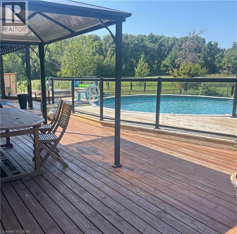 Truly Irreplaceable & Masterfully designed 10 acre Canfield Country Estate offering Ideal equestrian set up, hobby farm, home based business, or those looking for the privacy & peacefulness that Country Living offers. This stunning property features 40’ x 40’ heated shop with infloor heat & woodstove, additional 24’ x 26’ garage, 30’ x 40’ barn with 2 horse stalls, heated tack room, & hay storage, 4 paddocks with “electrobraid” fencing, 120’ x 160’ outdoor sand riding ring, & exquisitely updated 5 bedroom, 2 bathroom 2 storey home. Incredible curb appeal with wrap around covered porch, vinyl sided exterior, ample parking, 3 separate driveway accesses, multiple varieties of fruit trees, greenhouse, chicken coop, AG pool, & covered back porch with pergola overlooking calming country views. The gorgeous interior includes approximately 3000 sq ft of distinguished living space highlighted by an open concept main floor layout, eat in kitchen with custom cabinetry, formal dining area, large living room overlooking backyard, 4 pc bathroom, desired MF laundry, & welcoming foyer / mud room. The upper level features 4 spacious bedrooms including primary bedroom with ensuite. The finished basement includes large rec room, 5th bedroom, storage, & roughed in bathroom. Updates throughout include premium flooring, modern decor, fixtures, & lighting, wood beamed accents, & more! Conveniently located 30 mins South of Hamilton, 403, & QEW. Call today for your private viewing of this Irreplaceable Canfield home, property, & setting. Its more than just a home – it a Lifestyle & one that you deserve to Experience. (id:51158)
