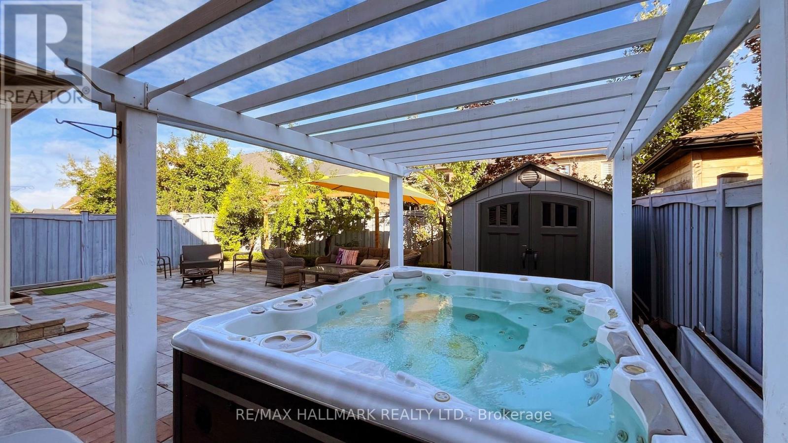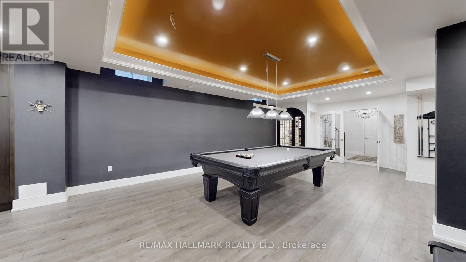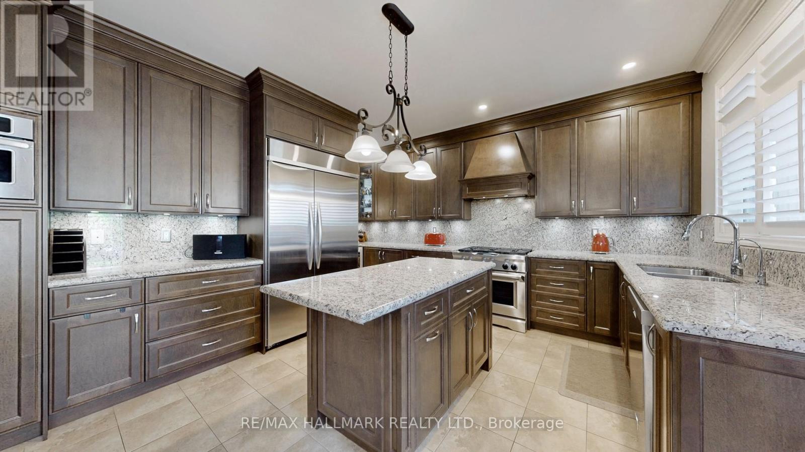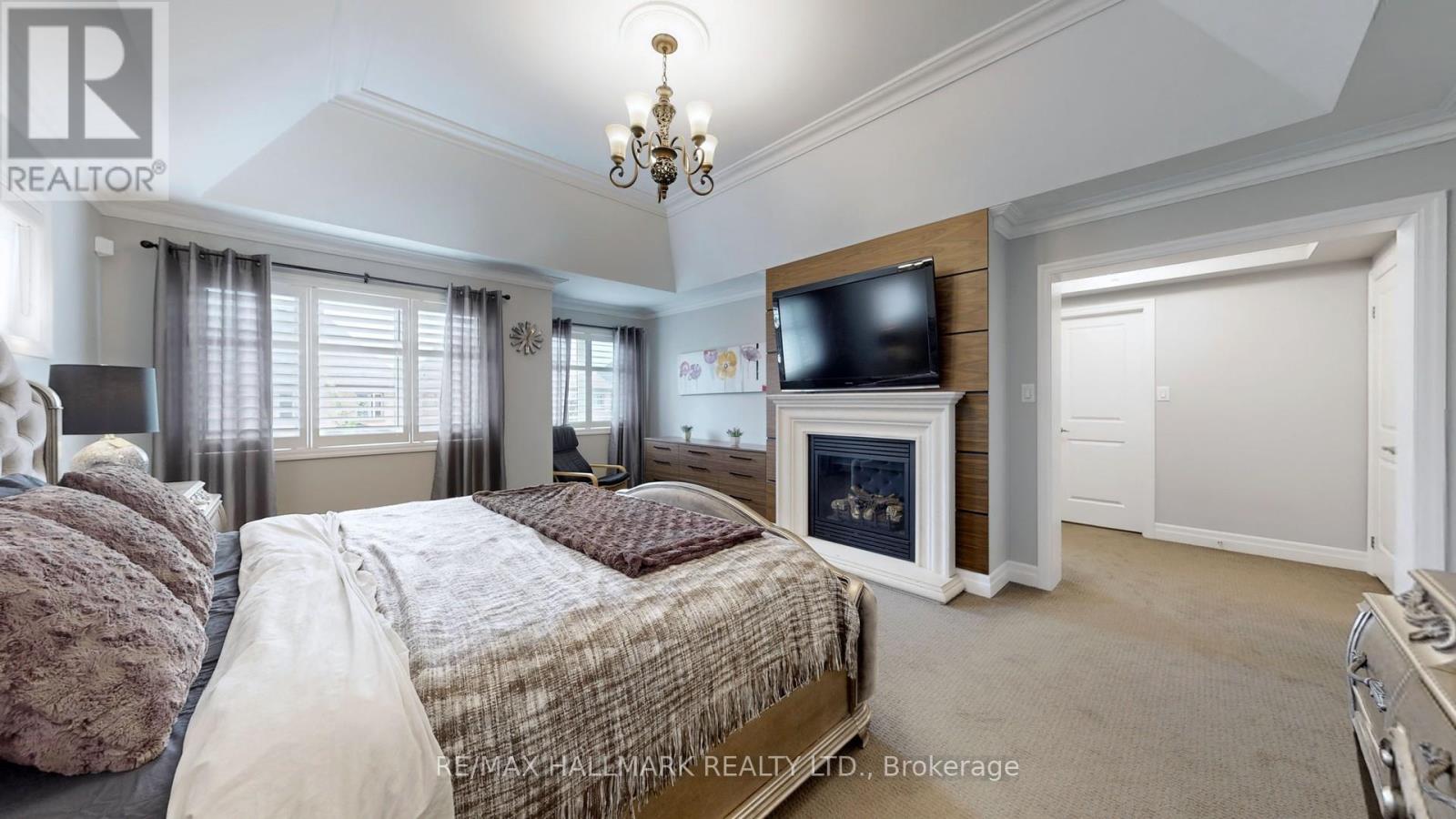 An absolutely stunning home, a must-see! This family home features 4+1 bedrooms and 5 bathrooms with upgraded finishes throughout. Enjoy hardwood floors, wainscoting, crown moulding, and custom millwork. The maple kitchen doors and built-in appliances, including a 48" fridge, 36" gas stove, wine cooler, and two sinks, add a touch of elegance. The formal dining room boasts waffled ceilings and a servery to the kitchen. An additional main floor room offers flexibility to be used as an office or library, complete with a custom wall unit. The bright family room features a gas fireplace, crown moulding, and an abundance of natural light. The master bedroom also has a cozy gas fireplace, walk-in closet, and large ensuite. Pot lights are installed throughout the home, providing a warm ambiance.The lower level boasts impressive finishes, ideal for entertaining. The massive basement includes French doors, high ceilings, an additional room, a wine closet, wet bar, bar fridge, drop moulding, coffered ceilings with robe lighting, and speaker system wiring rough-in, perfect for entertaining. Step outside to a backyard oasis with interlocks, fenced yard, fruit trees, an arbor, and an oversized hot tub. The powder room features a custom vanity, adding to the home's unique charm. The garage is equipped with 220V for charging an EV, shelving, cabinetry, and a bike rack. Additionally, the home has window coverings, shutters, and KitchenAid appliances for a modern touch.Close to amenities, top-rated schools, parks, trails, and highways, this exceptional property with luxurious features and finishes is not to be missed. Schedule a viewing today and make this dream home yours! (id:51158)