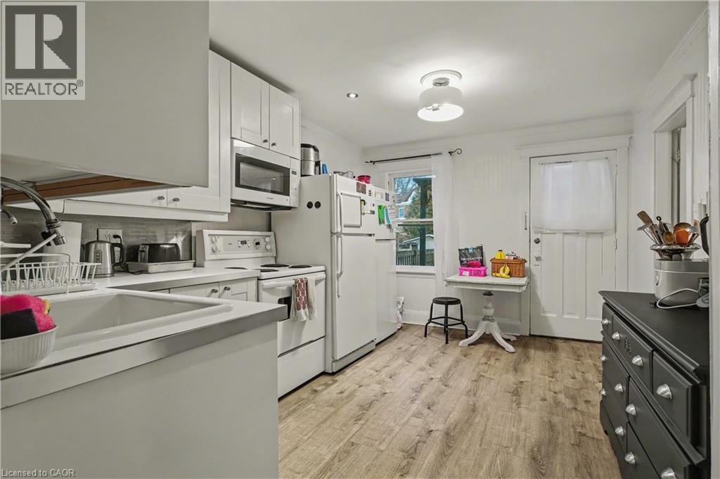 A welcoming 20' x 6'5 front porch leads into a foyer and main level with original hardwood flooring, carried throughout both the main and upper levels (excluding kitchen and bath). The home has been thoughtfully planned out and is currently used as a student rental, though it was originally a single-family home and could be easily converted back. The main floor features 2 bedrooms or a living and dining room, separated by French doors that provide privacy and soundproofing that can be removed effortlessly to create an open-concept layout. The family-sized kitchen offers two refrigerators, a stove, built-in microwave, and a walkout to a rear deck overlooking the yard. Upstairs, you’ll find three generous bedrooms and a remodeled 3-piece bathroom, all with the warmth and character of original hardwood. The fully finished basement adds exceptional versatility, offering a large recreation/common area, laundry, and a second 3-piece bathroom. With a separate side entrance and additional access through the attached garage, the lower level presents excellent potential for an in-law suite or private living space. Major updates—including roof shingles (2025), furnace (2025), and A/C (2019). Very well maintained property. Whether kept as a student rental or transformed back into a welcoming family home, this property offers space, flexibility, and long-term value. (id:51158)