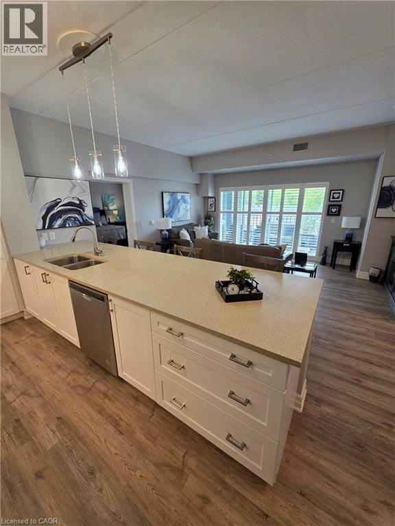 Welcome to the sought-after Upper Mill Pond apartments in St. Elizabeth Village, a gated 55+ community offering a vibrant lifestyle and modern conveniences. This spacious 1,115 square foot home features open concept living with 9 foot ceilings, an inviting layout designed for comfort and ease, and over 200sqft of outdoor space on the terrace. The kitchen is the heart of the home, with a large peninsula that provides seating for five and opens seamlessly to the bright living and dining areas, perfect for entertaining or everyday living. The home offers two bedrooms and two full bathrooms. The primary suite is a true retreat with its own ensuite complete with a walk-in shower and an exceptionally large walk-in closet. The second bedroom is ideal for guests or as a flexible space for hobbies or a home office. A north-facing balcony extends your living space outdoors and features upgraded flooring, making it a perfect spot to relax and enjoy the fresh air. Residents of this building enjoy direct access to exceptional amenities including a heated indoor pool, gym, saunas, hot tub, and golf simulator. Just steps away, the Village provides a doctors office, pharmacy, massage clinic, and public transportation, along with many other services designed to support convenience and wellness. Beyond the gates, you are only a five minute drive to grocery stores, shopping, and restaurants, ensuring everything you need is close at hand. This home combines modern living with a welcoming community atmosphere, making it a wonderful opportunity to enjoy all that St. Elizabeth Village has to offer. (id:51158)