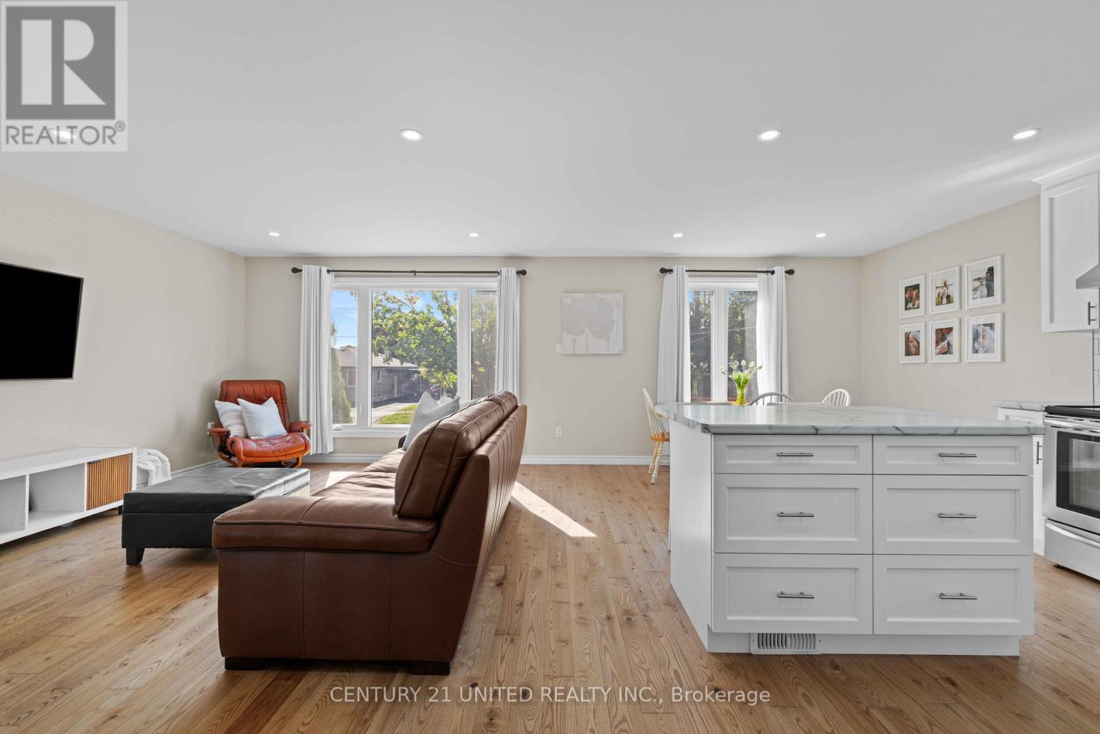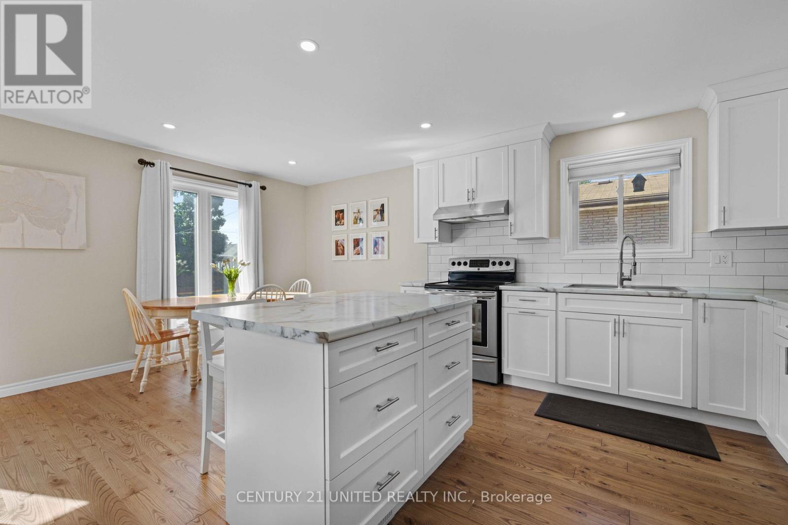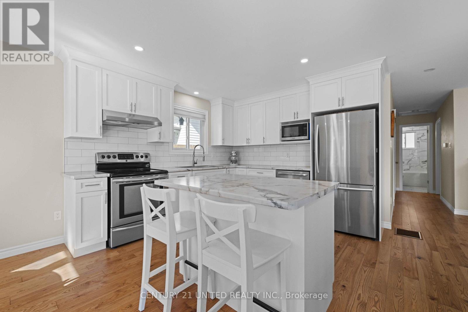 Welcome to 392 Wellington Street, a lovely raised bungalow in Peterborough's north end. This 3 bedroom, 2 bathroom is perfect for first time home buyers and families. The upper level highlights a spacious open concept kitchen with stainless steel appliances and a breakfast bar island that separates the kitchen from the dining area. At the end of the hallway you will find the large primary bedroom with his & hers closets, a 4 piece bathroom, and another bedroom. The finished lower level features a third bedroom, an office, a cozy family/seating room, and a second 3 piece bathroom. The large unfinished utility space houses a built-in workbench/shelving and a spacious laundry room. The generously sized fully fenced in backyard is perfect for kids and pets. Pre-Sale home inspection available upon request. (id:51158)