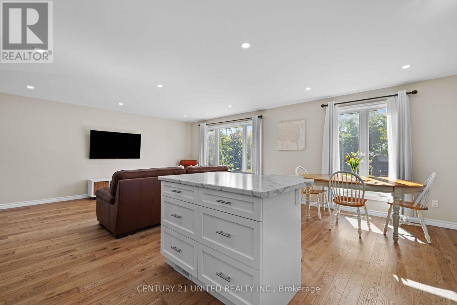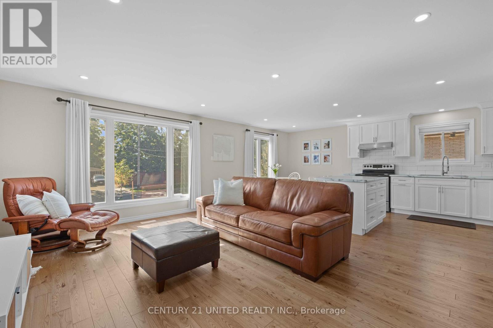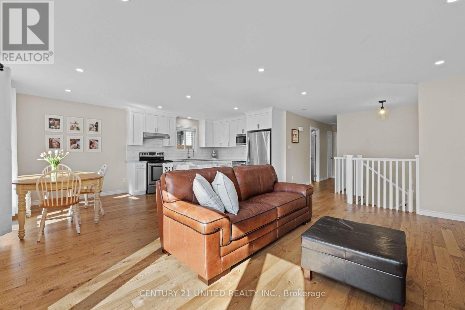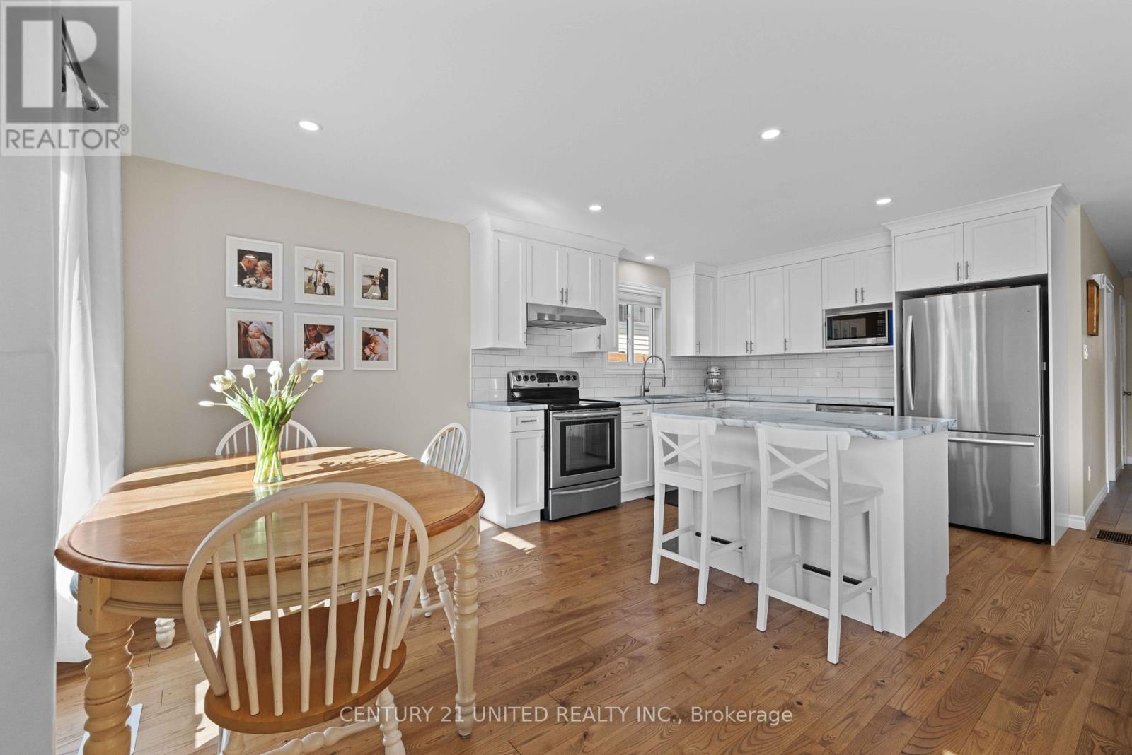 Welcome to 392 Wellington Street, a lovely raised bungalow in Peterborough's north end. This 3 bedroom, 2 bathroom is perfect for first time home buyers and families. The upper level highlights a spacious open concept kitchen with stainless steel appliances and a breakfast bar island that separates the kitchen from the dining area. At the end of the hallway you will find the large primary bedroom with his & hers closets, a 4 piece bathroom, and another bedroom. The finished lower level features a third bedroom, an office, a cozy family/seating room, and a second 3 piece bathroom. The large unfinished utility space houses a built-in workbench/shelving and a spacious laundry room. The generously sized fully fenced in backyard is perfect for kids and pets. Pre-Sale home inspection available upon request. (id:51158)