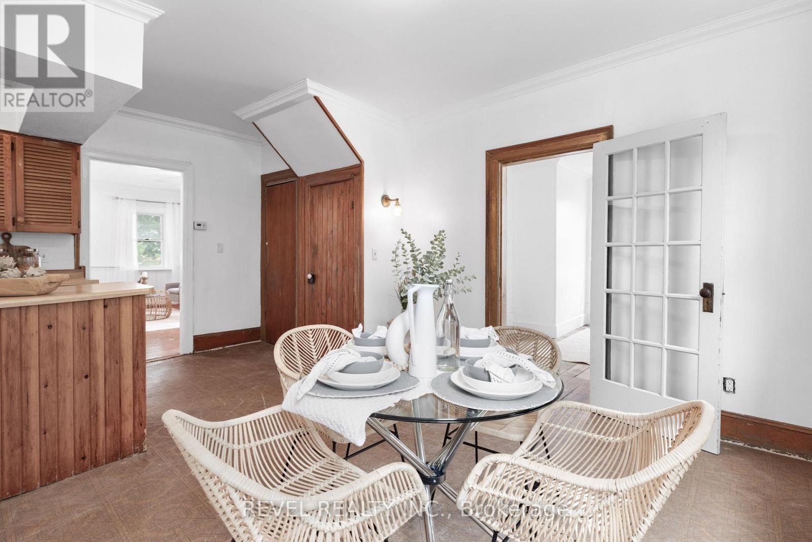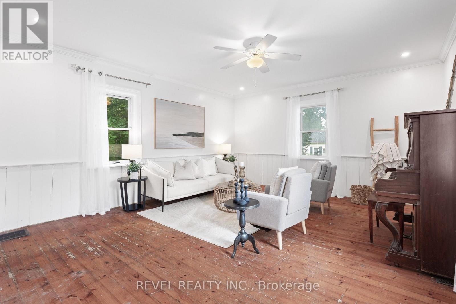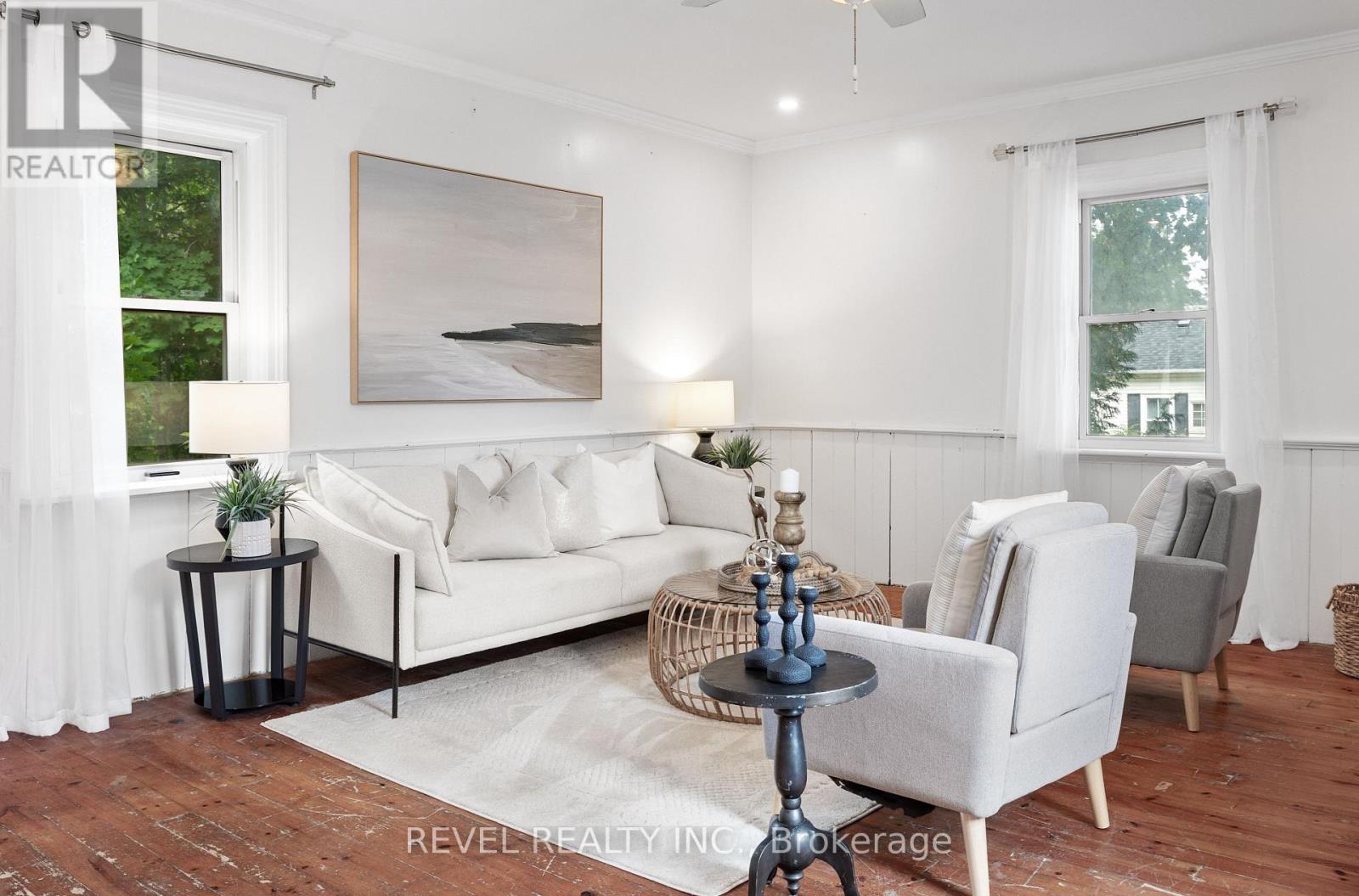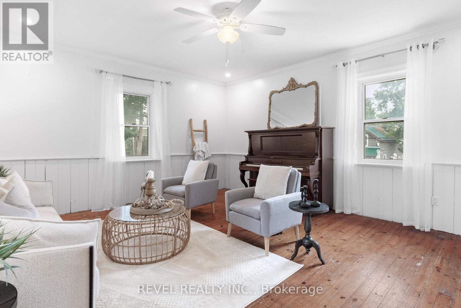 Charming Century Home in the Heart of Little Britain. Welcome to this beautiful and spacious 4-bedroom, 2-bathroom Century Home, ideally located on a large corner lot in the vibrant Village of Little Britain. Bursting with character, the home greets you with a grand foyer and a stunning wood staircase. The main floor features a full living room adorned with farmhouse style wood floors, moldings and trim, a bright eat-in kitchen, and a separate formal dining room perfect for entertaining. Upstairs, you'll find four generously sized bedrooms, a full bathroom, and an abundance of natural light streaming through large windows. The main level also includes a convenient laundry area, a rear mudroom, and a walkout to a private backyard oasis.The mature, yard offers a large deck ideal for relaxing or hosting guests and a detached garage/shop for all your storage or hobby needs. This home is truly a statement piece and is centrally located near the community centre, shopping, dining, and the local school. Don't miss the opportunity to make this timeless home your forever home! (id:51158)