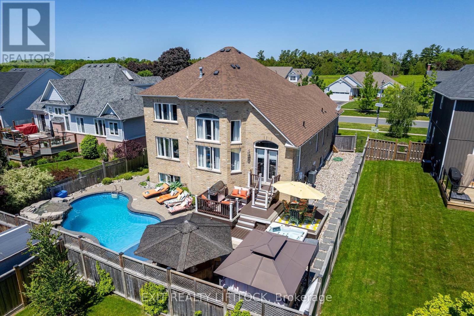 Welcome to your dream home, where luxury, comfort, and family living come together seamlessly. This beautifully crafted bungaloft offers three spacious levels designed for versatility, perfect for growing families, multi-generational living, or anyone who loves to entertain. The main floor features a bright, open-concept eat-in kitchen, a formal dining room, and a cozy living area with wall-to-wall windows and a stunning fireplace. The primary suite is conveniently located on this level, complete with its own fireplace and a spa-inspired ensuite. A second bedroom and full bathroom provide comfort and flexibility for guests or family, while main floor laundry and direct garage access add everyday convenience. Upstairs, the inviting loft space includes a large family/sitting room and an additional bedroom, perfect for kids, teens, or guests. The fully finished lower level expands your living space with a complete in-law setup, including a bedroom, bathroom, kitchenette, recreation room, and second laundry area. Step outside and experience your private backyard oasis, featuring a saltwater pool with a waterfall and auto-refill system, a 6-person hot tub, gazebo, and Tikki bar. Lush landscaping with irrigation creates a resort-style atmosphere, ideal for entertaining, relaxing, and making memories. With parking for 4+ vehicles and a thoughtfully designed layout, this exceptional home delivers both style and substance. Don't miss your opportunity to make it yours! (id:51158)