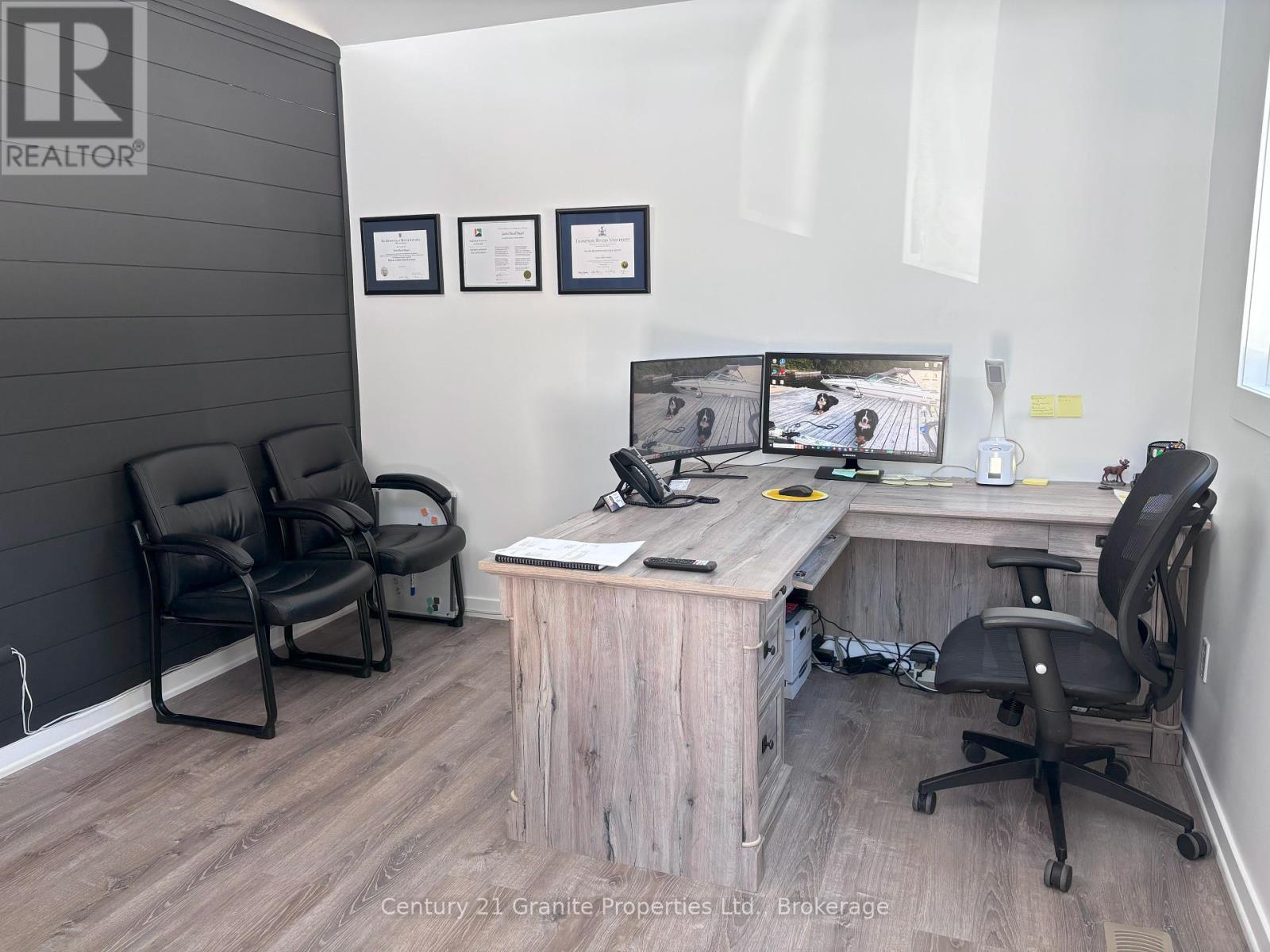 Commercial and Residential compound in the desirable Bartlett Springs Subdivision, less than one minute from the Oastler Lake Boat Launch and five minutes to Parry Sounds Shopping Area. Situated on a paved year-round municipally maintained roadway. This property is comprised of two separately deeded properties. Commercial Property: Has a very large legal non-conforming road sign and is situated on the corner of Oastler Park Drive with excellent exposure. The Modern Office building is approximately 1,100 sqft and is comprised of a Reception/Waiting Area, Boardroom/Lunchroom, Four Formal Offices and a Two-Piece Washroom. There is ample parking for clients and staff. The 40' X 40' Industrial Style Shop was Built in 2022. It has Three Overhead Doors (1-14' x 10' & 2-12' x 10' doors), Vaulted Ceilings, Natural gas-fired in-floor radiant heat and a Large Gravel Parking/Yard Area. The Residential component is comprised of a completely renovated Valhalla Style home. It has approximately 2,700 sqft feet of finished area, spanning three levels and it has been extensively renovated. In floor heat in all the bathrooms and the entry foyer. The main floor is comprised of open concept kitchen and dining area, great room with vaulted ceilings, two-piece washroom and an office (could easily be utilized as a bedroom, as it has a closet and "cheater" access to the washroom). The second level is comprised of a second bedroom, a main four-piece bathroom and a primary bedroom with walk-in closet and three-piece ensuite bathroom. The lower level is comprised of a media / family room, guest bedroom, laundry room and four-piece bathroom with walk-in shower and soaker tub. The 30 X 40 detached "Man Cave" is heated, insulated and finished with commercial grade epoxy floor and high-quality shelving and cabinets. Extensively landscaped, with gardens, a pond and a volleyball court. Fibre Optic internet available. HST applicable only to commercial property. Taxes combined for both properties. (id:51158)