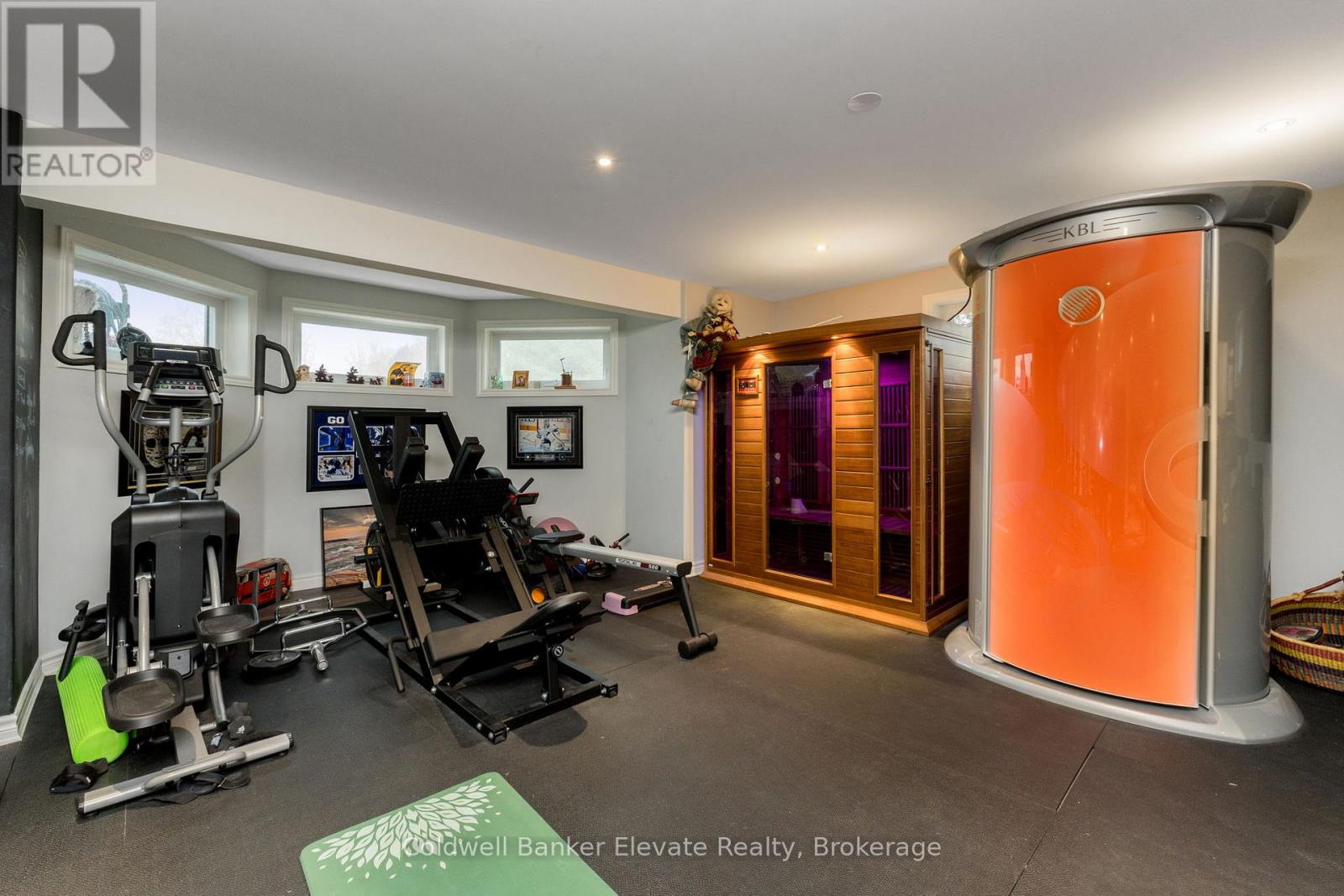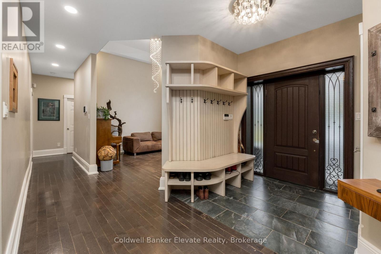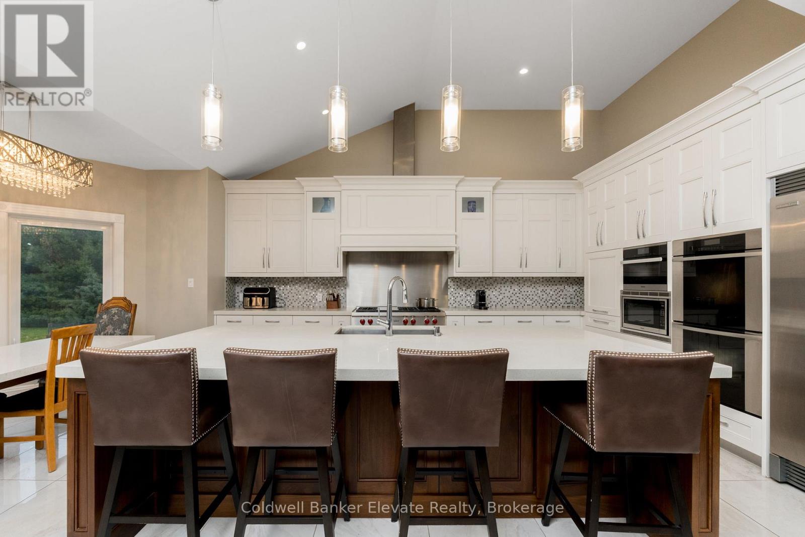 Welcome to 4 Abbitt Crescent, a custom-built home offering unparalleled luxury & privacy on over 2 acres of beautifully treed land. With 5 spacious bedrooms & 3 modern, upgraded bathrooms, this residence combines elegance & comfort at every turn. Upon entering, you're greeted by an expansive open-concept layout with soaring high ceilings & large windows that fill the home with natural light. The upgraded chefs kitchen features stainless steel appliances, sleek Caesarstone countertops, and an oversized island, seamlessly connecting to the living and dining areas perfect for both everyday living & entertaining. Radiant floor heating runs throughout, and the home is carpet-free (excluding staircases). The bright loft, featuring large skylights, currently serves as a bedroom but offers flexible potential as a home office, entertainment space, or additional lounge area. The modern bathrooms showcase contemporary fixtures, with the primary ensuite offering a spa-like retreat complete with a soaking tub & glass shower. Downstairs, the open layout of the recreation room includes an impressive in-home gym, sauna, tanning booth, offering a full wellness experience while still providing ample space. The fully finished basement also features one of the bedrooms and an office with built-in cabinetry, which can easily be converted into a sixth bedroom ideal for guests or extended family. A 2.5-car garage and a newly paved circular driveway accommodate over 20 vehicles, adding both functionality and convenience. Recent updates include a new roof & windows (completed in the last few years), extensive professional landscaping throughout. The backyard features a private oasis with an inground saltwater pool & large pool house, surrounded by mature trees & lush shrubbery. The pool area has been enhanced with brand-new interlocking & updated equipment, including a new pump! As a bonus, ownership includes a certificate for 1/20th of the 43 shared acres held by residents of Abbitt Cres. (id:51158)