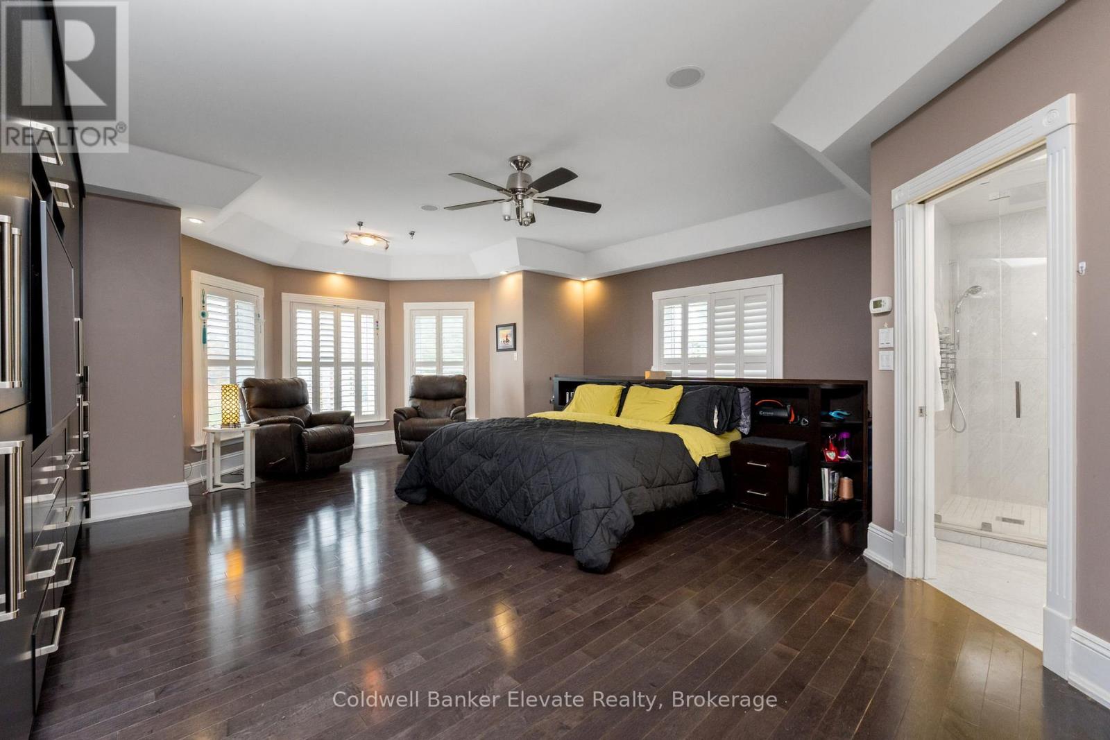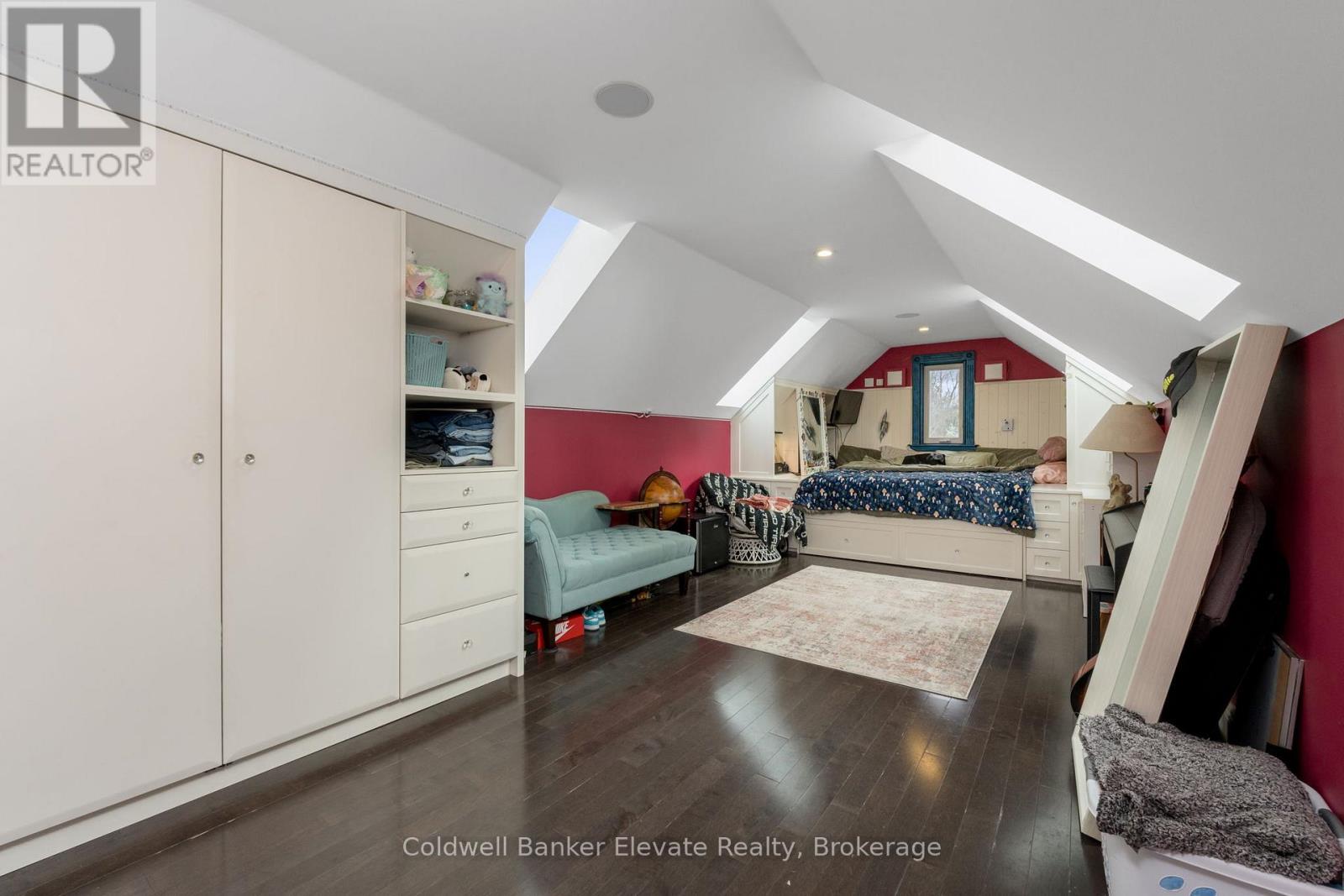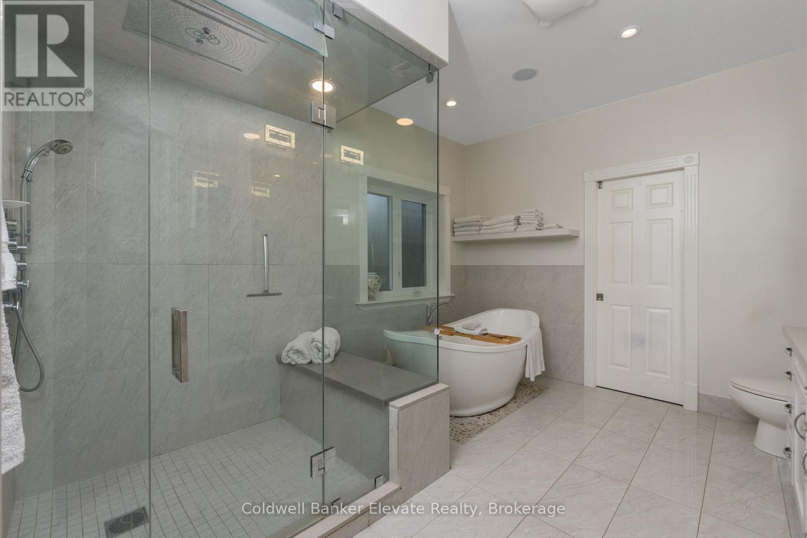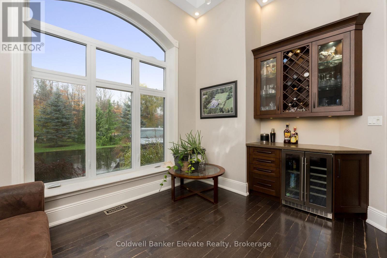 Welcome to 4 Abbitt Crescent, a custom-built home offering unparalleled luxury & privacy on over 2 acres of beautifully treed land. With 5 spacious bedrooms & 3 modern, upgraded bathrooms, this residence combines elegance & comfort at every turn. Upon entering, you're greeted by an expansive open-concept layout with soaring high ceilings & large windows that fill the home with natural light. The upgraded chefs kitchen features stainless steel appliances, sleek Caesarstone countertops, and an oversized island, seamlessly connecting to the living and dining areas perfect for both everyday living & entertaining. Radiant floor heating runs throughout, and the home is carpet-free (excluding staircases). The bright loft, featuring large skylights, currently serves as a bedroom but offers flexible potential as a home office, entertainment space, or additional lounge area. The modern bathrooms showcase contemporary fixtures, with the primary ensuite offering a spa-like retreat complete with a soaking tub & glass shower. Downstairs, the open layout of the recreation room includes an impressive in-home gym, sauna, tanning booth, offering a full wellness experience while still providing ample space. The fully finished basement also features one of the bedrooms and an office with built-in cabinetry, which can easily be converted into a sixth bedroom ideal for guests or extended family. A 2.5-car garage and a newly paved circular driveway accommodate over 20 vehicles, adding both functionality and convenience. Recent updates include a new roof & windows (completed in the last few years), extensive professional landscaping throughout. The backyard features a private oasis with an inground saltwater pool & large pool house, surrounded by mature trees & lush shrubbery. The pool area has been enhanced with brand-new interlocking & updated equipment, including a new pump! As a bonus, ownership includes a certificate for 1/20th of the 43 shared acres held by residents of Abbitt Cres. (id:51158)
