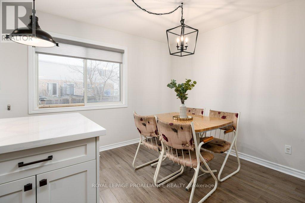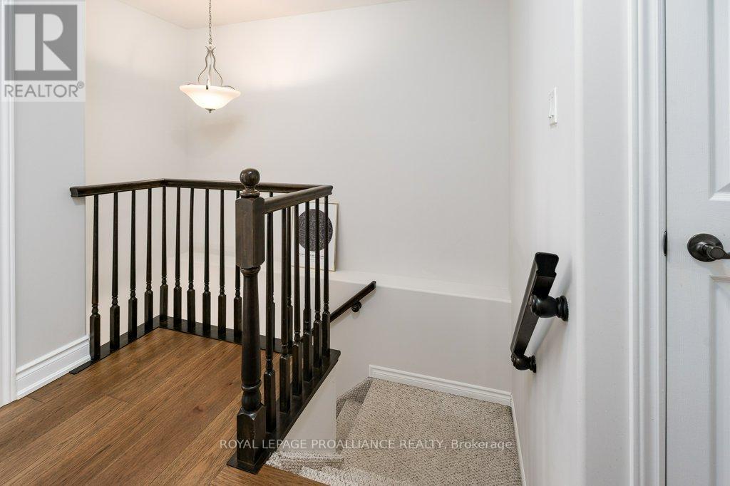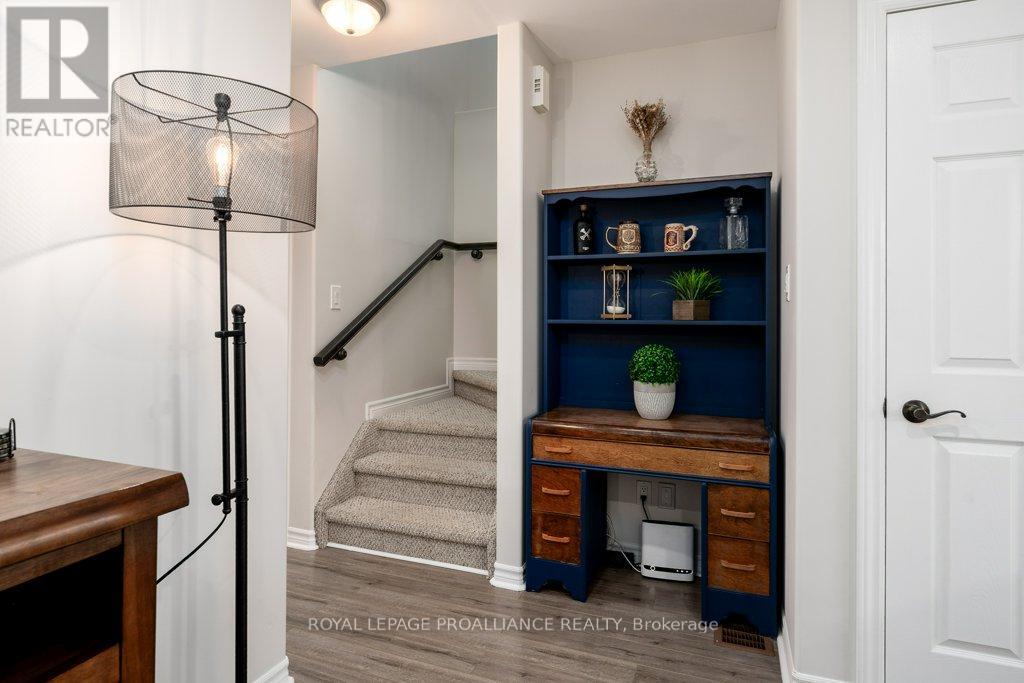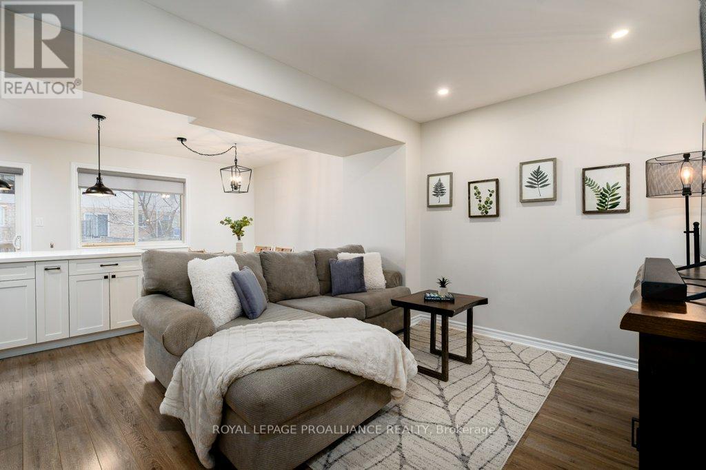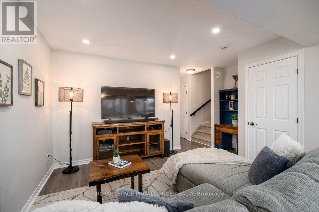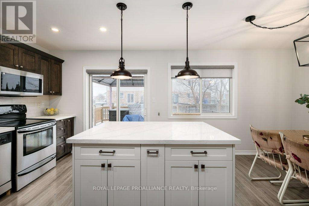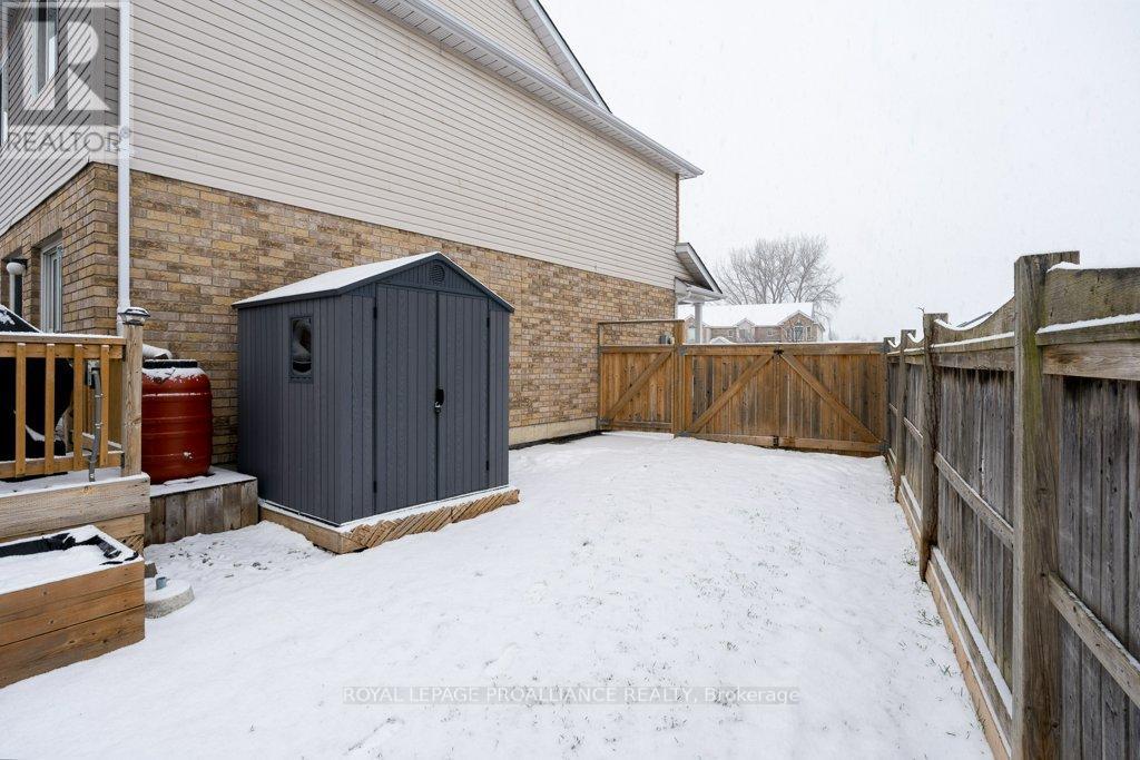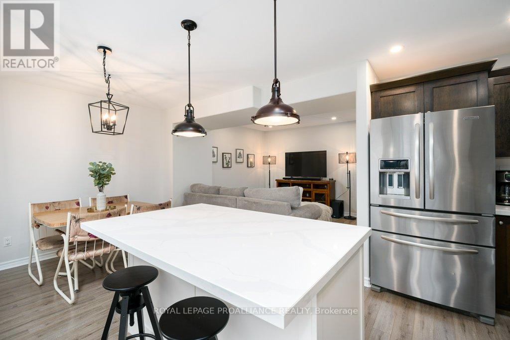 Welcome to this beautifully updated end-unit two-storey townhome located in the heart of Belleville. This bright, open-concept home features a stunning updated kitchen complete with quartz countertops, a new large centre island showcasing elegant pendant lighting, stylish new backsplash and complemented by new pot lighting. Upstairs, you'll find three spacious bedrooms, including a generous primary suite with a walk-in closet, along with a fully renovated bathroom and immaculate walnut hardwood flooring that adds warmth and sophistication. The unfinished basement offers potential for a home gym, additional living space, and even plenty of room for storage. Step outside to your fully fenced-in backyard oasis featuring a newly installed expansive interlocking patio (starting from the front home entrance) a large resurfaced deck (natural gas BBQ hook up available) with gazebo, with west-facing exposure, perfect for soaking in those breathtaking sunsets. Additional upgrades: Shingles 2023, new light switches, porcelain tile in the foyer and main bathroom. This move-in-ready home truly checks all the boxes and is waiting for you! (id:51158)