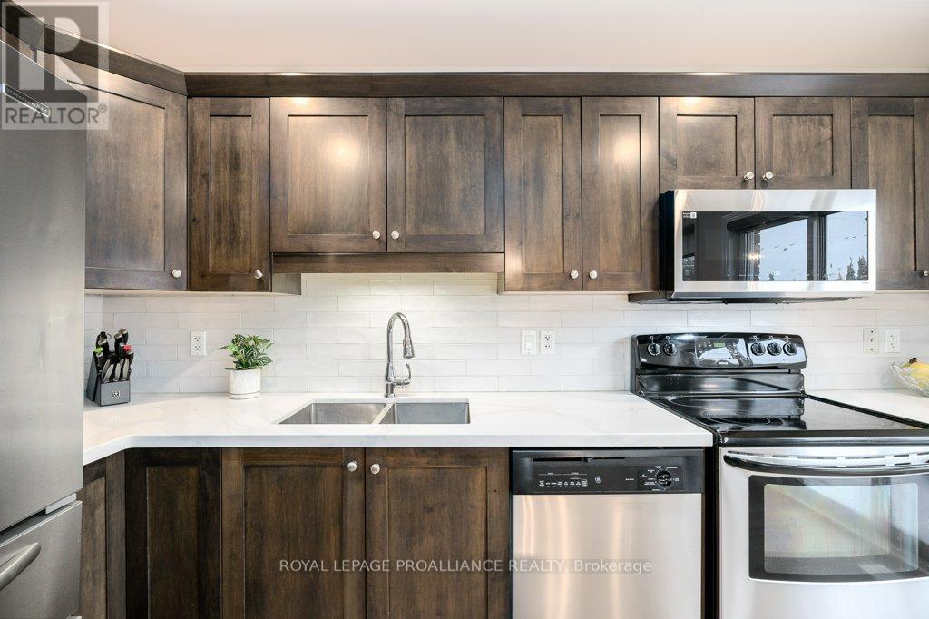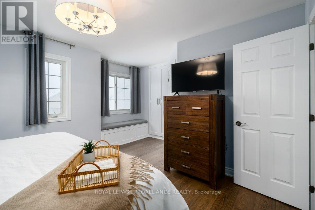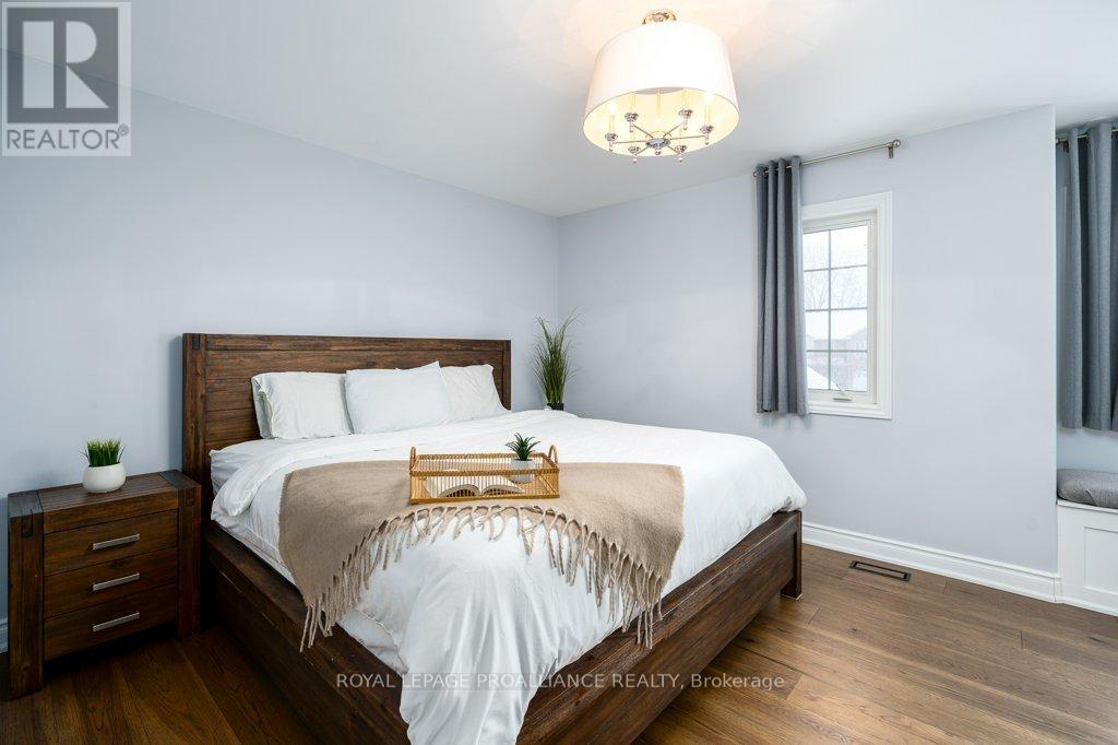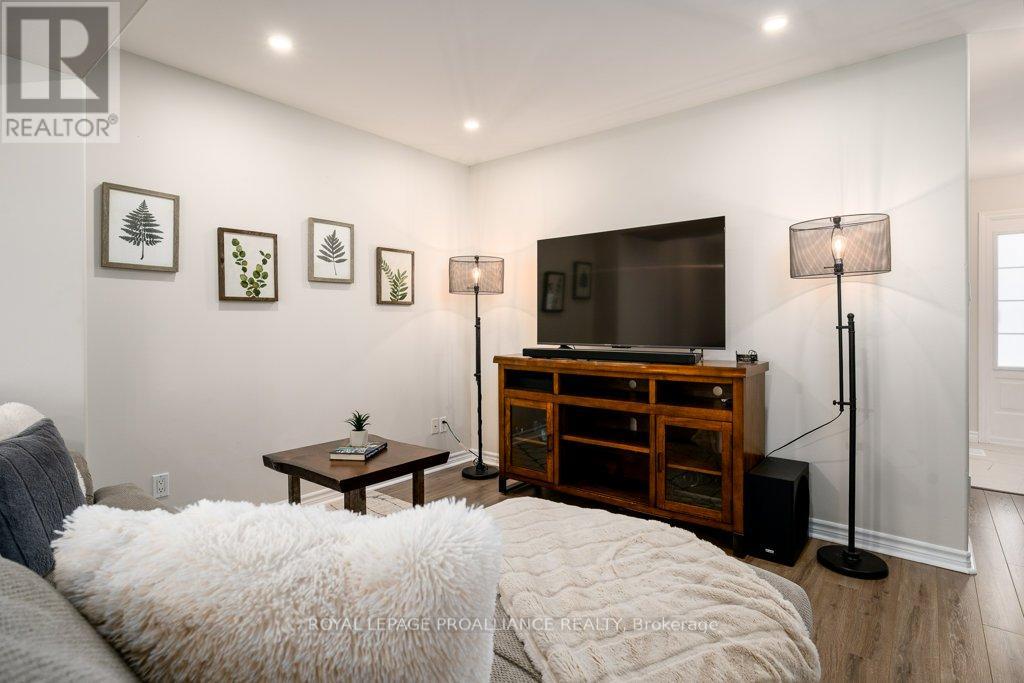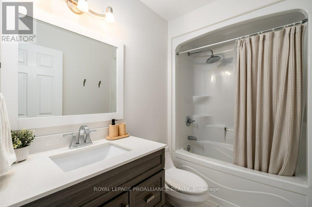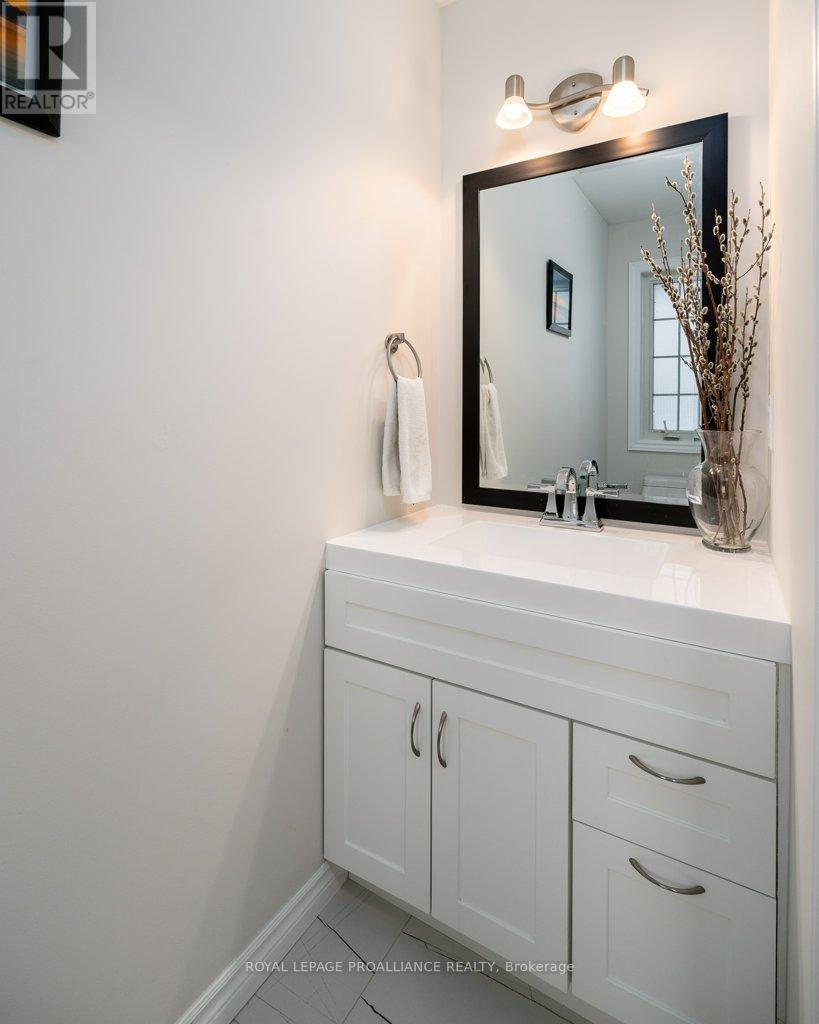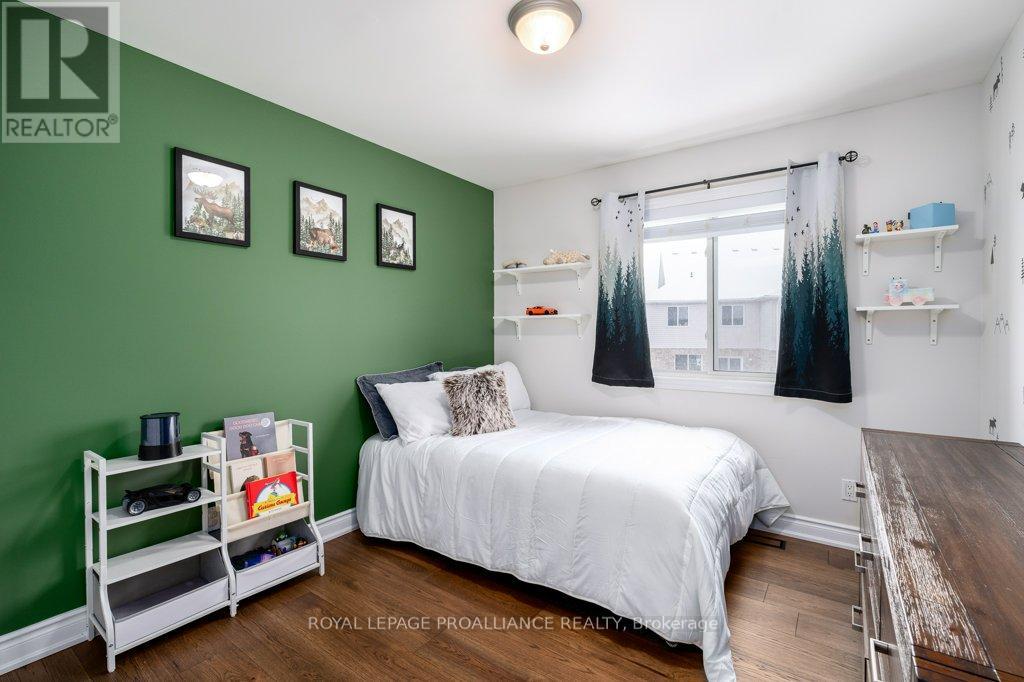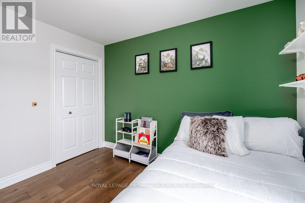 Welcome to this beautifully updated end-unit two-storey townhome located in the heart of Belleville. This bright, open-concept home features a stunning updated kitchen complete with quartz countertops, a new large centre island showcasing elegant pendant lighting, stylish new backsplash and complemented by new pot lighting. Upstairs, you'll find three spacious bedrooms, including a generous primary suite with a walk-in closet, along with a fully renovated bathroom and immaculate walnut hardwood flooring that adds warmth and sophistication. The unfinished basement offers potential for a home gym, additional living space, and even plenty of room for storage. Step outside to your fully fenced-in backyard oasis featuring a newly installed expansive interlocking patio (starting from the front home entrance) a large resurfaced deck (natural gas BBQ hook up available) with gazebo, with west-facing exposure, perfect for soaking in those breathtaking sunsets. Additional upgrades: Shingles 2023, new light switches, porcelain tile in the foyer and main bathroom. This move-in-ready home truly checks all the boxes and is waiting for you! (id:51158)