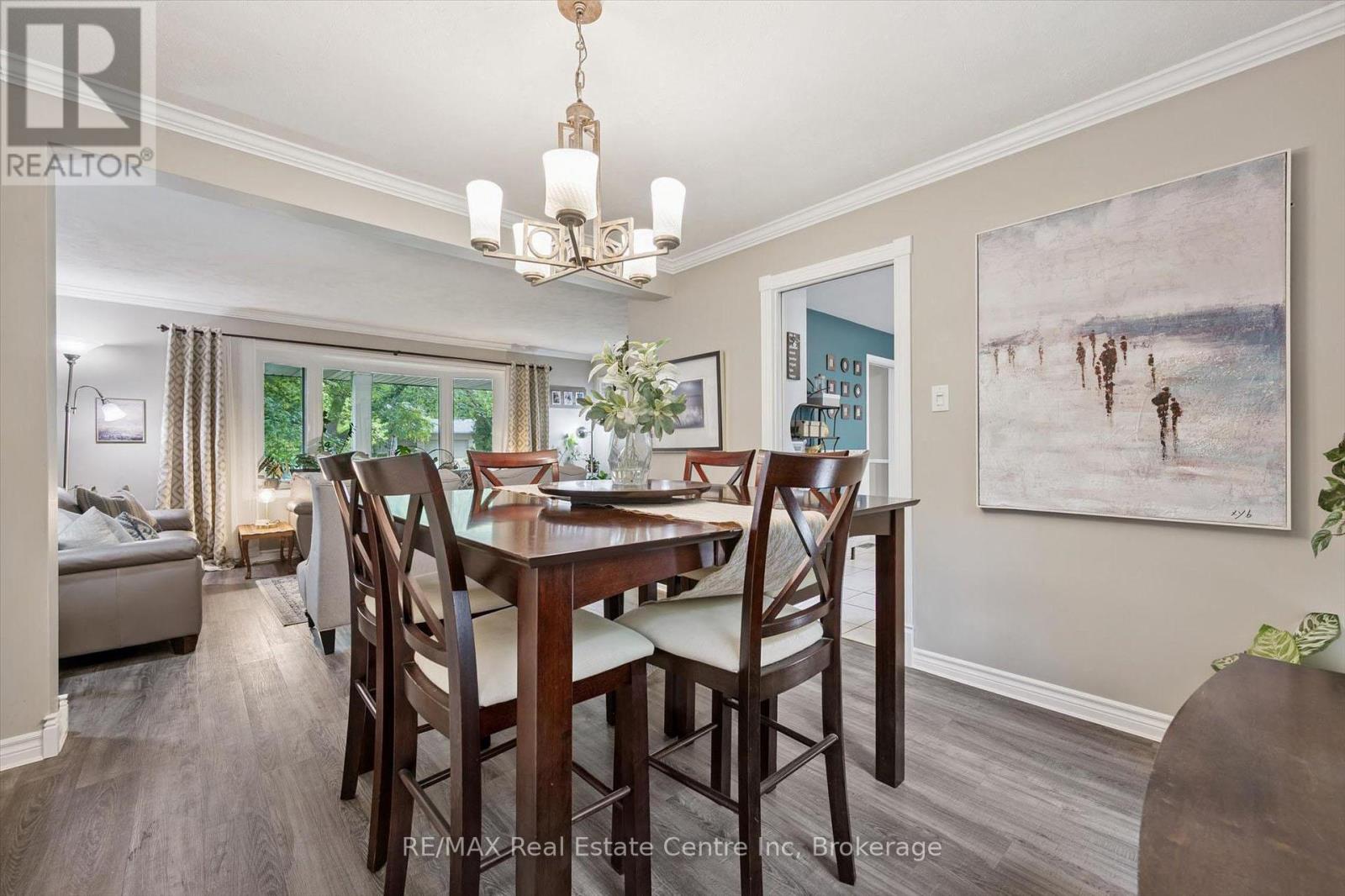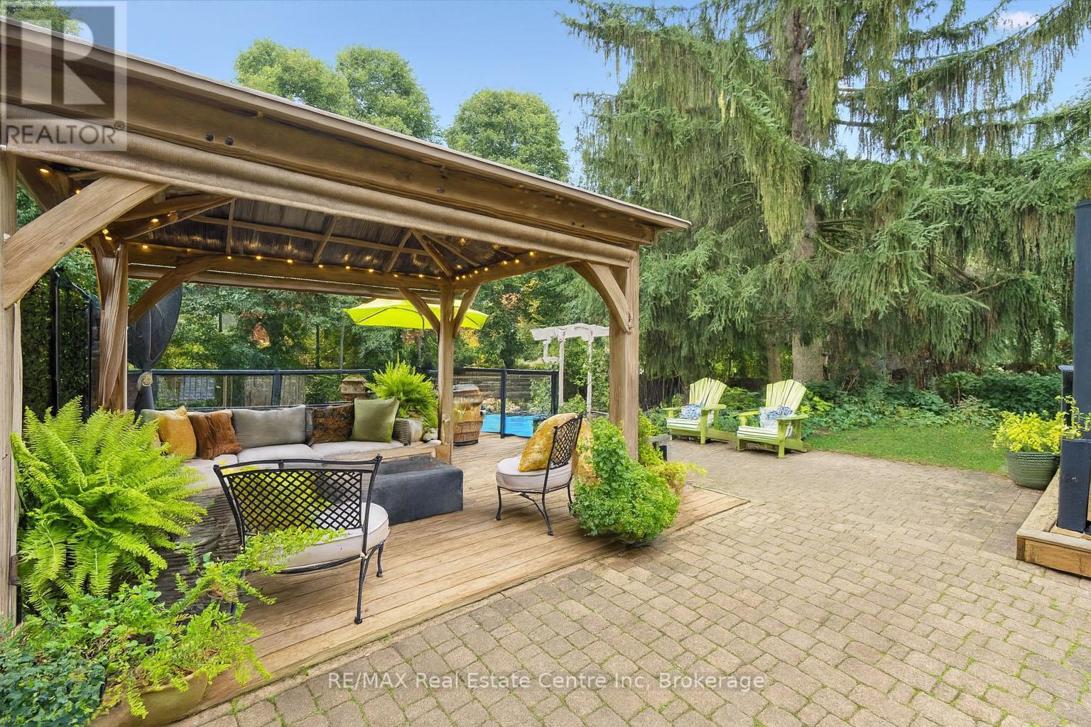 Spectacular 4-bdrm home W/backyard oasis offering 20 X 40 inground pool backing onto greenspace for privacy & tranquil views! Situated on serene cul-de-sac this property offers elegant living & exceptional outdoor entertaining! Step inside to living room W/luxury vinyl & front-facing window that fills space W/natural light. Layout flows easily into dining room where another large window frames beautiful views of backyard. Kitchen is stylish & functional W/white cabinetry, glass tile backsplash, high-end S/S appliances & ample cabinet & counter space. Window above sink looks out to mature trees. A few steps down is family room centred around gas fireplace that creates a warm atmosphere. Sliding doors allow lots of natural light into the room while leading directly outside. Upstairs primary bdrm W/large window, dbl his-and-hers closets & ensuite W/glass W/I shower. 3 add'l bdrms offer large windows & lots of closet space. Stylish 4pc bath W/subway tile shower/tub completes this level. Prof. finished bsmt W/large rec area, exercise zone & ample storage. Step outside & escape to your private retreat! Massive deck W/pergola, interlock patio, add'l deck W/gazebo & landscaped spaces are perfect for entertaining & relaxing. Heated inground pool is surrounded by mature trees. New pool house & newer recently serviced mechanicals ensure worry-free enjoyment. Beyond the main yard is spacious bonus yard-ideal for volleyball, play space or future ADU for extended family or income potential! Updates: brand new windows, newer electrical panel, furnace & AC 10 yrs old, roof approx. 12 yrs old, light-toned paint, modern light fixtures, updated floors & bathrooms. With dbl garage & dbl driveway, parking is never an issue! Location is perfect for families, backing onto Windsor Park, around the corner from Waverley Dr PS & short walk to Speedvale Centre offering groceries, LCBO & more. Nearby trails & Guelph Lake make it easy to stay active & connected to nature! (id:51158)