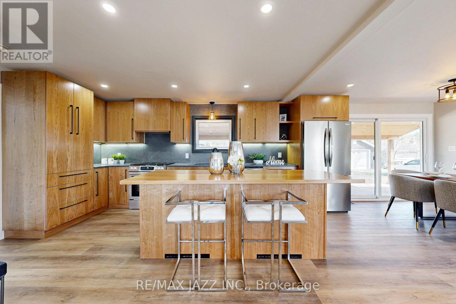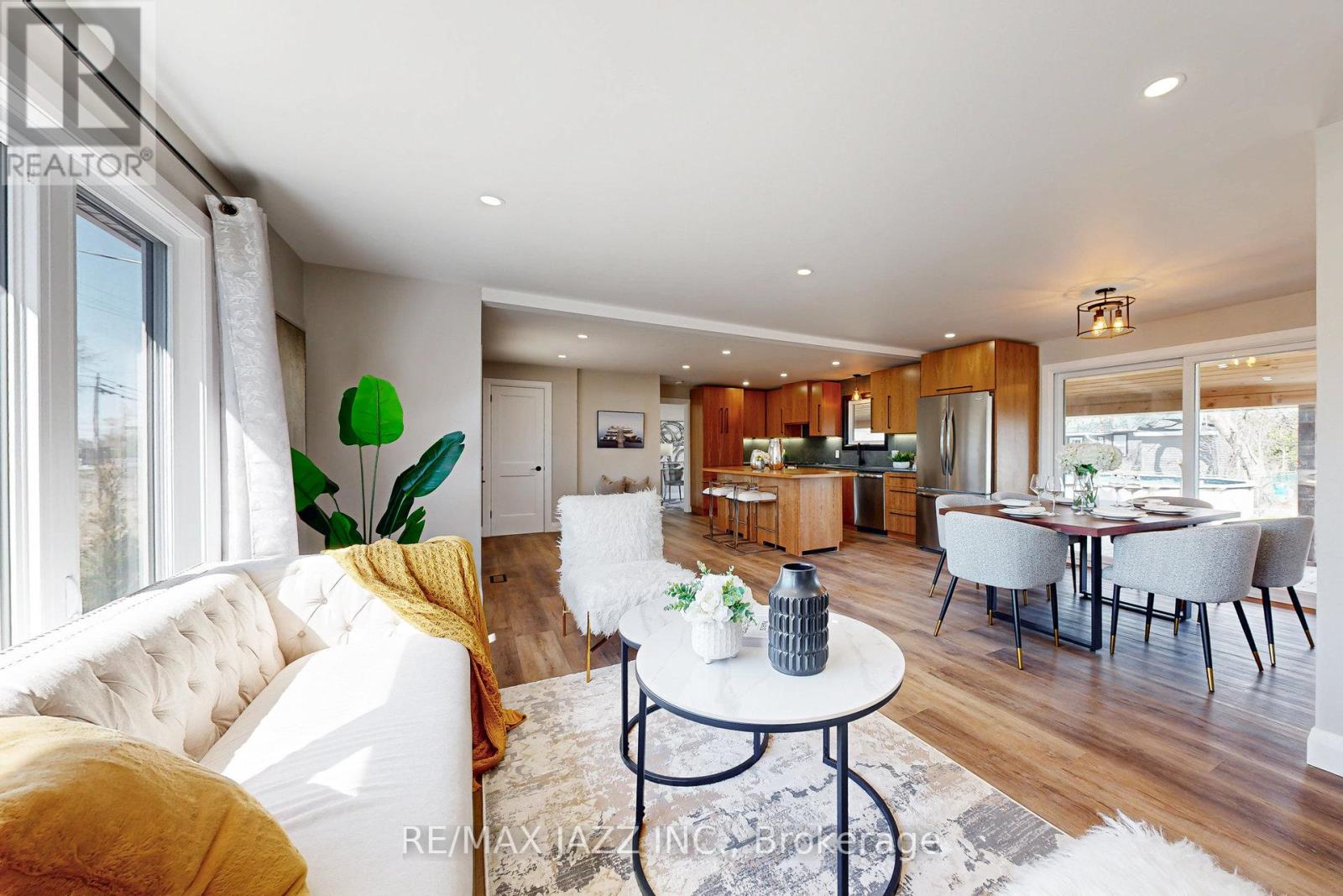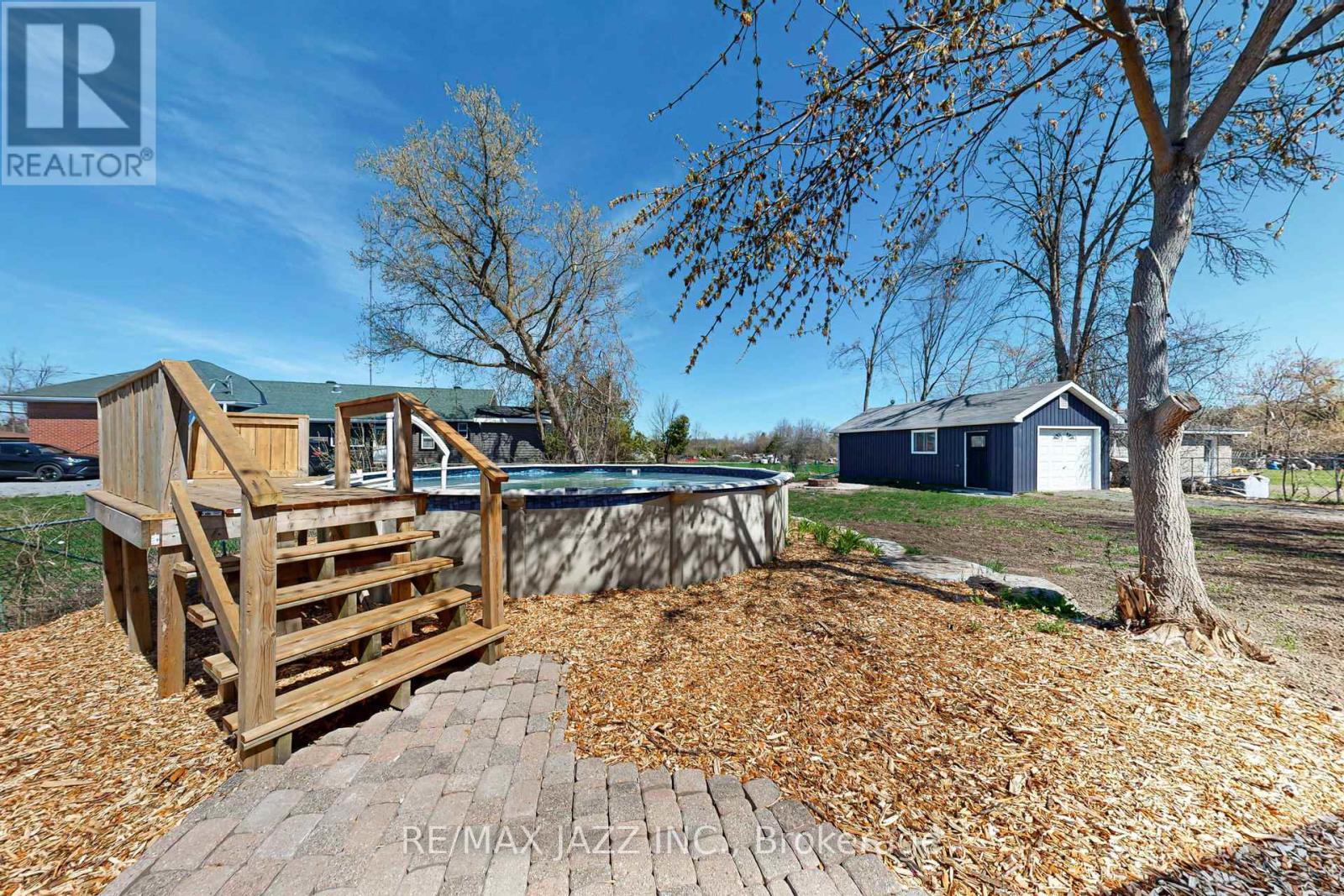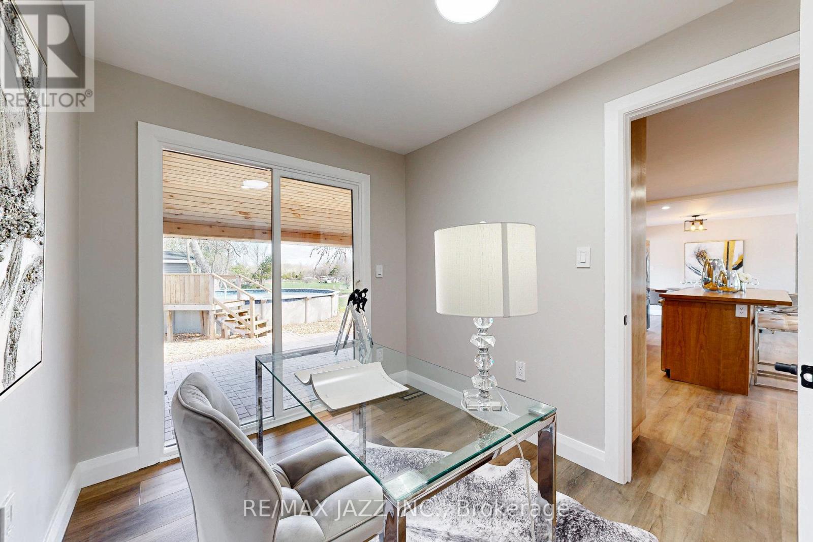 Fully Renovated Ranch Bungalow Just Minutes from Hwy 115! This stylish 4-bedroom, 3-bathroom bungalow has been beautifully updated from top to bottom and sits on a spacious lot with a backyard built for entertaining. The main floor features three bedrooms, including a dreamy primary suite with walk-in closet, double-sink ensuite with heated floors even in the shower! Enjoy walkouts from both the dining room and the main floor den to a covered patio, above-ground pool, and private backyard with a firepit conversation area. The bright, open kitchen includes a rich cherry wood island, while new windows throughout bring in tons of natural light. The finished basement offers a large rec room, fourth bedroom, and full bath perfect for guests or extra living space. Add in a 2-car tandem garage, new furnace, and 2-year-old A/C, and you've got a move-in-ready home with comfort and style. This one truly has it all don't miss your chance! (id:51158)