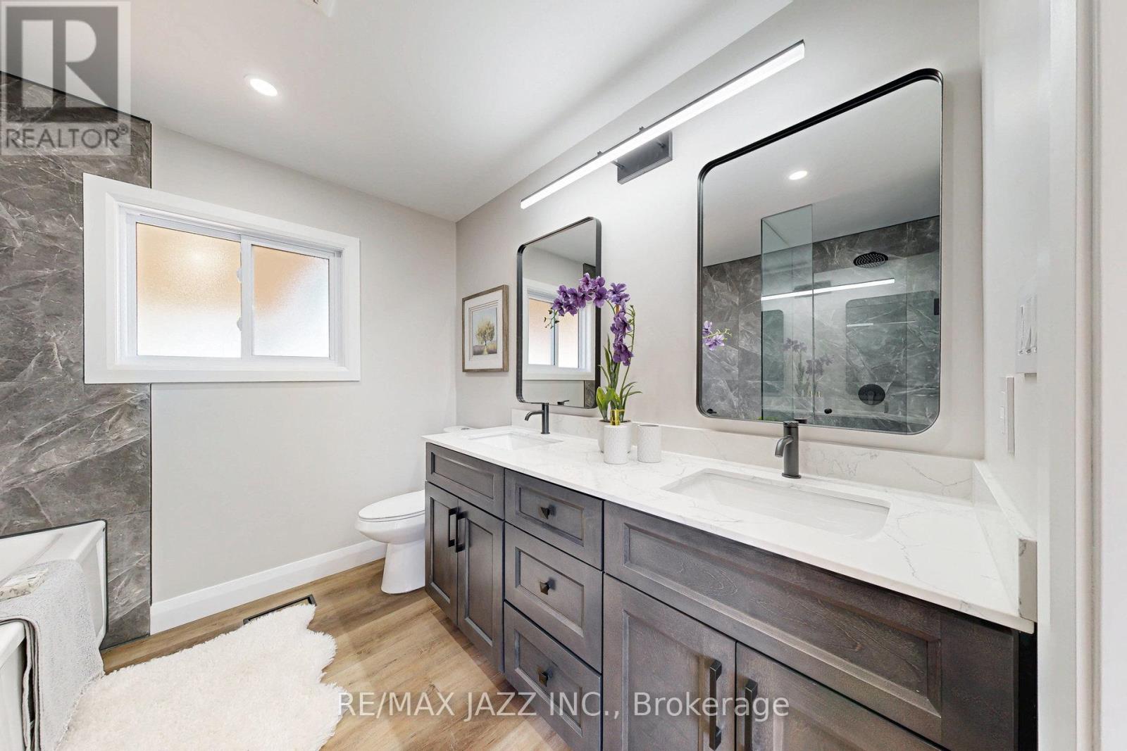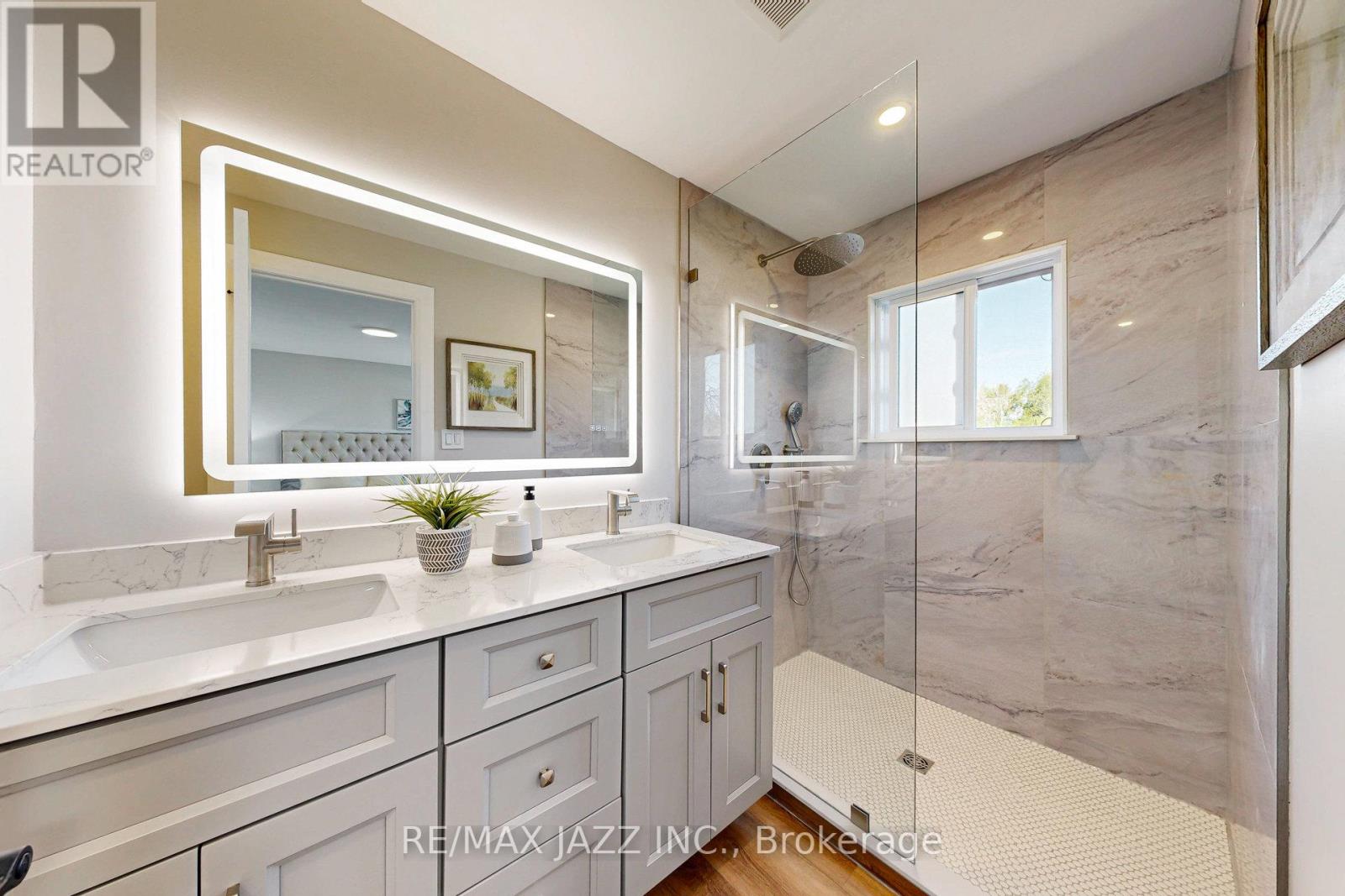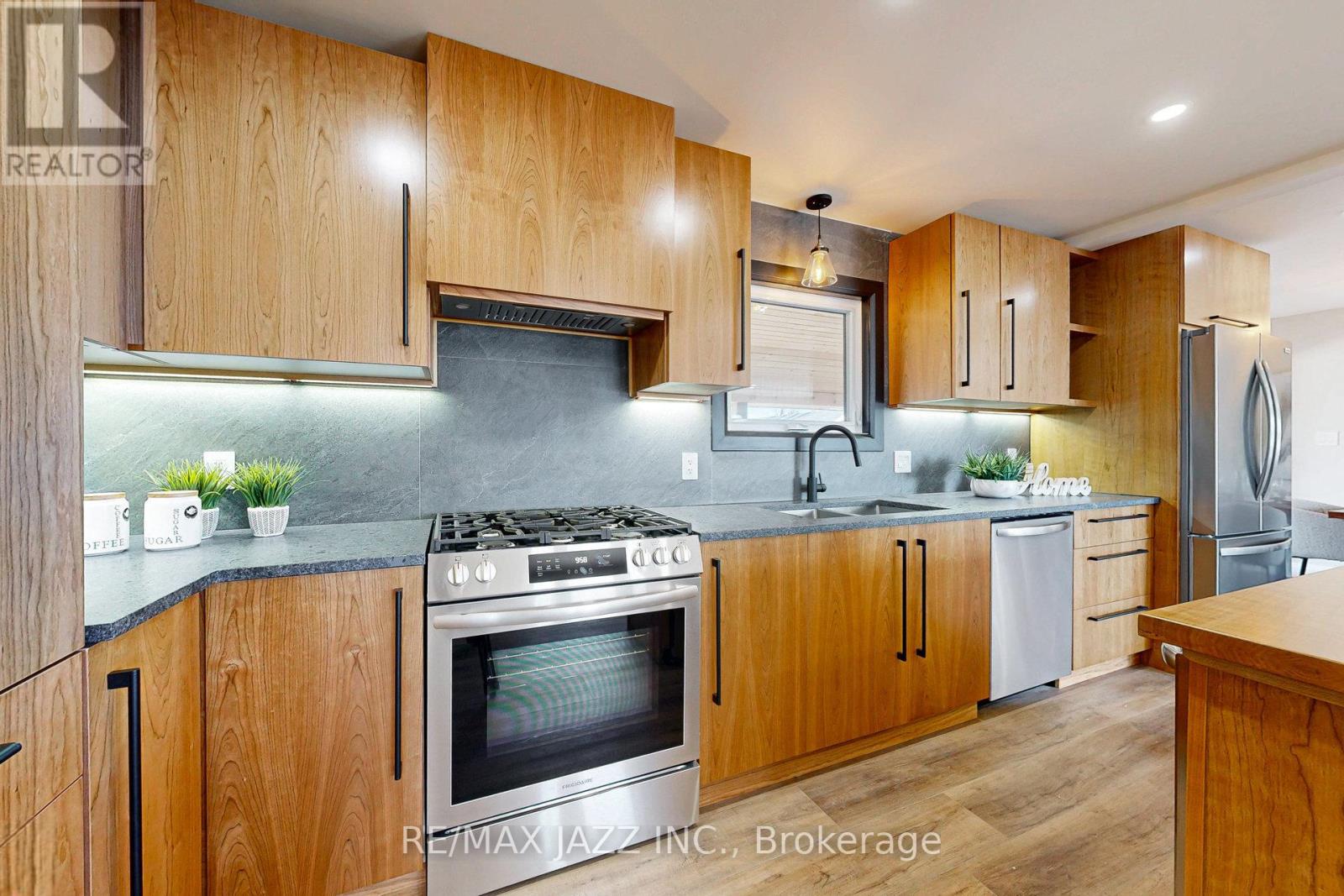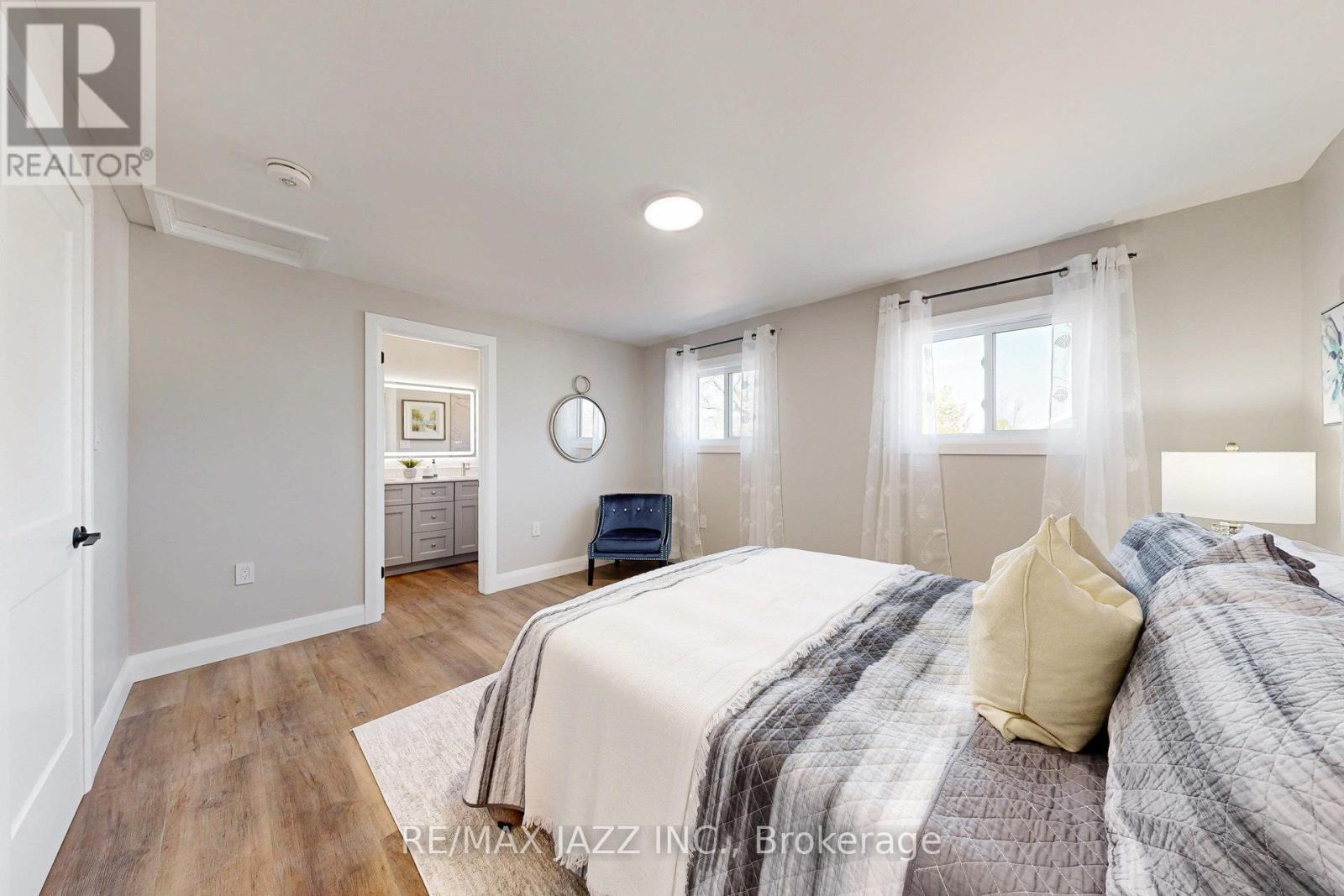 Fully Renovated Ranch Bungalow Just Minutes from Hwy 115! This stylish 4-bedroom, 3-bathroom bungalow has been beautifully updated from top to bottom and sits on a spacious lot with a backyard built for entertaining. The main floor features three bedrooms, including a dreamy primary suite with walk-in closet, double-sink ensuite with heated floors even in the shower! Enjoy walkouts from both the dining room and the main floor den to a covered patio, above-ground pool, and private backyard with a firepit conversation area. The bright, open kitchen includes a rich cherry wood island, while new windows throughout bring in tons of natural light. The finished basement offers a large rec room, fourth bedroom, and full bath perfect for guests or extra living space. Add in a 2-car tandem garage, new furnace, and 2-year-old A/C, and you've got a move-in-ready home with comfort and style. This one truly has it all don't miss your chance! (id:51158)