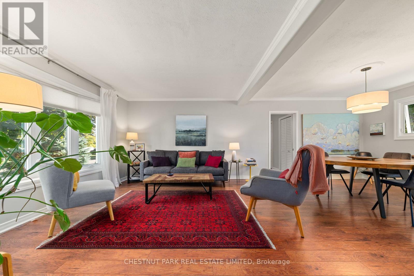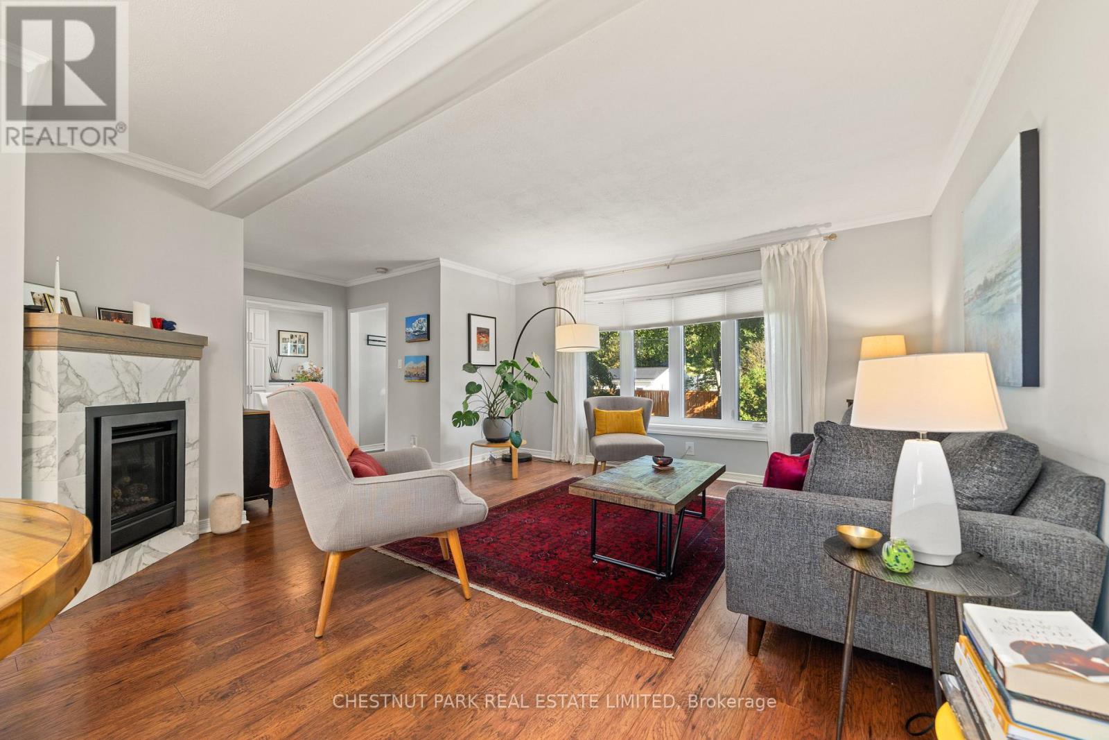 Welcome to 4 Elm Street! This charming, three bedroom, three bath bungalow has an abundance of offerings starting with fantastic curb appeal with its stone facade and planters, fully landscaped lot plus the convenience of a double garage attached by a breezeway. This bright home features gleaming floors, an open living/dining area with windows on both sides warmed by a gas fireplace, a newer eat-in kitchen with all the storage you could ever desire, and a main floor primary bedroom with ample closets plus a full main floor bath. Upstairs, there are two spacious bedrooms and a full bath. The basement level features a large living space with its own bath. Currently a family room, it could potentially be converted to a separate living space with the addition of an egress window and kitchenette. It has its own entrance, perfect for extended family or as an income producing living space. There is also a storage/utility room on this level. The large lot is beautifully landscaped. The patio area in front, gardens front and back, a large deck for entertaining, plus a screened gazebo, are perfect for barbecuing, dining al fresco or just enjoying quiet time outdoors. Close to all downtown Picton has to offer, and a short walk to the local K-12 school, this is a perfect family home or a lovely downsizing opportunity. Don't let this one slip through your fingertips. Come see all that 4 Elm Street has to offer. (id:51158)
