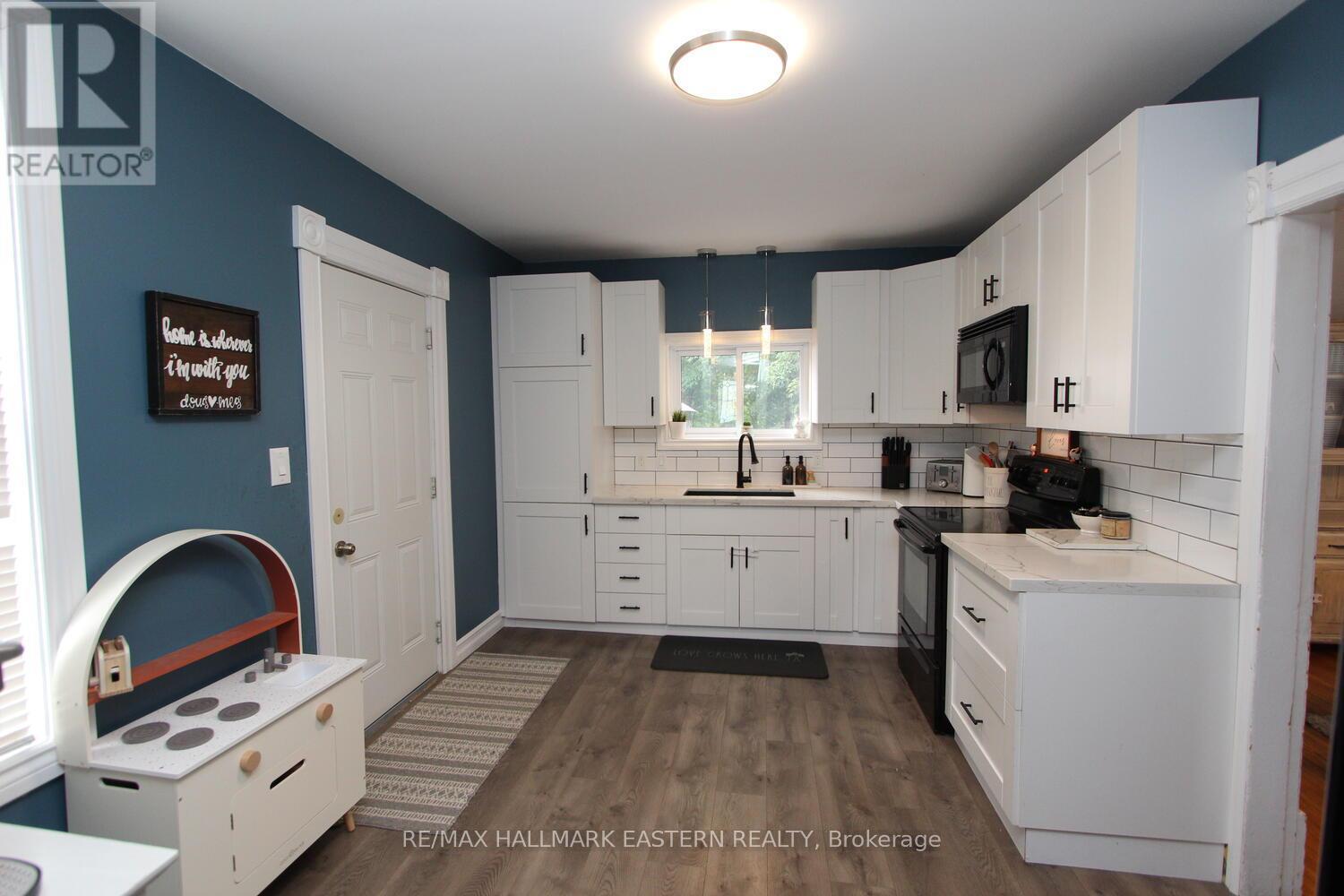 |Havelock| Century Charm Meets Modern Comfort in the Heart of Havelock! This well-maintained 3 bedroom, 1.5 bath two-storey blends timeless character with thoughtful updates featuring high ceilings, wide trim, original-style hardwood floors, and a bright, modern kitchen. The spacious dining room and inviting living room are perfect for gatherings, while the fenced backyard offers a deck for summer BBQs and space for pets to roam. The main floor features classic front foyer, kitchen, dining room, living room, 2 piece bath and mudroom between kitchen and garage (with an exit to the driveway and back yard.) The upper floor has three bedrooms and full bath. The deep single garage provides parking or workshop potential, and the basement adds laundry, storage, utilities and a finished office. Enjoy the comfort of natural gas heat and central air, and the convenience of being walking distance to the school, arena, park with splashpad, shops, and restaurants. Love the outdoors? You're just around the corner from Mathison Conservation Areas 250 acres of trails and nature! 35 minutes to Peterborough, 45 minutes to Belleville and Cobourg. (id:51158)