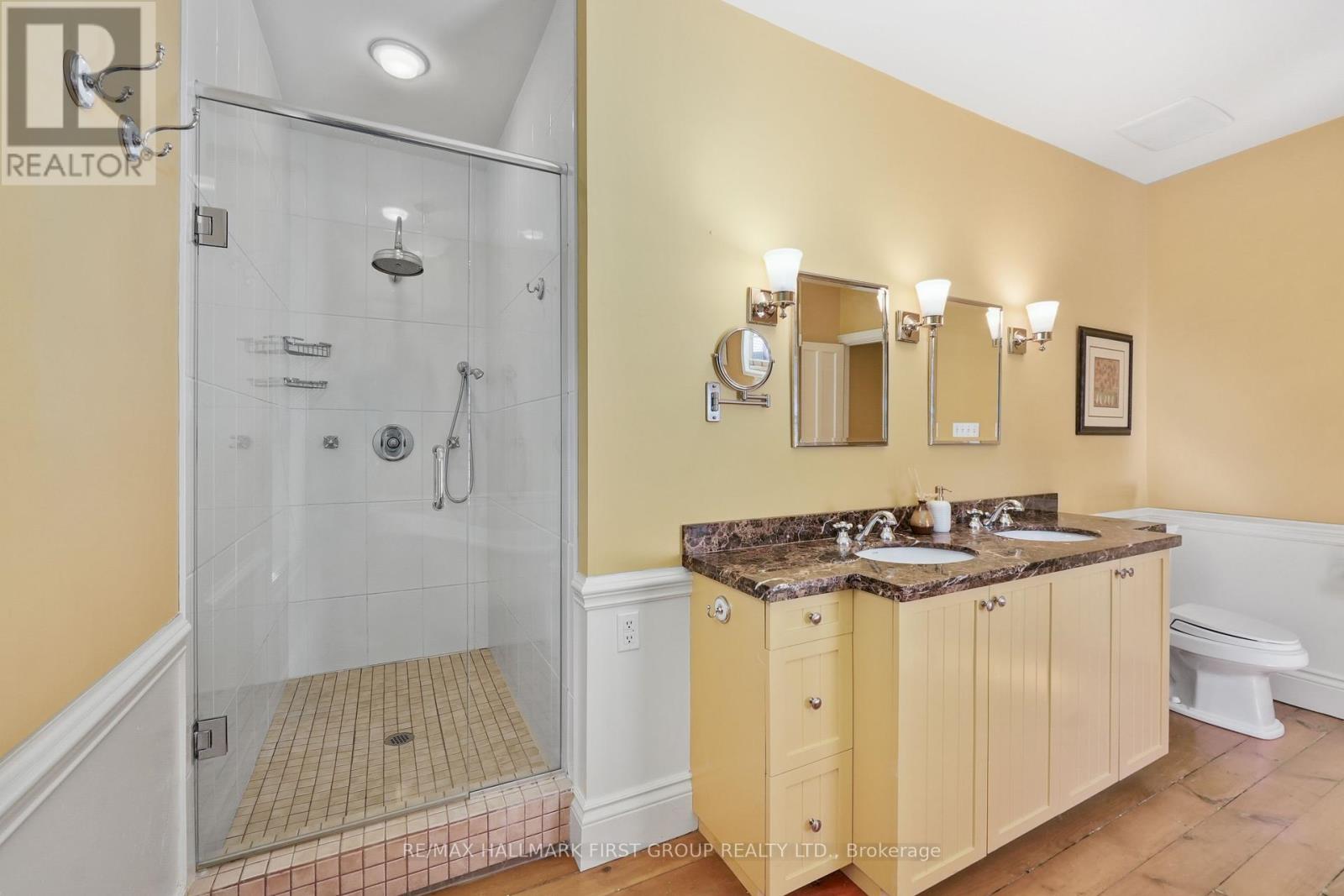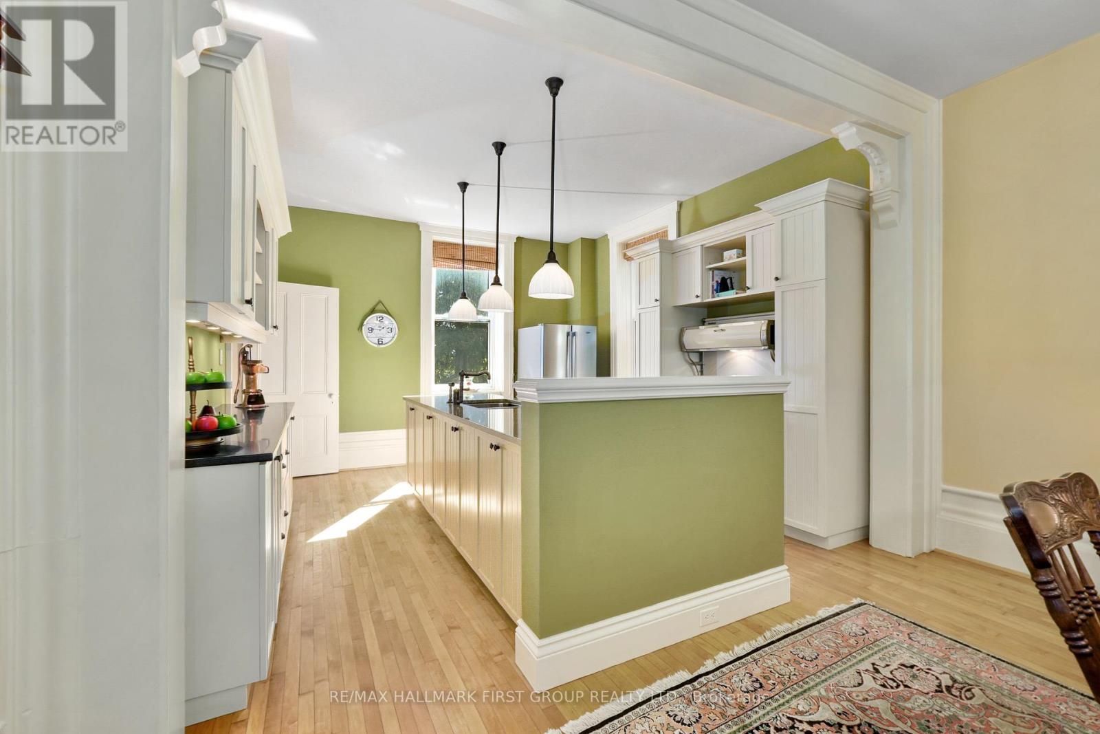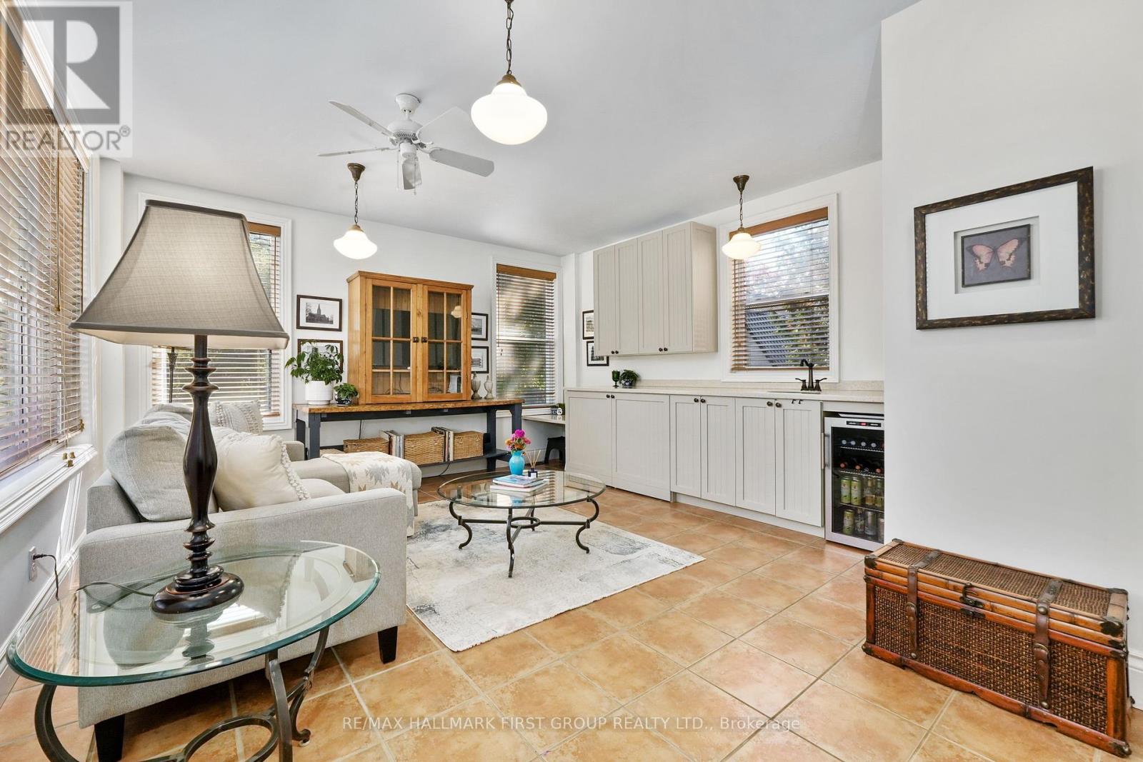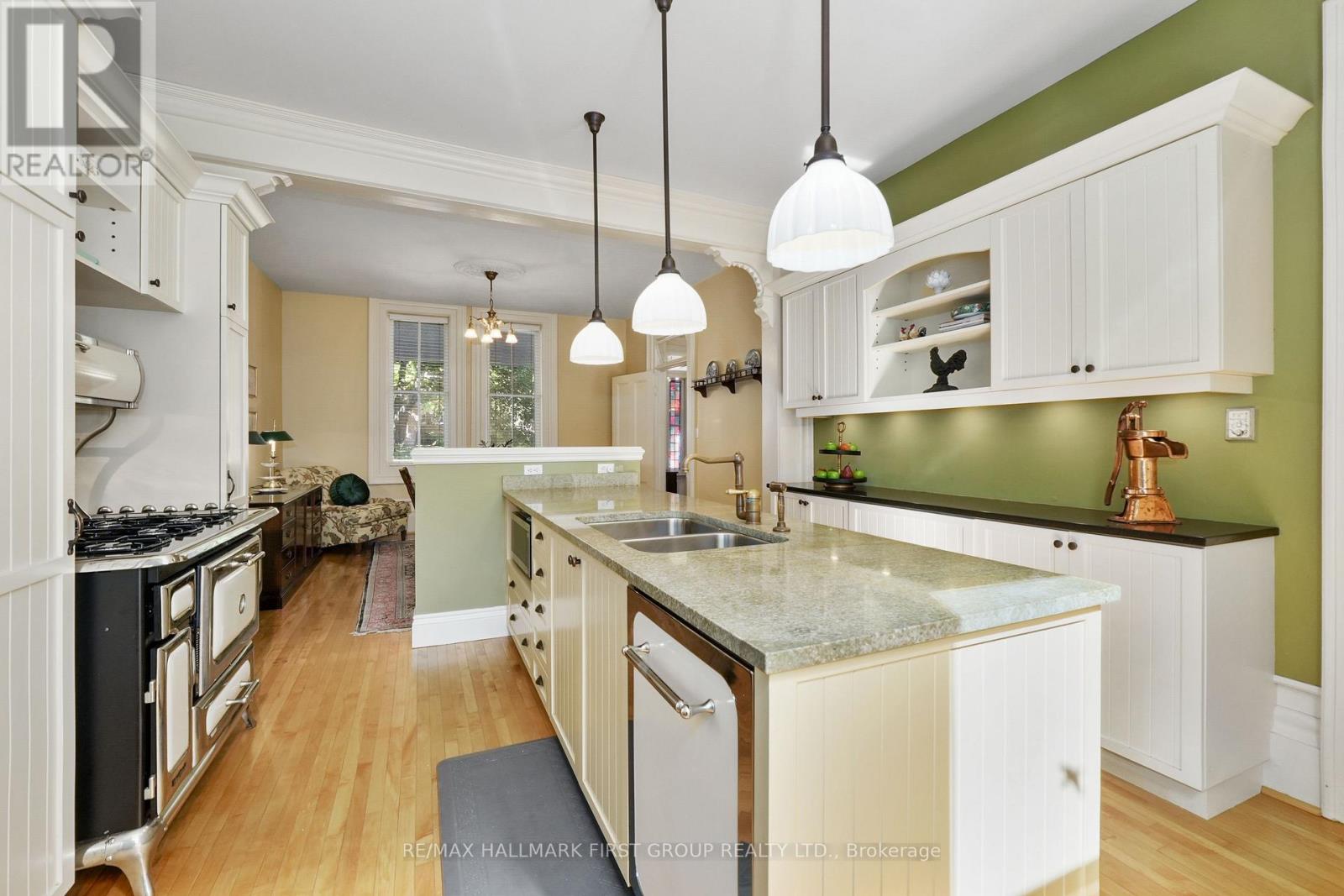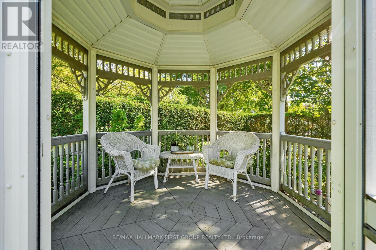 This character-filled two-storey red brick century home, circa 1860s, blends historic charm with generous living space and modern convenience. A covered front veranda, surrounded by meticulously maintained perennial gardens, sets the tone for the timeless elegance found throughout. Inside, the main floor showcases period details including extra-wide baseboards, detailed crown mouldings, and decorative ceiling coins. The sunlit front living room with fireplace flows seamlessly into the spacious formal dining room. A thoughtfully designed kitchen features a central island with pendant lighting and a vintage-inspired cooktop and oven, opening into an informal dining area. A bright family room with a walkout and bar area provides the perfect space for entertaining, complemented by a guest bathroom on this level. The upper floor is anchored by the primary suite, which features an en-suite bathroom and a walkout to a private balcony. Three additional bedrooms, a full bathroom with a separate tub and shower, plus a double vanity, and a cozy den or reading nook complete the layout. The lower level offers ample storage and a separate walkout to the backyard. Outdoors, discover a private retreat featuring a fully fenced yard, tranquil pond, screened wood gazebo, and spacious deck, perfect for alfresco dining. A detached four-car garage provides exceptional parking and storage. Located near schools, amenities, and offering easy access to Highway 2 and the 401, this historic gem is the perfect blend of character, comfort, and convenience. (id:51158)