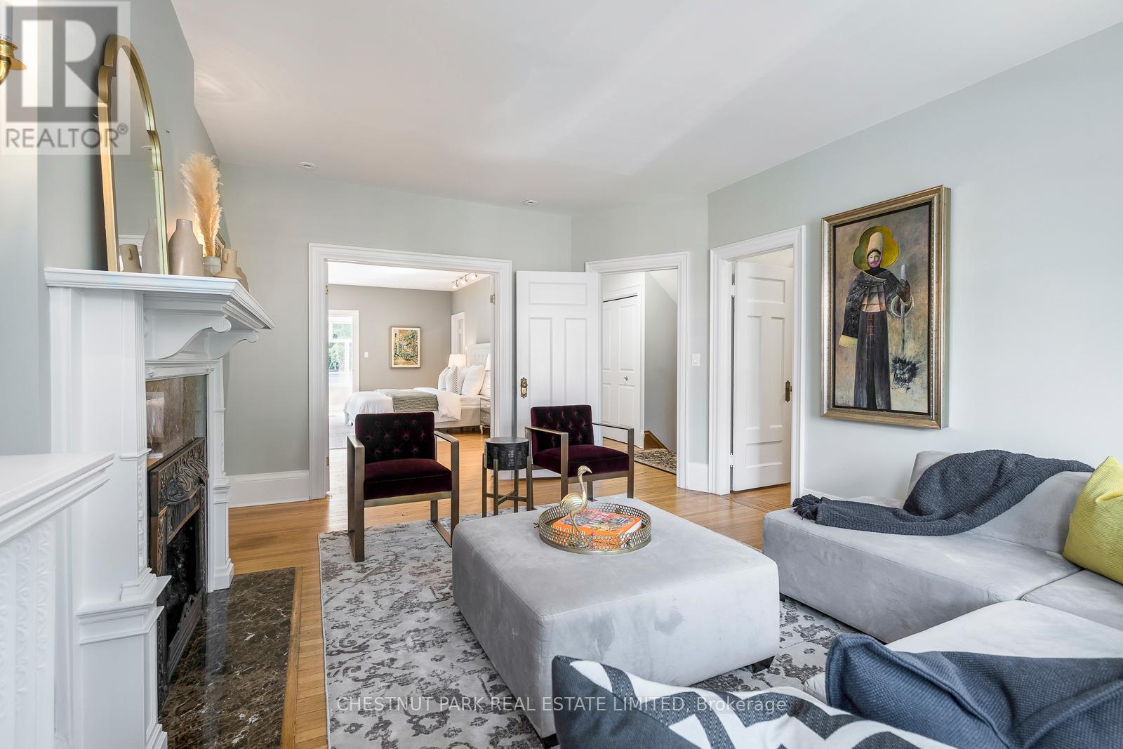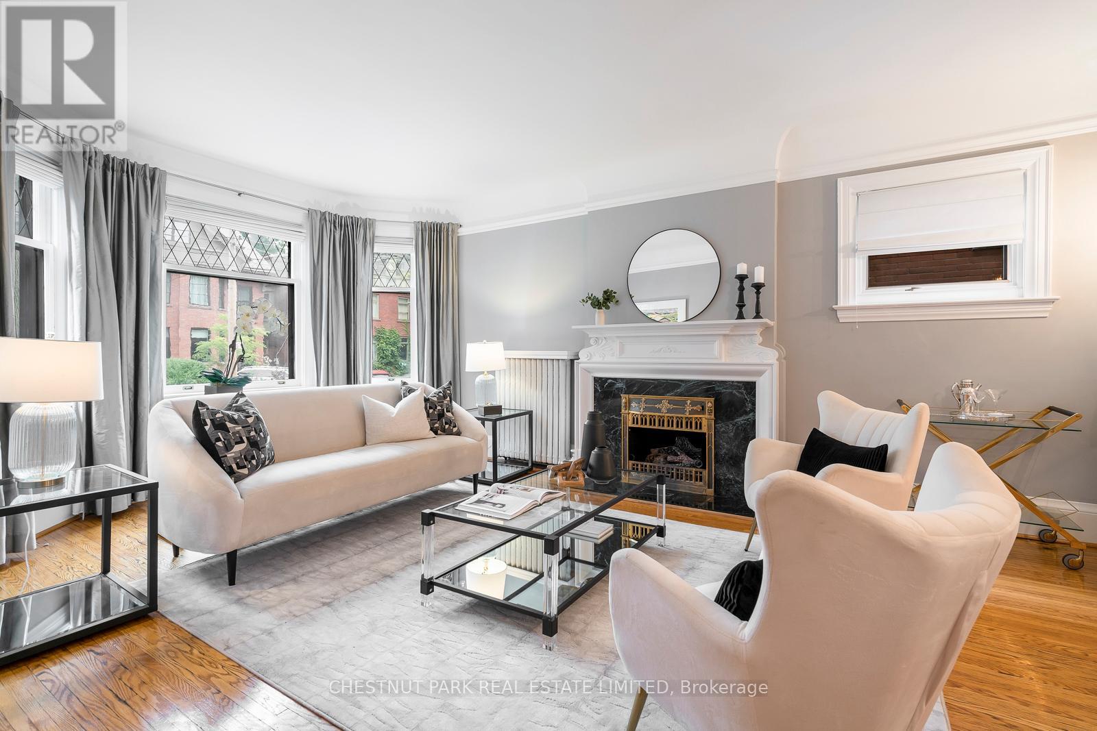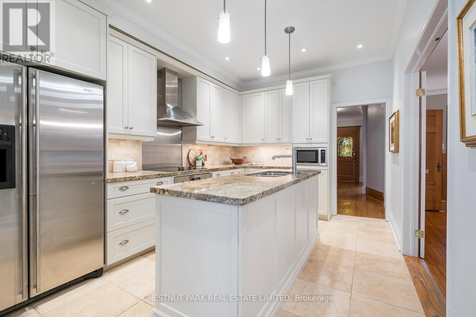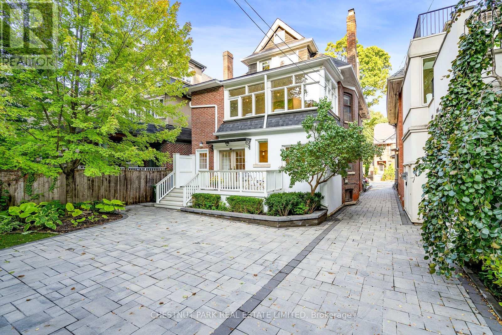 Location! Location! Location! Prime Annex/Yorkville area, on one of the most iconic and sought-after streets, this home boasts an address of distinction. Just steps away from galleries, shops, restaurants, and both lines of the TTC, this gracious residence exudes character from the moment you enter. The spacious principal rooms, leaded glass windows, high ceilings, and original woodwork combine to create an ambiance of timeless elegance. The home features multiple fireplaces, high baseboards, cast-iron radiators, and original wainscoting. The main floor includes a large living room, an elegant dining room, a Chef's kitchen, and a cozy breakfast room with French doors opening to a back deck and a private garden. Two staircases lead to the second floor, where you'll find a generous primary bedroom retreat with a walk-through closet, a newly renovated 4-piece ensuite bath, and a bright Sunroom with skylight and many windows. French glass doors open to a large second bedroom or sitting room/family room, which includes another newly updated 3-piece ensuite bath. There is also laundry on the second floor, along with two separate bathrooms. The third floor features three bedrooms, an office, and a newly updated 3-piece bath. The lower level, with a separate entrance, offers a rec room, two bedrooms, a new ensuite bath, a kitchen, and additional laundry. Parking is available for two cars outside on a heated driveway, plus two in a new detached garage with a lift ( 4 total ). The house is virtually staged. Home Inspection available. Opportunity to design your own vision in a grand scale. (id:51158)