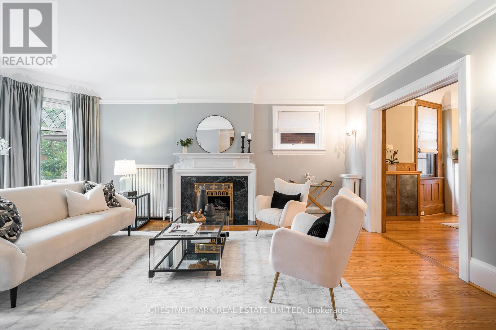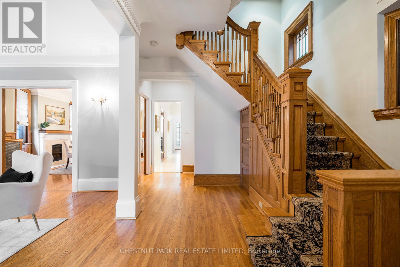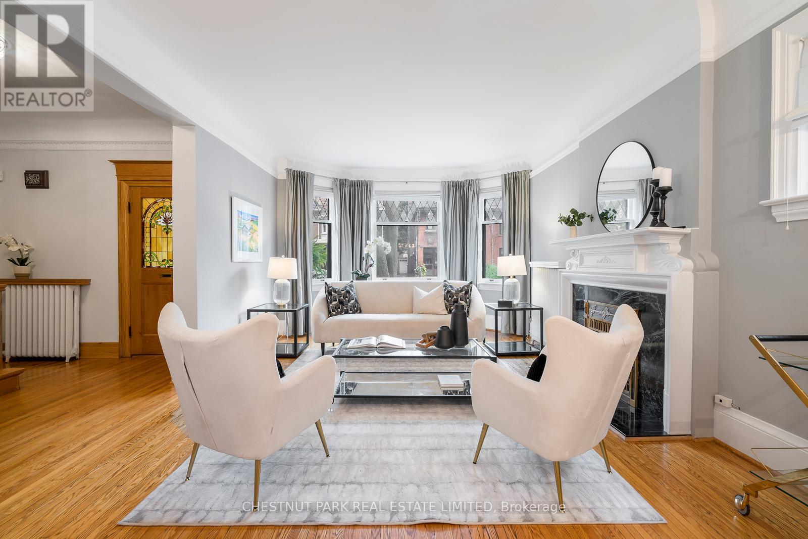 Location! Location! Location! Prime Annex/Yorkville area, on one of the most iconic and sought-after streets, this home boasts an address of distinction. Just steps away from galleries, shops, restaurants, and both lines of the TTC, this gracious residence exudes character from the moment you enter. The spacious principal rooms, leaded glass windows, high ceilings, and original woodwork combine to create an ambiance of timeless elegance. The home features multiple fireplaces, high baseboards, cast-iron radiators, and original wainscoting. The main floor includes a large living room, an elegant dining room, a Chef's kitchen, and a cozy breakfast room with French doors opening to a back deck and a private garden. Two staircases lead to the second floor, where you'll find a generous primary bedroom retreat with a walk-through closet, a newly renovated 4-piece ensuite bath, and a bright Sunroom with skylight and many windows. French glass doors open to a large second bedroom or sitting room/family room, which includes another newly updated 3-piece ensuite bath. There is also laundry on the second floor, along with two separate bathrooms. The third floor features three bedrooms, an office, and a newly updated 3-piece bath. The lower level, with a separate entrance, offers a rec room, two bedrooms, a new ensuite bath, a kitchen, and additional laundry. Parking is available for two cars outside on a heated driveway, plus two in a new detached garage with a lift ( 4 total ). The house is virtually staged. Home Inspection available. Opportunity to design your own vision in a grand scale. (id:51158)