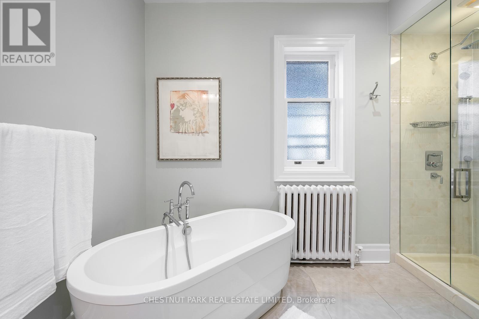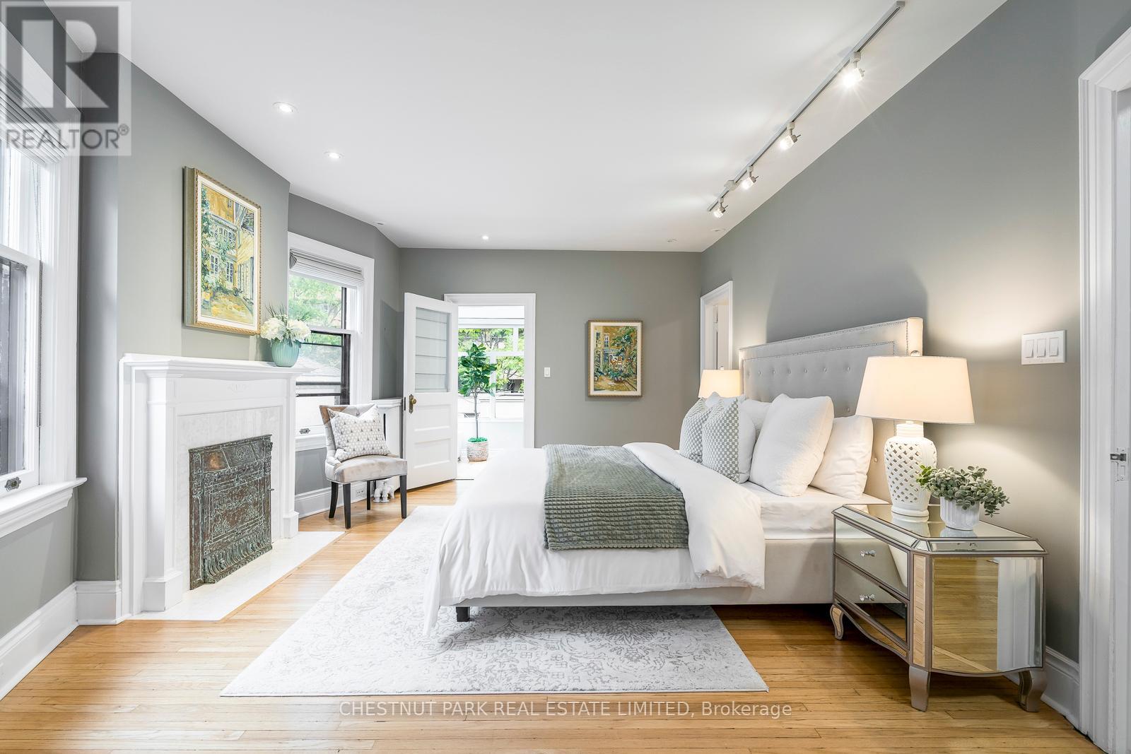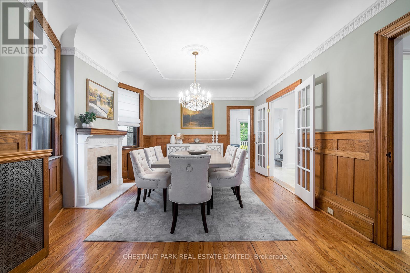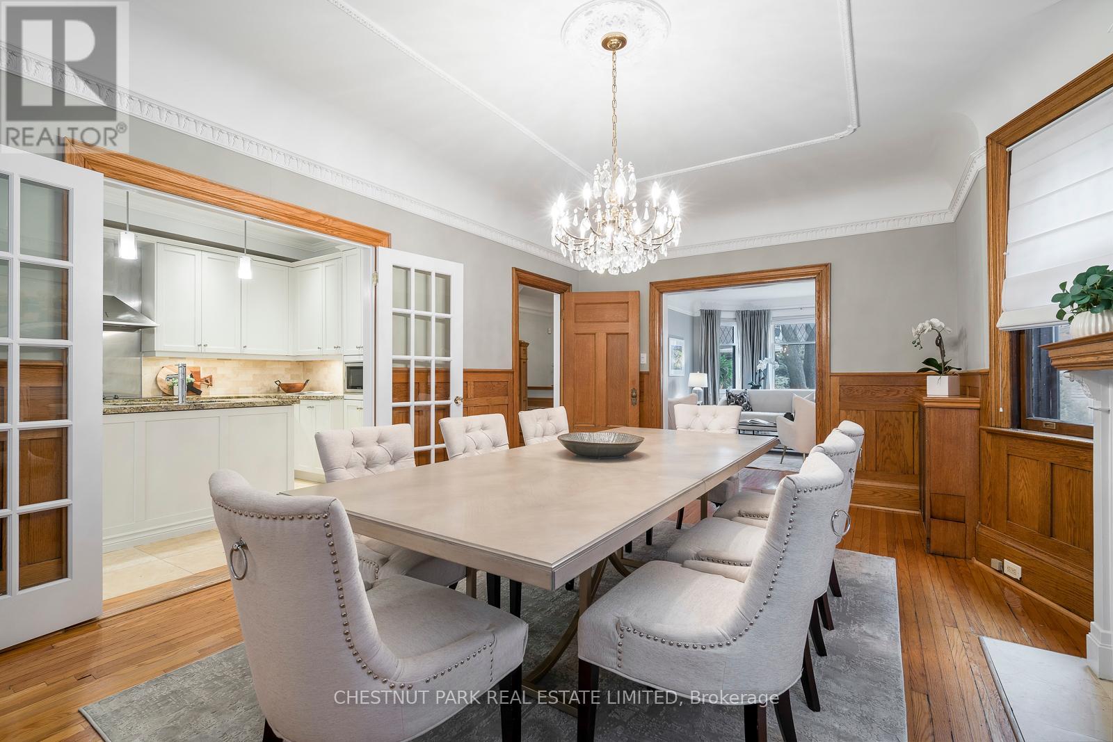 Location! Location! Location! Prime Annex/Yorkville area, on one of the most iconic and sought-after streets, this home boasts an address of distinction. Just steps away from galleries, shops, restaurants, and both lines of the TTC, this gracious residence exudes character from the moment you enter. The spacious principal rooms, leaded glass windows, high ceilings, and original woodwork combine to create an ambiance of timeless elegance. The home features multiple fireplaces, high baseboards, cast-iron radiators, and original wainscoting. The main floor includes a large living room, an elegant dining room, a Chef's kitchen, and a cozy breakfast room with French doors opening to a back deck and a private garden. Two staircases lead to the second floor, where you'll find a generous primary bedroom retreat with a walk-through closet, a newly renovated 4-piece ensuite bath, and a bright Sunroom with skylight and many windows. French glass doors open to a large second bedroom or sitting room/family room, which includes another newly updated 3-piece ensuite bath. There is also laundry on the second floor, along with two separate bathrooms. The third floor features three bedrooms, an office, and a newly updated 3-piece bath. The lower level, with a separate entrance, offers a rec room, two bedrooms, a new ensuite bath, a kitchen, and additional laundry. Parking is available for two cars outside on a heated driveway, plus two in a new detached garage with a lift ( 4 total ). The house is virtually staged. Home Inspection available. Opportunity to design your own vision in a grand scale. (id:51158)