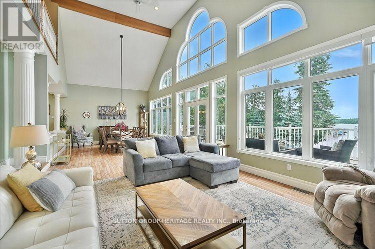 Home business opportunity situated in cottage country. This stunning lakefront home is located on Sturgeon Lake and includes 4 income producing cottages. This custom built home boasts expansive lake views from the great room which is spacious and bright. The open concept provides for a large kitchen with an island, great for entertaining and has a walk-out to your deck to enjoy peaceful evenings or an early morning coffee. Upstairs you will find a loft with your very own home office. The lower level is a walk-out looking onto the lake and is fully finished with a separate entrance. Cottages are presently rented and are approximately 720 sq. ft. each with separate meters. This property is connected to municipal water and sewers. You can walk or take a short drive to beautiful Bobcaygeon with great shopping and many restaurants. The waterfront is crystal clear for swimming and there is a a large dock for your boat or friends who come to visit by boat. Sit in the lovely sunroom at the water's edge mosquito free to wind down at the end of your day. (id:51158)
