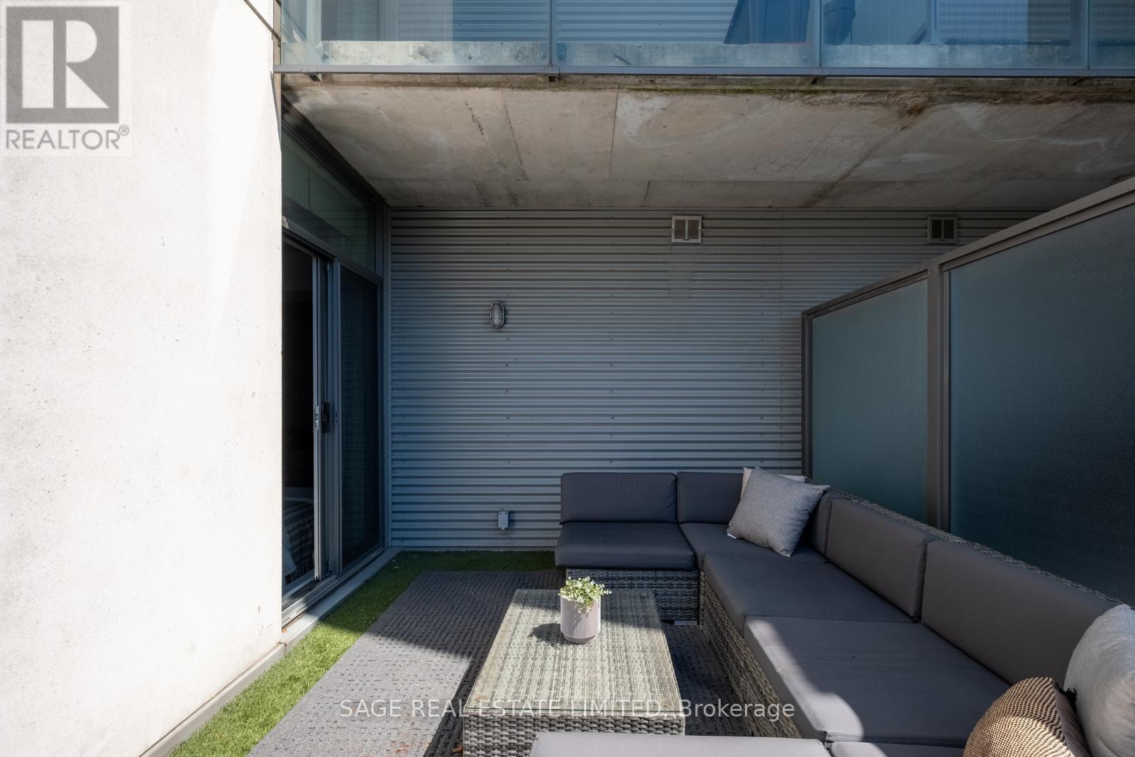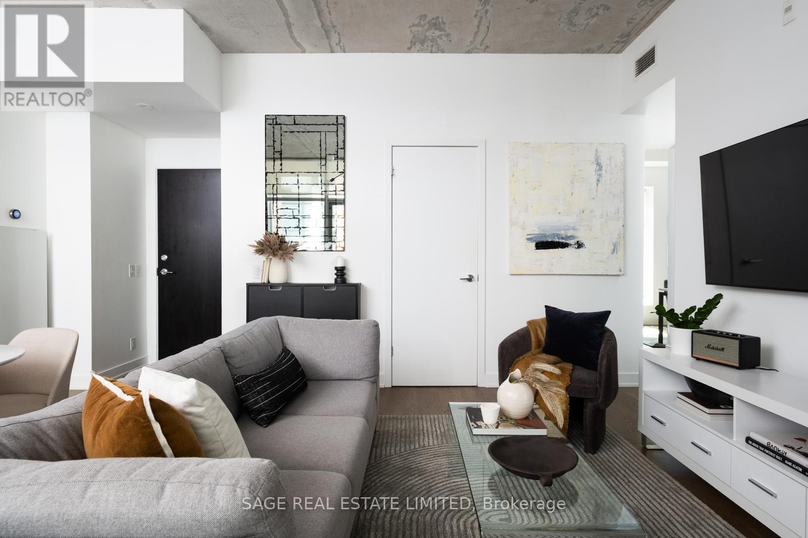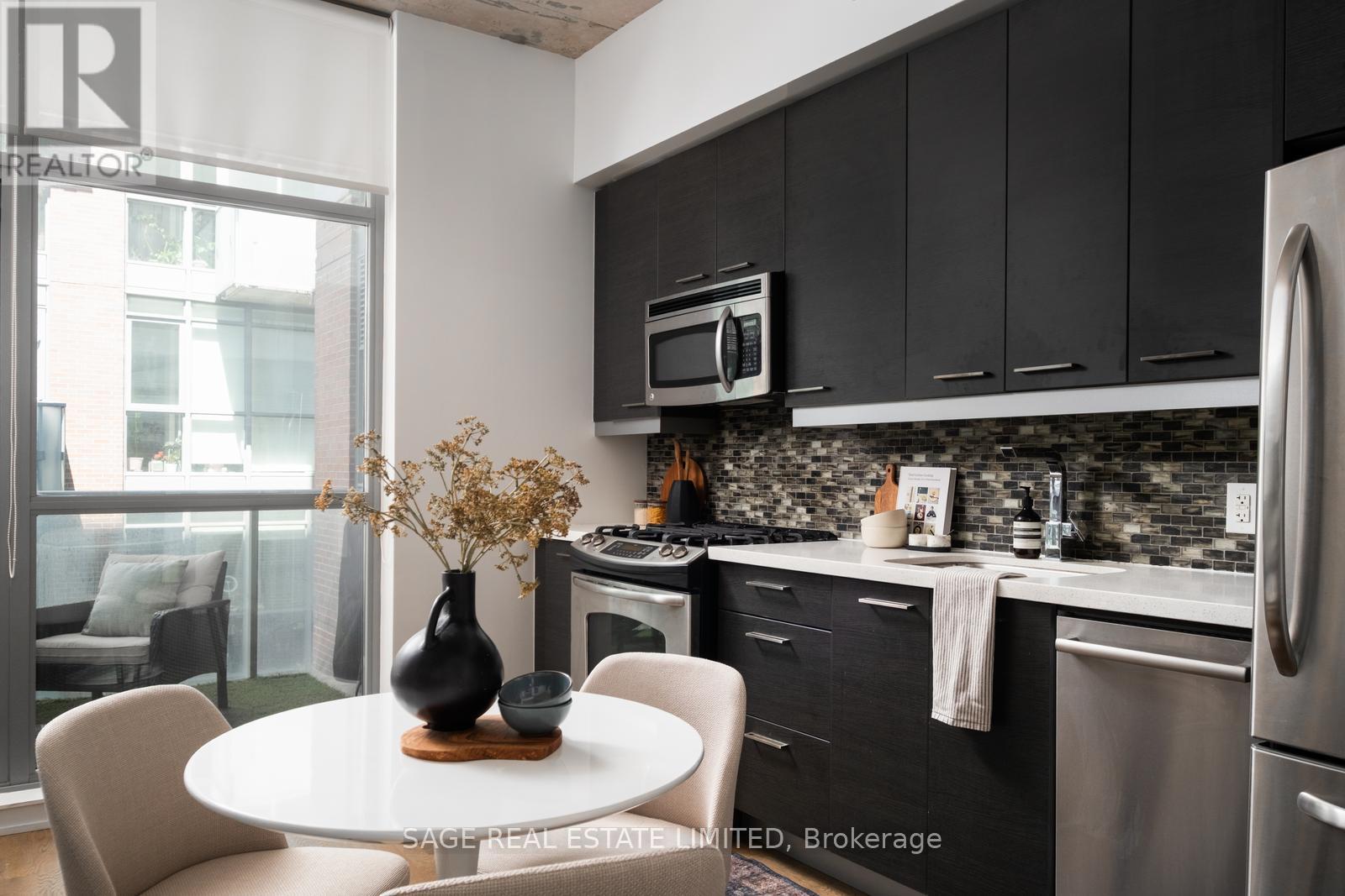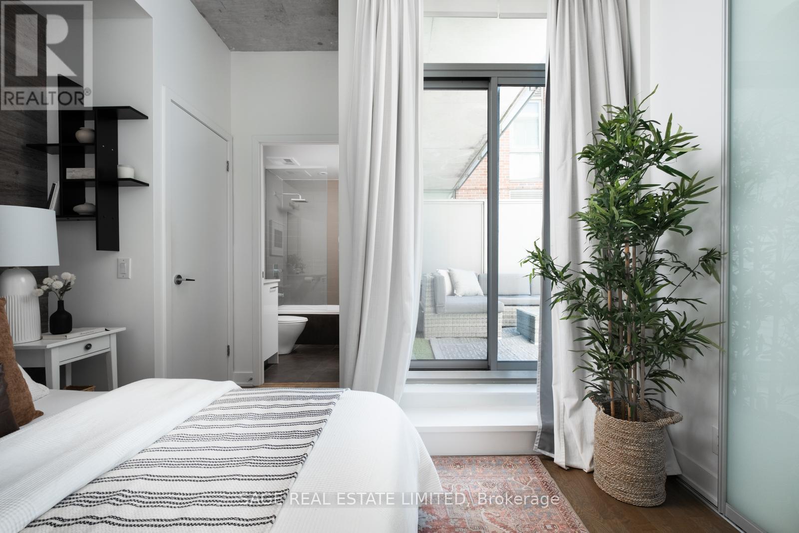 Welcome to loft living at its best in the heart of Queen West. This 2+1 bedroom, 2 bathroom suite at 2 Gladstone brings together industrial character, modern design, and everyday convenience--all in one of Toronto's trendiest neighbourhoods. Inside, soaring 9.5-foot exposed concrete ceilings and floor-to-ceiling windows create an open and airy feel. The kitchen is sleek and functional with full-size stainless steel appliances, a gas stove, and plenty of storage, flowing into the living and dining areas and out to a 184 sq ft balcony with a gas line for BBQs--rare in the city. The primary bedroom is a true retreat, with three closets, a 4-piece ensuite, and a walkout to a private 135 sq ft terrace where you can enjoy morning coffee or evening wine in complete privacy. The second bedroom is versatile, while the oversized den with custom built-ins offers the perfect work-from-home setup or additional guest space. The den has a large window, and is perfect for a nursery or home office. This boutique building offers unbeatable convenience, with two grocery stores just outside your door, and countless bars, cafes, eateries, and restaurants at your doorstep, including the Gladstone and Drake Hotels. Trinity Bellwoods Park is a 20-minute stroll away, the Queen Street streetcar is right outside, and the Gardiner Expressway is only minutes away by car. With underground parking, a locker, and a location that blends style, function, and city living, this is urban loft life--elevated. (id:51158)