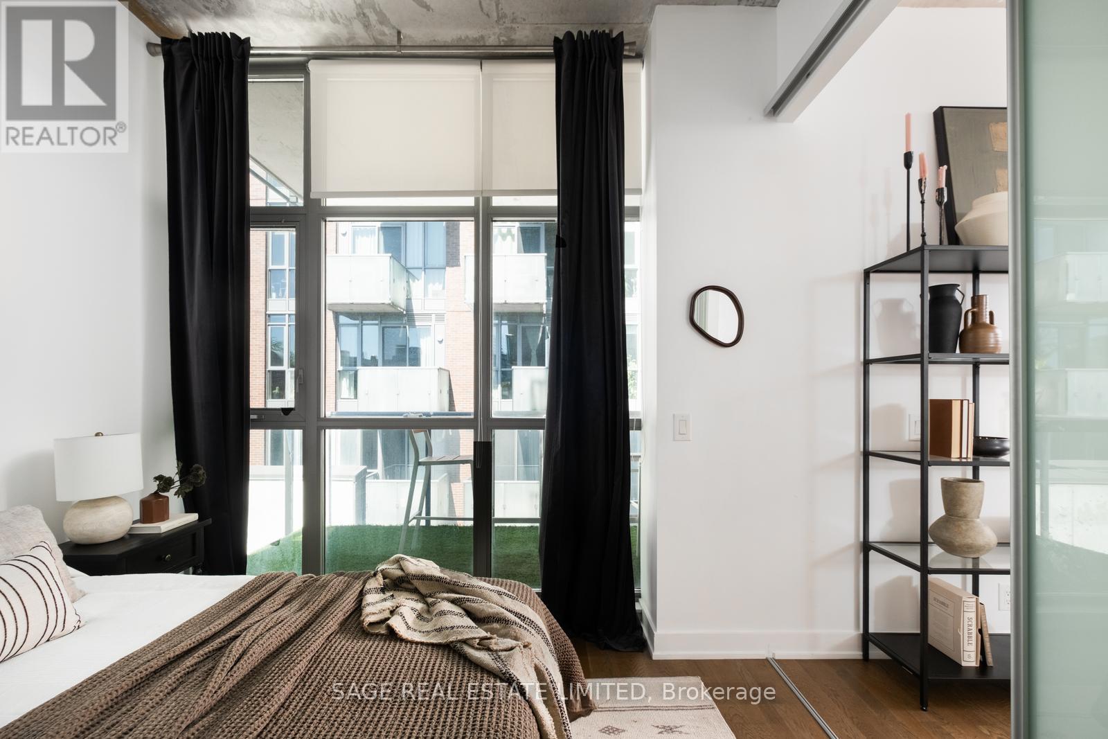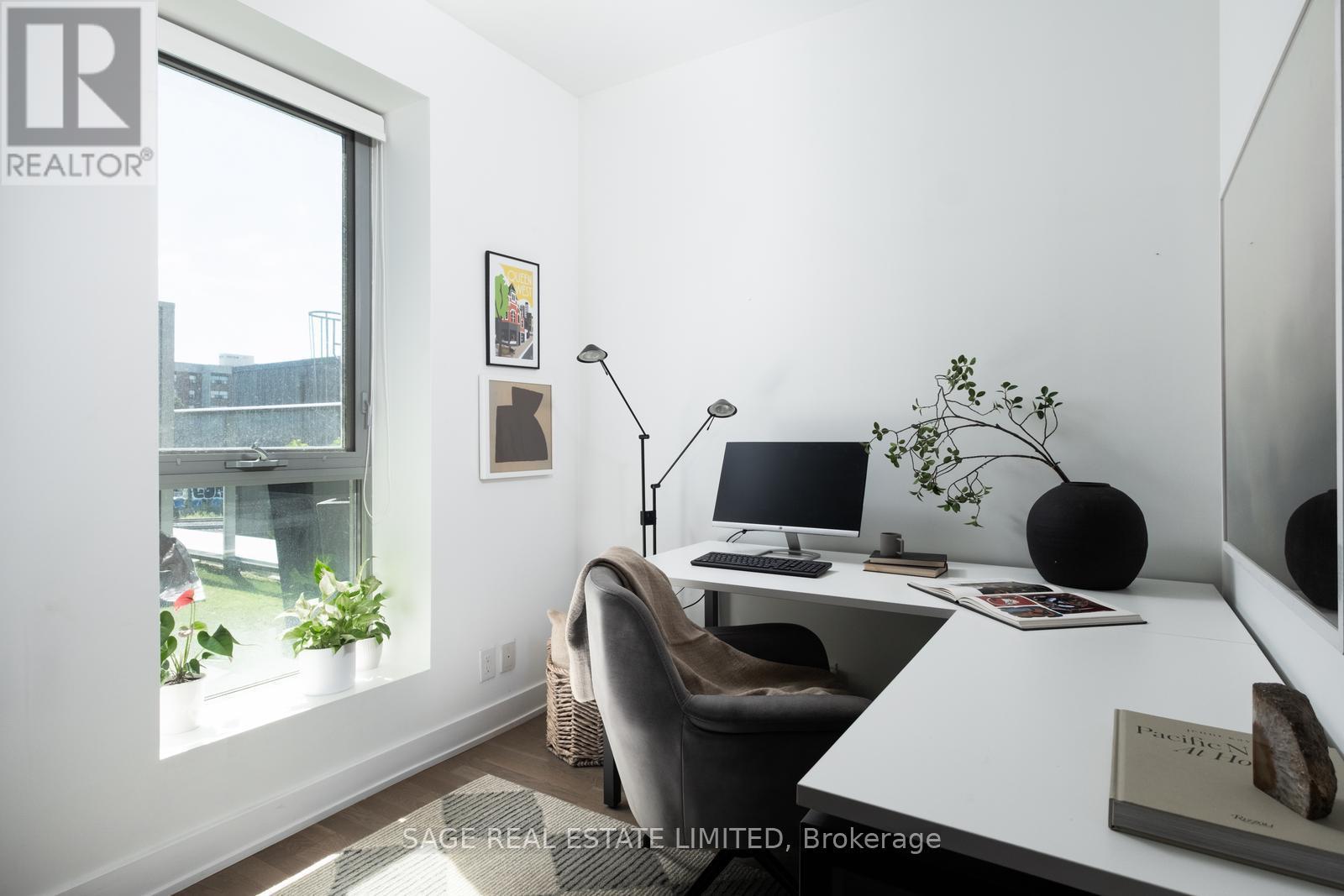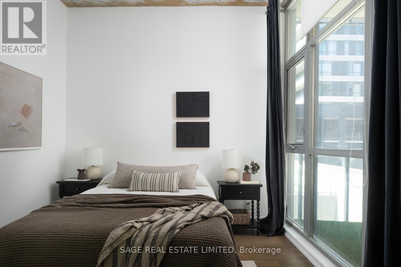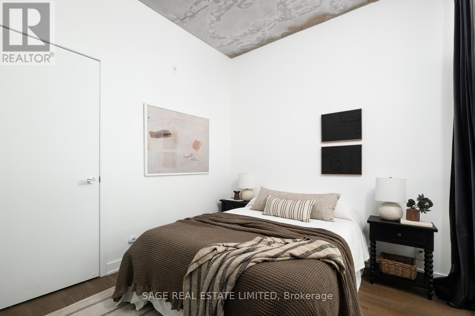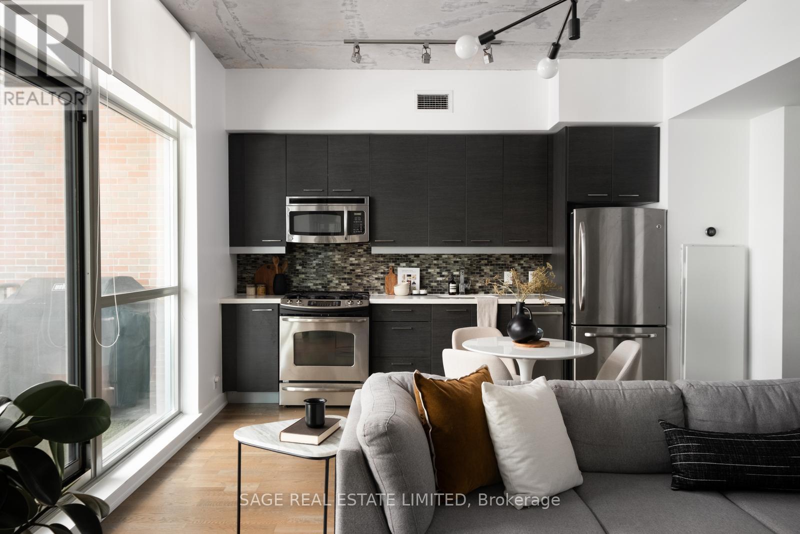 Welcome to loft living at its best in the heart of Queen West. This 2+1 bedroom, 2 bathroom suite at 2 Gladstone brings together industrial character, modern design, and everyday convenience--all in one of Toronto's trendiest neighbourhoods. Inside, soaring 9.5-foot exposed concrete ceilings and floor-to-ceiling windows create an open and airy feel. The kitchen is sleek and functional with full-size stainless steel appliances, a gas stove, and plenty of storage, flowing into the living and dining areas and out to a 184 sq ft balcony with a gas line for BBQs--rare in the city. The primary bedroom is a true retreat, with three closets, a 4-piece ensuite, and a walkout to a private 135 sq ft terrace where you can enjoy morning coffee or evening wine in complete privacy. The second bedroom is versatile, while the oversized den with custom built-ins offers the perfect work-from-home setup or additional guest space. The den has a large window, and is perfect for a nursery or home office. This boutique building offers unbeatable convenience, with two grocery stores just outside your door, and countless bars, cafes, eateries, and restaurants at your doorstep, including the Gladstone and Drake Hotels. Trinity Bellwoods Park is a 20-minute stroll away, the Queen Street streetcar is right outside, and the Gardiner Expressway is only minutes away by car. With underground parking, a locker, and a location that blends style, function, and city living, this is urban loft life--elevated. (id:51158)