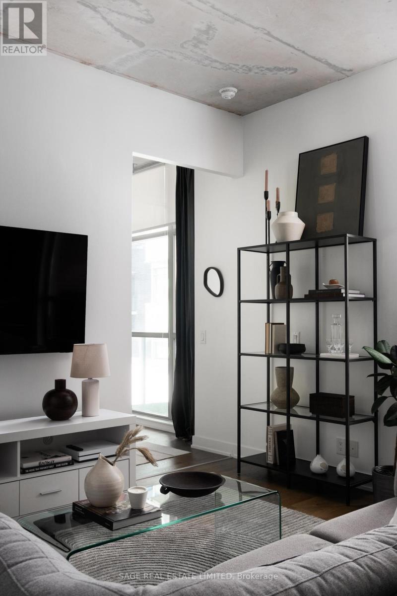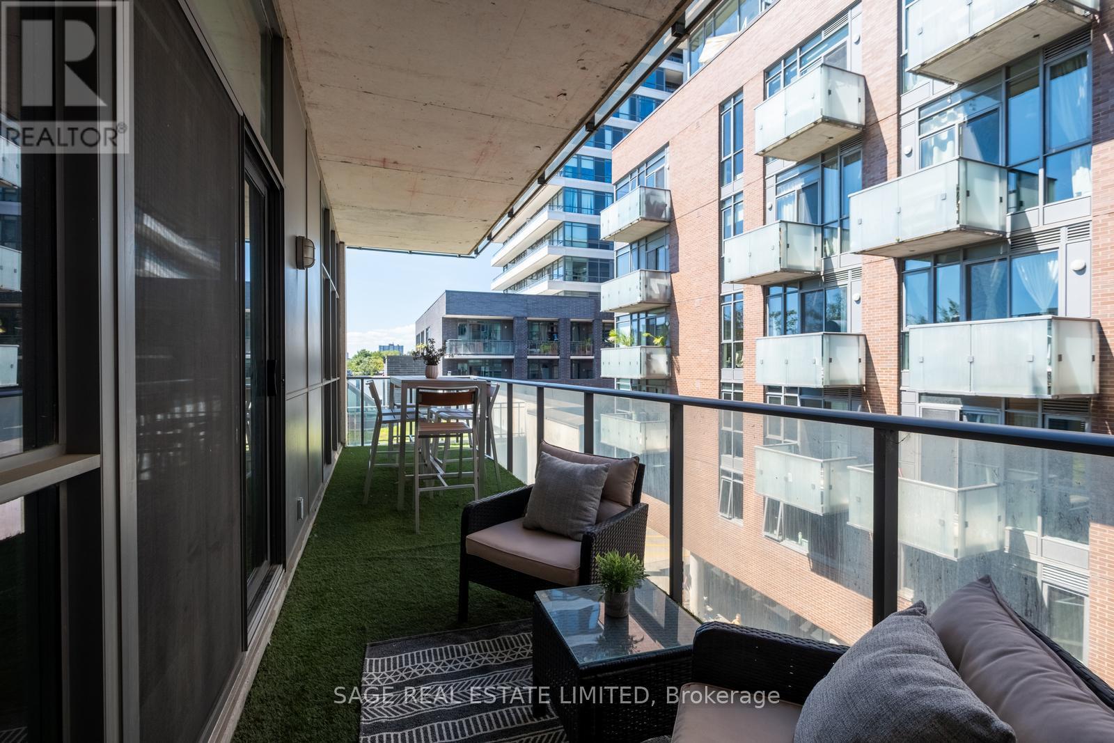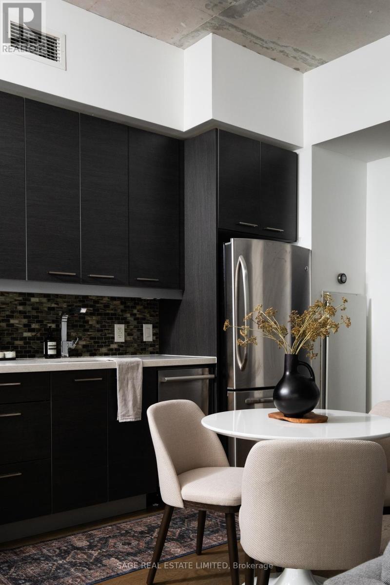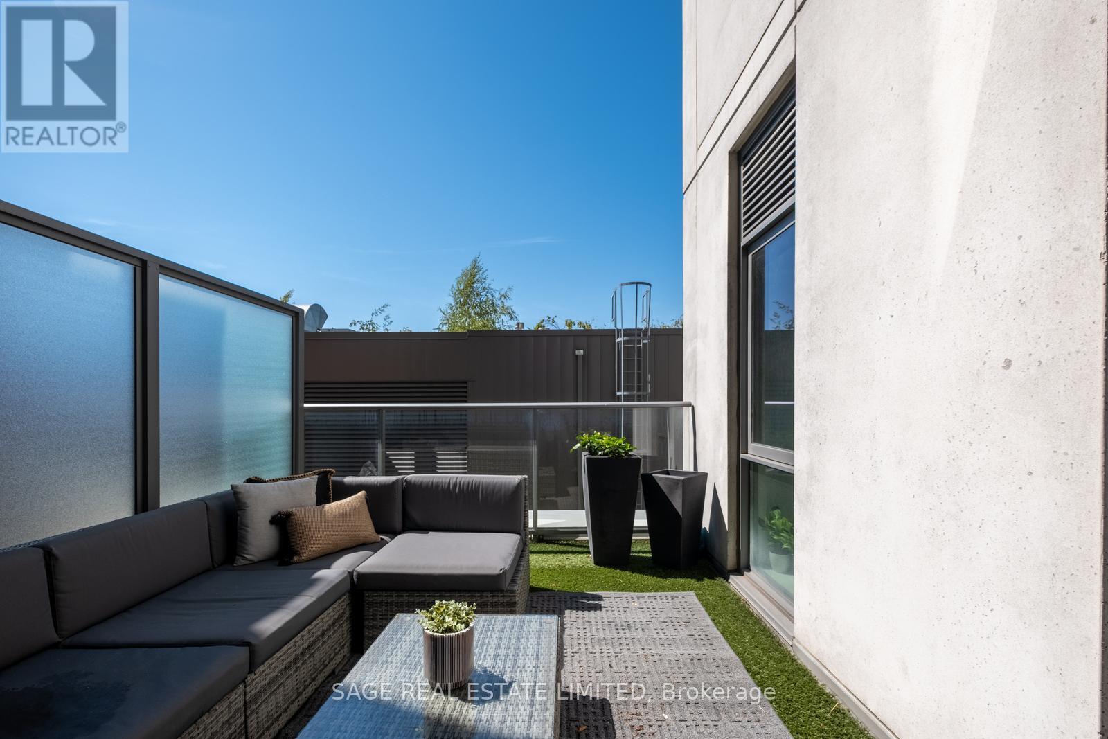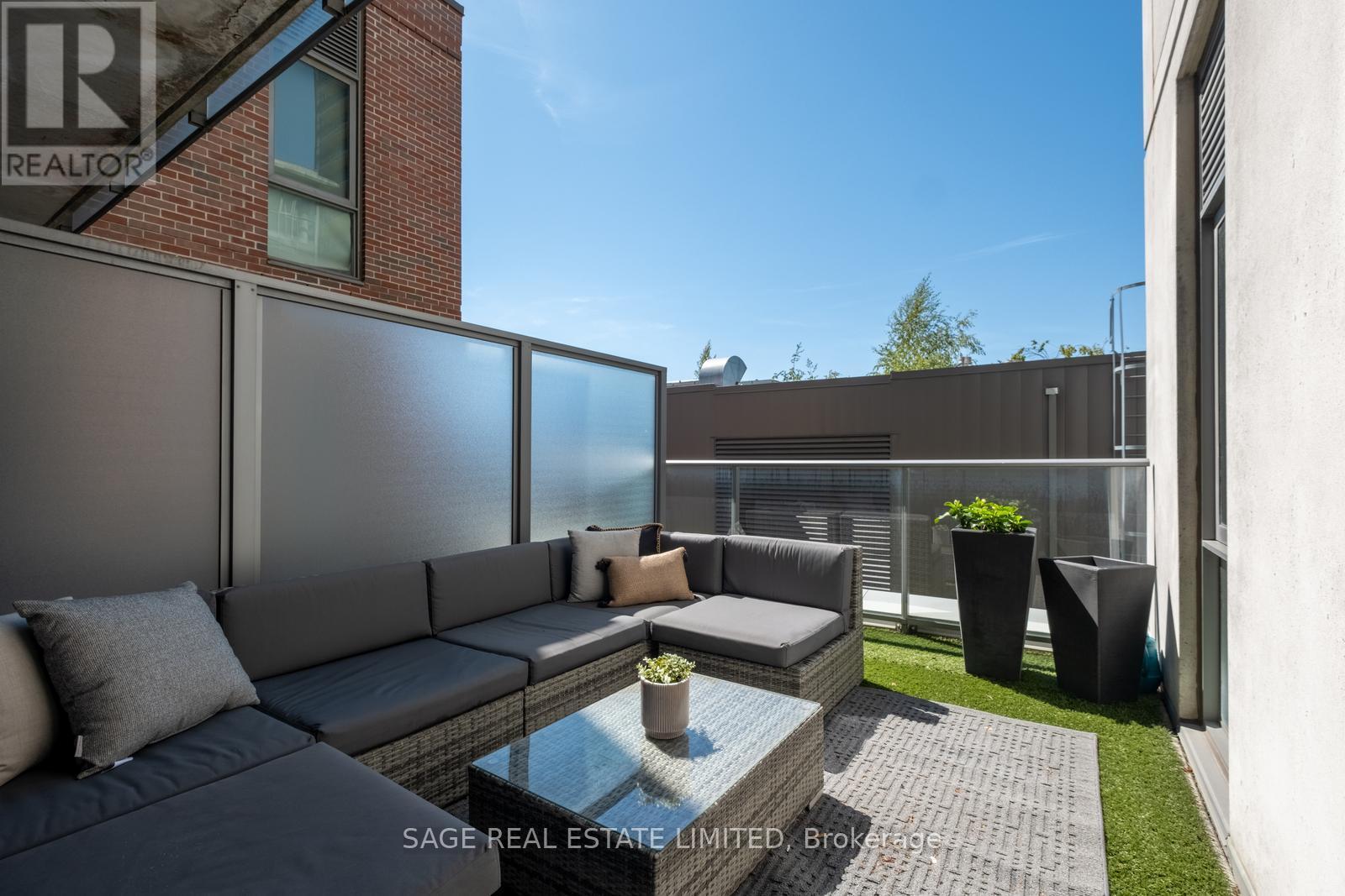 Welcome to loft living at its best in the heart of Queen West. This 2+1 bedroom, 2 bathroom suite at 2 Gladstone brings together industrial character, modern design, and everyday convenience--all in one of Toronto's trendiest neighbourhoods. Inside, soaring 9.5-foot exposed concrete ceilings and floor-to-ceiling windows create an open and airy feel. The kitchen is sleek and functional with full-size stainless steel appliances, a gas stove, and plenty of storage, flowing into the living and dining areas and out to a 184 sq ft balcony with a gas line for BBQs--rare in the city. The primary bedroom is a true retreat, with three closets, a 4-piece ensuite, and a walkout to a private 135 sq ft terrace where you can enjoy morning coffee or evening wine in complete privacy. The second bedroom is versatile, while the oversized den with custom built-ins offers the perfect work-from-home setup or additional guest space. The den has a large window, and is perfect for a nursery or home office. This boutique building offers unbeatable convenience, with two grocery stores just outside your door, and countless bars, cafes, eateries, and restaurants at your doorstep, including the Gladstone and Drake Hotels. Trinity Bellwoods Park is a 20-minute stroll away, the Queen Street streetcar is right outside, and the Gardiner Expressway is only minutes away by car. With underground parking, a locker, and a location that blends style, function, and city living, this is urban loft life--elevated. (id:51158)
