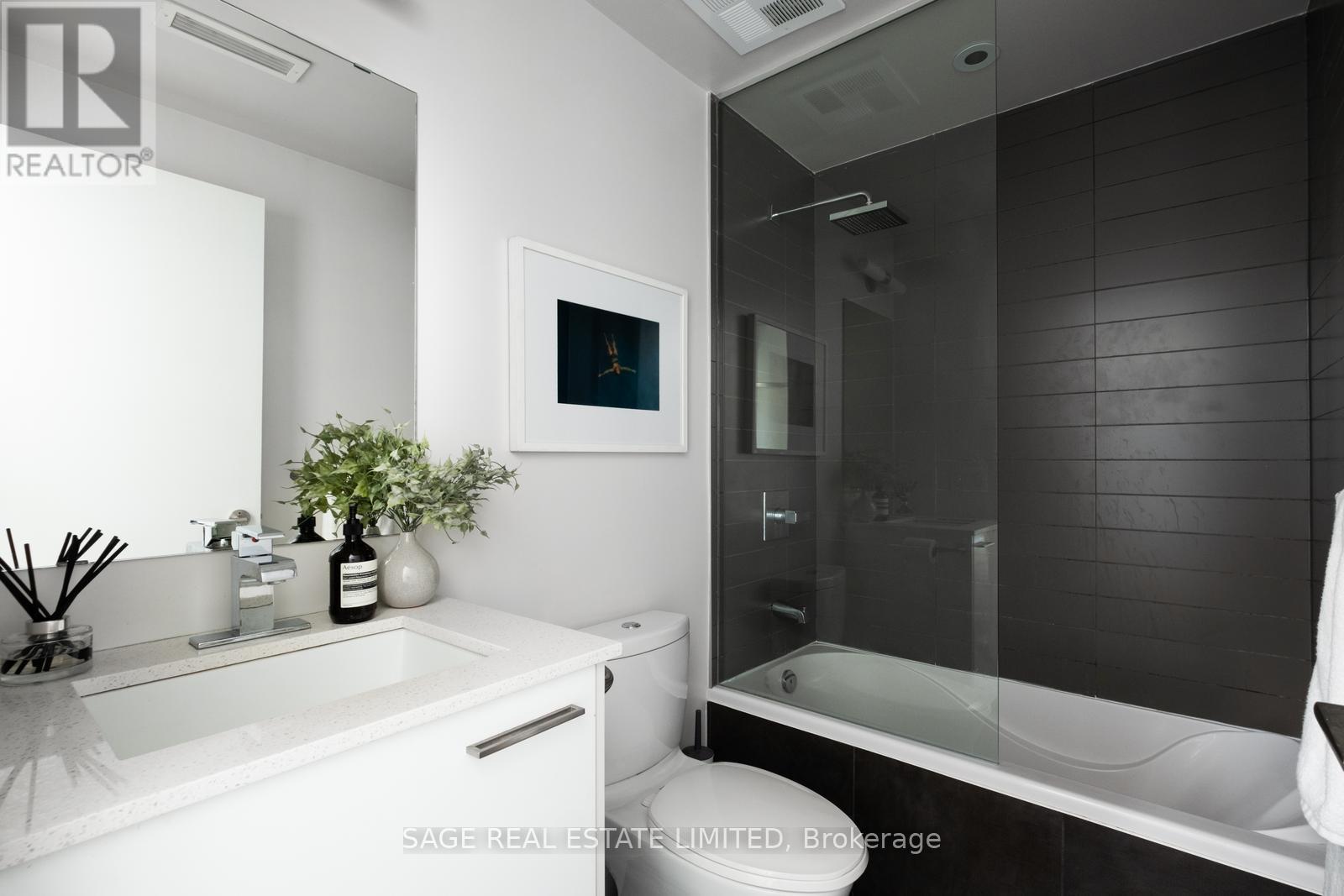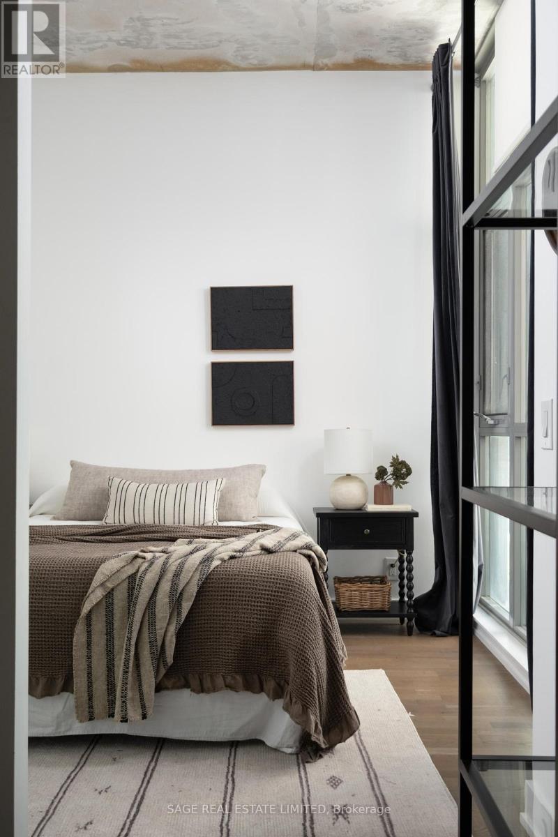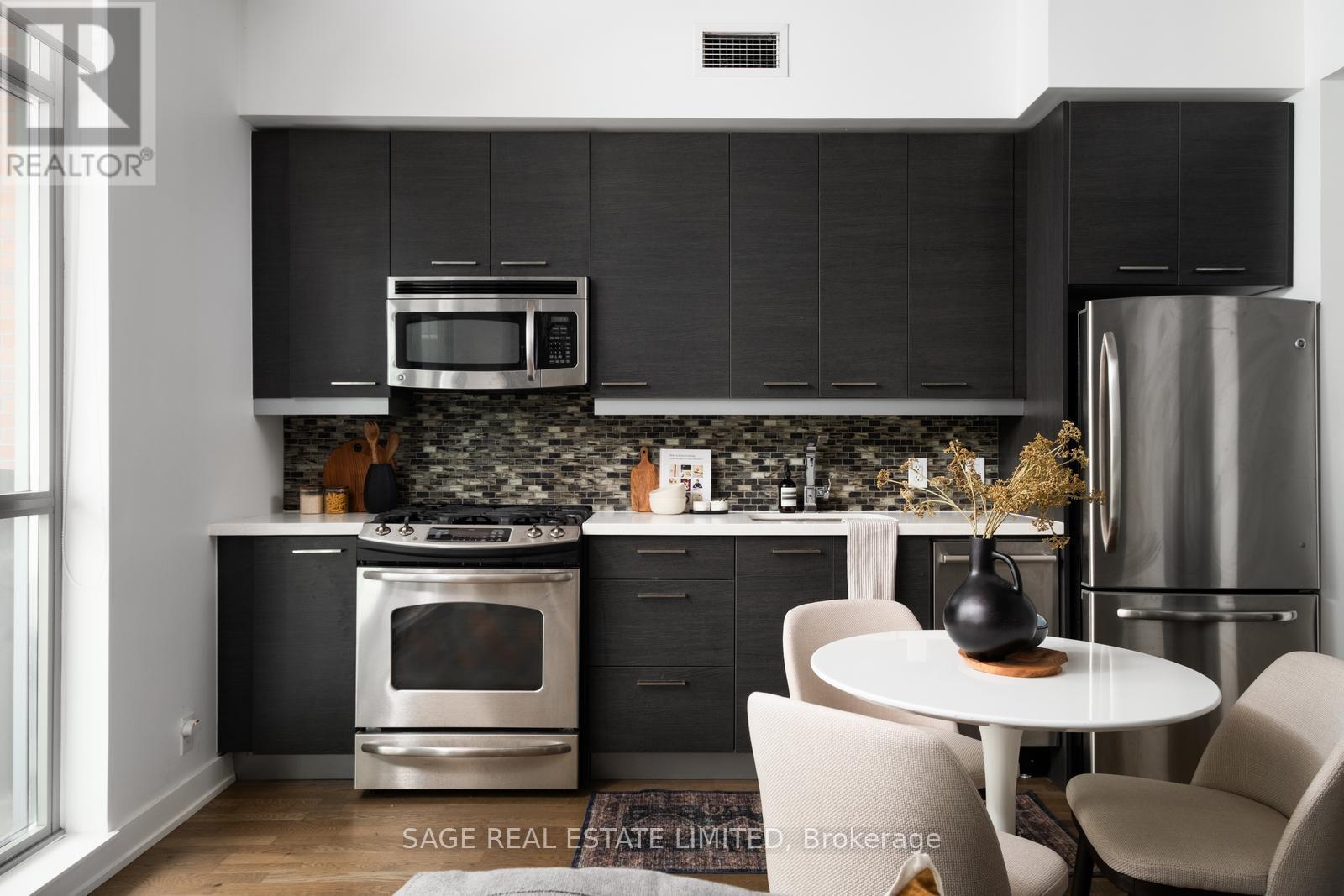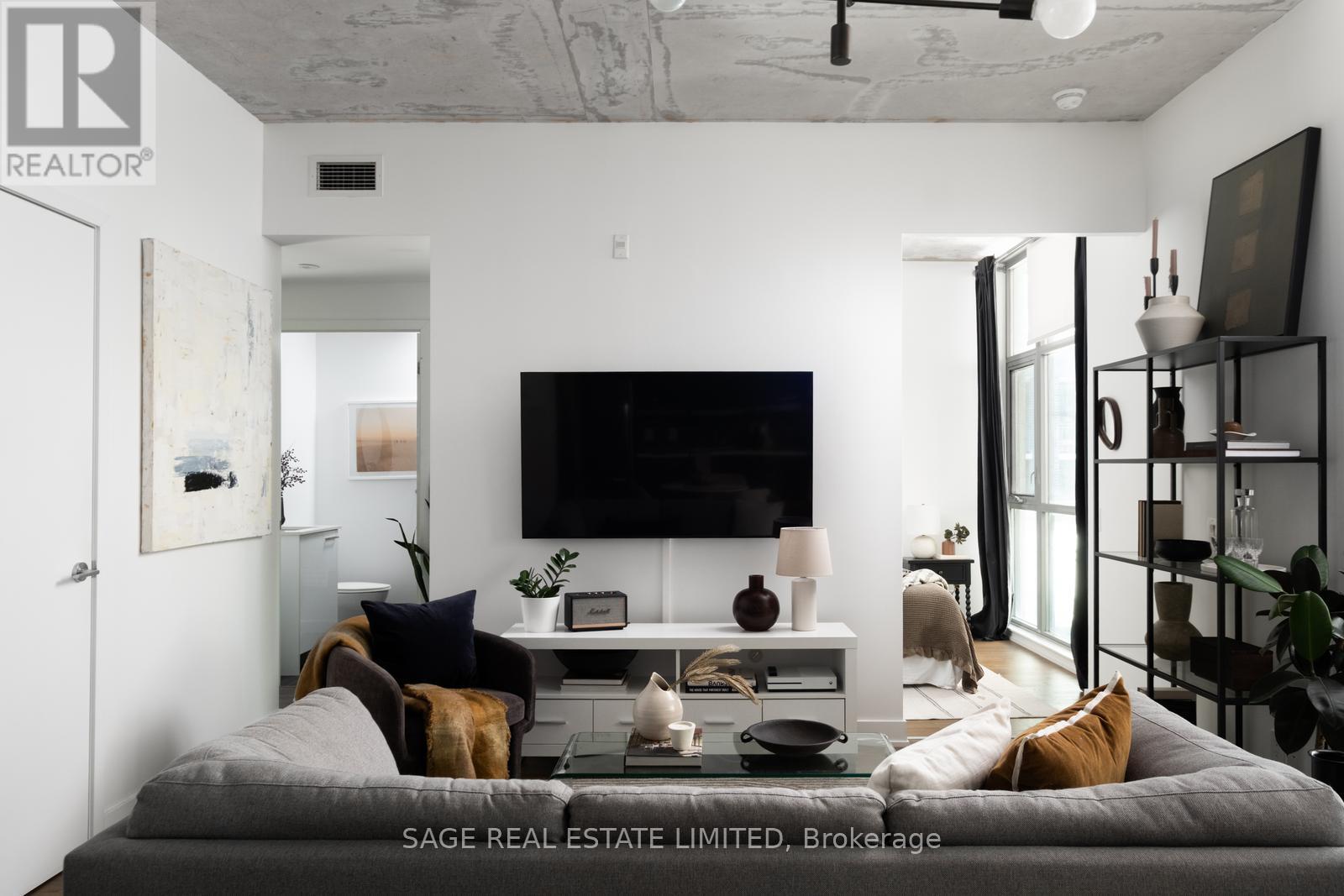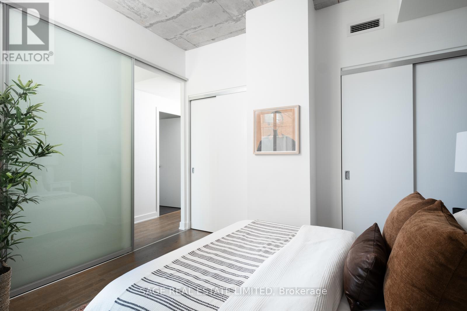 Welcome to loft living at its best in the heart of Queen West. This 2+1 bedroom, 2 bathroom suite at 2 Gladstone brings together industrial character, modern design, and everyday convenience--all in one of Toronto's trendiest neighbourhoods. Inside, soaring 9.5-foot exposed concrete ceilings and floor-to-ceiling windows create an open and airy feel. The kitchen is sleek and functional with full-size stainless steel appliances, a gas stove, and plenty of storage, flowing into the living and dining areas and out to a 184 sq ft balcony with a gas line for BBQs--rare in the city. The primary bedroom is a true retreat, with three closets, a 4-piece ensuite, and a walkout to a private 135 sq ft terrace where you can enjoy morning coffee or evening wine in complete privacy. The second bedroom is versatile, while the oversized den with custom built-ins offers the perfect work-from-home setup or additional guest space. The den has a large window, and is perfect for a nursery or home office. This boutique building offers unbeatable convenience, with two grocery stores just outside your door, and countless bars, cafes, eateries, and restaurants at your doorstep, including the Gladstone and Drake Hotels. Trinity Bellwoods Park is a 20-minute stroll away, the Queen Street streetcar is right outside, and the Gardiner Expressway is only minutes away by car. With underground parking, a locker, and a location that blends style, function, and city living, this is urban loft life--elevated. (id:51158)