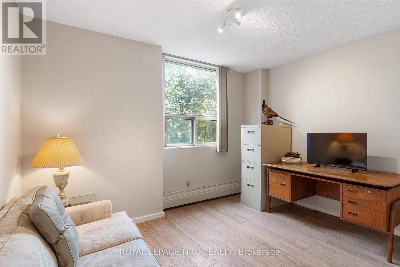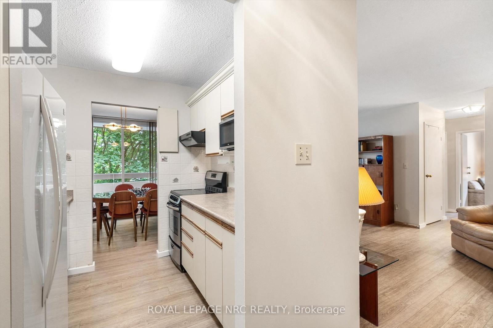 $652.55 MonthlyVACANT & AVAILABLE FOR QUICK POSSESSION. 3 MONTHS CONDO FEES INCLUDED. CORNER END UNIT WITH A VIEW! This spacious 2 bedroom condo has an amazing view of a mature treed landscape. Enjoy the private 20'x4'9" balcony. Inside you will discover 2 large bedrooms, one with a walk in closet, updated 4 piece bathroom, a galley style kitchen with dishwasher & a L-shaped living/dining room. The floors have been updated with an attractive, stylish laminate flooring. Meet new friends while using the common areas of this desirable yet affordable complex. Common areas include the laundry room, community room, bike room, 2 elevators etc. Monthly condo fees include: gas, heat, parking, water, exterior building insurance and more. The Parklands have long been the choice for people who desire a clean, well managed yet affordably priced condo unit. Close to numerous amenities such as: Fairview mall, groceries, fashion etc., highway access, bus route, Kiwanis Aquatics and Community Centre etc. (id:51158)