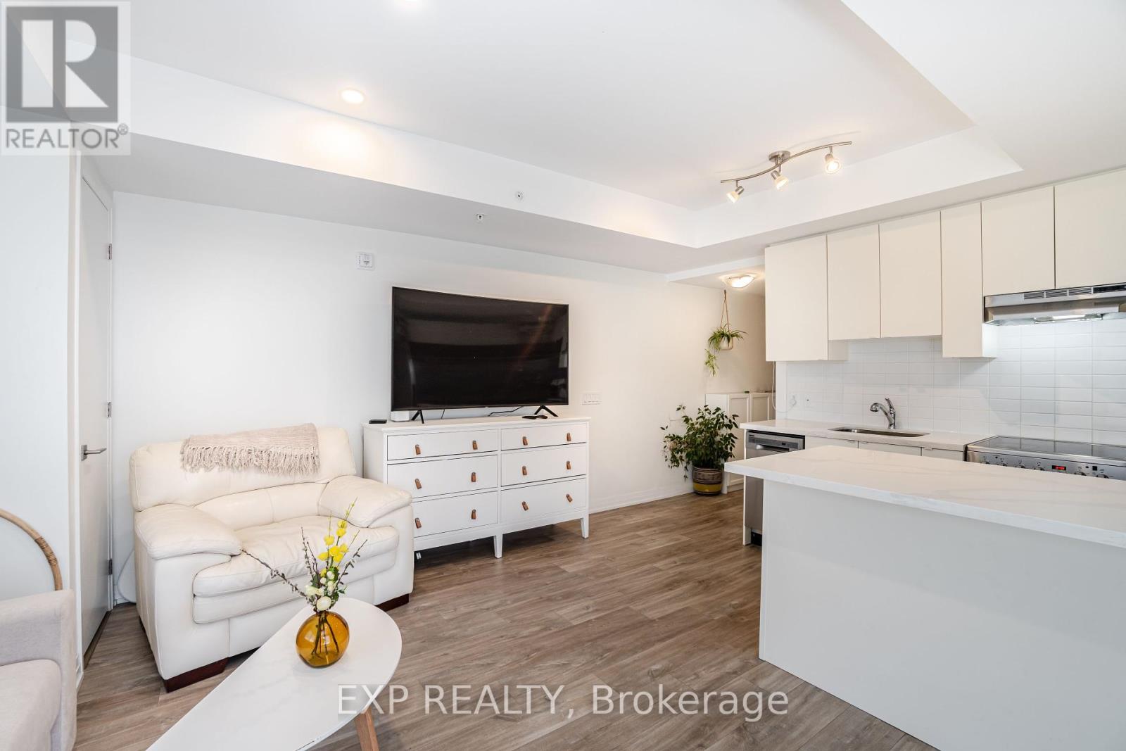 Welcome to 408 Browns Line, an exceptional one-bedroom, one-bath residence in a boutique building that offers contemporary elegance in the heart of South Etobicoke. With approximately 701 square feet of thoughtfully designed living space, this one-year-old suite is the perfect blend of style, comfort, and convenience.From the moment you enter, the home impresses with its unique, oversized entry hallway a rare feature in condo living offering abundant storage and a sense of openness. The living and dining areas are adorned with sleek laminate flooring, flowing seamlessly to a modern kitchen with stainless steel appliances, quartz countertops, breakfast bar, and a versatile movable island. A designer backsplash adds a touch of sophistication, while the upgraded bathroom continues the quartz finishes for a consistent, elevated feel.Step onto your private balcony and enjoy beautiful views of the city, including the iconic CN Tower. Perfect for morning coffee or evening relaxation, this outdoor space enhances the lifestyle appeal of the home.Residents will appreciate the unbeatable location, just steps to TTC, GO Station, community centers, and the vibrant amenities of South Etobicoke. Excellent schools, parks, and recreation are within walking distance, including Sir Adam Beck Park and Alderwood Centre. Whether commuting downtown or enjoying local conveniences, this property balances urban accessibility with neighborhood charm.Ideal for professionals, downsizers, or investors, this boutique suite delivers modern finishes, panoramic views, and a strategic location in one of Torontos most connected neighborhoods. (id:51158)