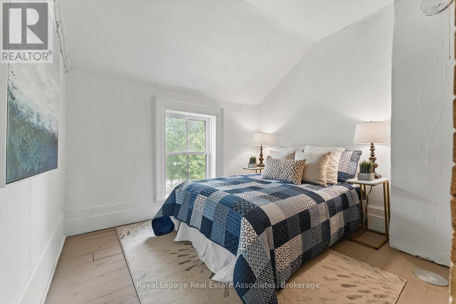 Built circa 1840, this wonderful heritage detached home is your chance to own an intriguing part of history! Known as the Forbes House, this home is an excellent example of Georgian style, characterized by symmetry, a centered front entrance and evenly spaced windows. Inside we find high ceilings, custom wooden spindles and railings, high baseboards and wainscotting accents. Upstairs this home features 2 bedrooms PLUS a Den PLUS a bonus sitting room just off the Primary - easy to convert to a 3rd bedroom! Enjoy the quiet pace of small-town living, classic local architecture, old growth trees, multiple parks and beautiful walking trails. Situated just east of Georgetown and just a few km north of the 401 and 407, you've got access to everything available for modern comforts and lifestyle including schools, a theatre, a library, shopping, dining, recreational facilities and more. Mere steps to the GO bus travelling west to Georgetown and beyond and east to Brampton and Toronto or drive a quick 10 minutes to Mount Pleasant GO. And with modern updates including a newer roof, newer forced air gas heating system, updated copper wiring with a large breaker panel and a sump pit and pump, you can focus on making this house your own! The large property is 160 feet deep on the south side with a wide frontage and over 1/5 of an acre of land so there's lots of space for gardening, family gatherings and active kids. Zoned Hamlet Residential, the home can be used as a residence or you can explore one of many other possible uses such as a charming bed & breakfast, daycare, cottage industry, group home and more. Yes, you can afford a detached house! Come and experience this lovely home and incredibly peaceful neighbourhood and make this your next home! (id:51158)