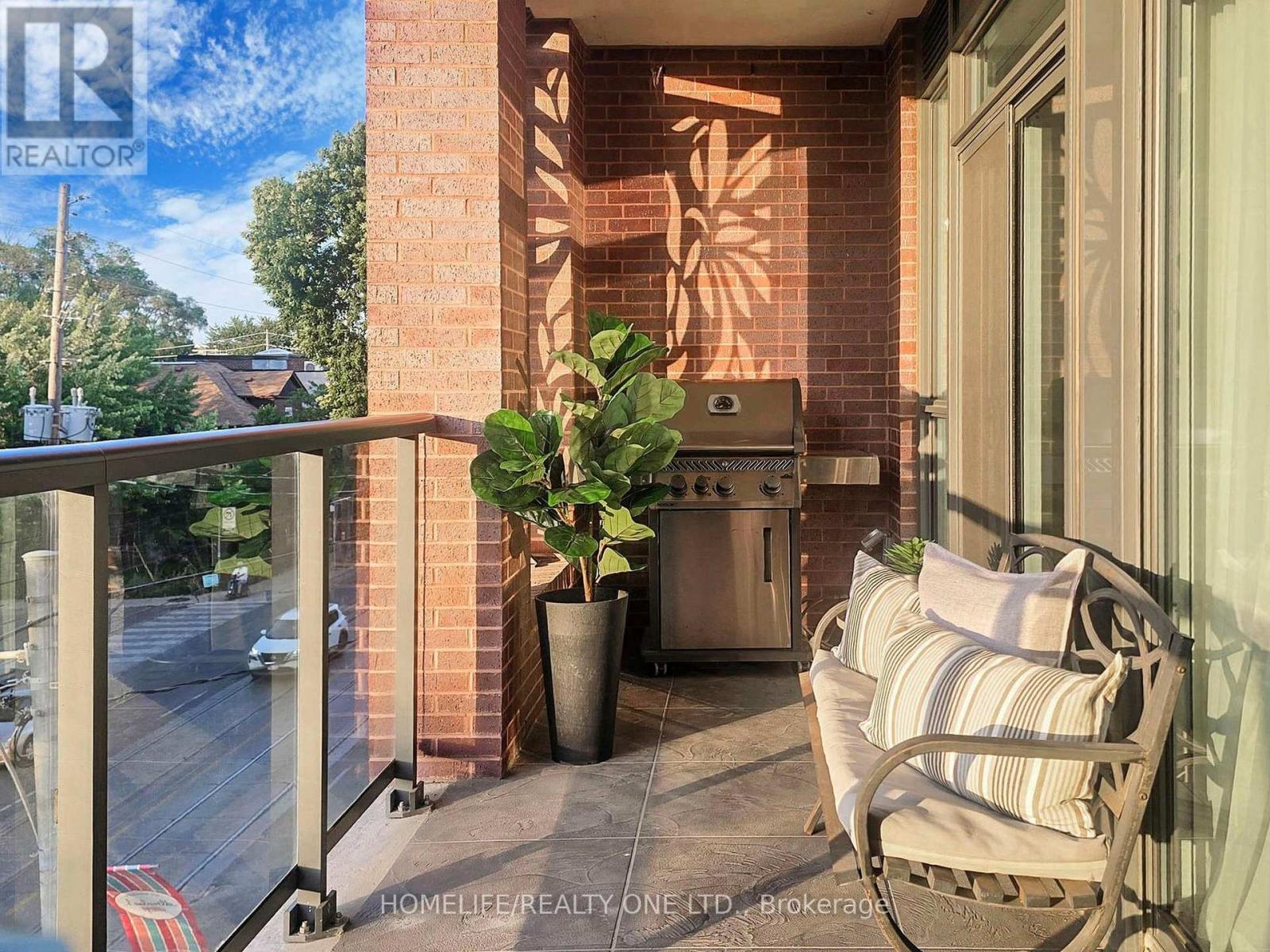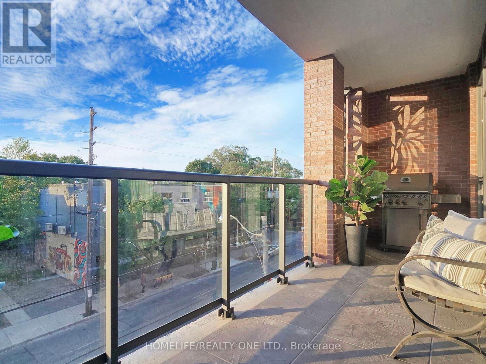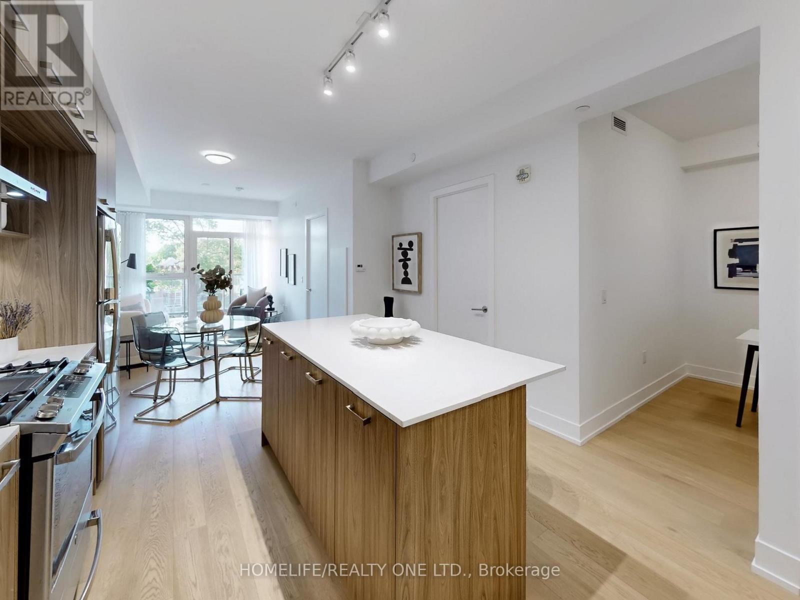 Discover A Rare Gem Nestle Within a Boutique George Residence, Right In The Heart of Leslieville. This Executive 1 + 1 Suite Epitomizes Urban Chic Lifestyle. You Will Love the Mix Of Style, Function, Comfort & A Thoughtfully Designed Floor Plan That Offers Specious Room, Timeless Quality Finishes, Floor-to-Ceiling Windows, High Ceilings & Ample Storage Throughout. Spanning approximately 700 sq. ft. Of Living Space With Two Walk-Outs Leading To Over 100 sq. ft. Private Urban Yard Fitted W/Full Size Gas BBQ. Stunning Principal Room Will Impress You With Spacious Uninterrupted Flow & Show Stopper Grand Kitchen Ideal For Entertaining - The Oversized Centre Island, Breakfast Bar, Quartz Counters & Backsplash, Soft Closing Euro-Style Cabinetry with Extended 8-Ft Upper Cabinets, 4 Burner Gas Range Make It Both Functional & Stylish. Spacious Primary Retreat Is Fitted With 3-Piece Semi-Ensuite That Features Wall-to-Wall Shower, Two Double Closets & Walk-out To Balcony. Versatile Separate Room Den Is Perfectly Suited For Home Office Or Guest Room. Entrance Foyer Includes a Large Double Closet For Convenient Storage. Engineered Hardwood Floors Flow Throughout. Suite Is Equipped With Front Load Ensuite Laundry. A Locker For Additional Storage Is Included. This Premium Building Offers Fantastic Amenities Such As A Gorgeous Outdoor Terrace Fitted w/Lounge, Kitchen, BBQs, Fire Pit & Fitness Area, Party Room, Gym, Concierge, Dog Wash Station & Visitors Parking. Conveniently Situated with All Amenities At Your Doorstep, Walk, Bike & Pet Friendly Community. This Is An Exceptional Opportunity To Embrace The Vibrant Lifestyle of Leslieville & Beaches Without Maintaining A House. (id:51158)