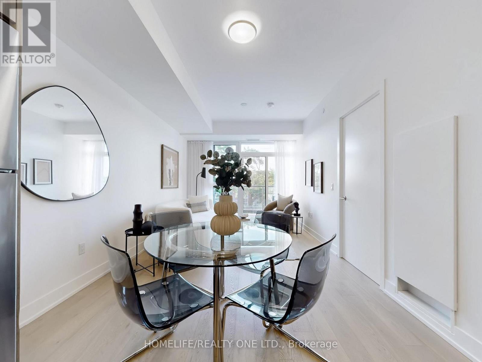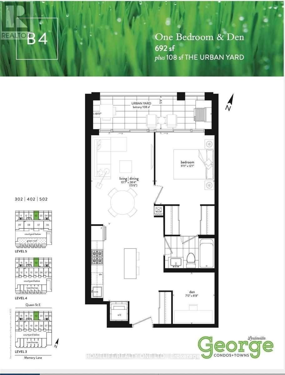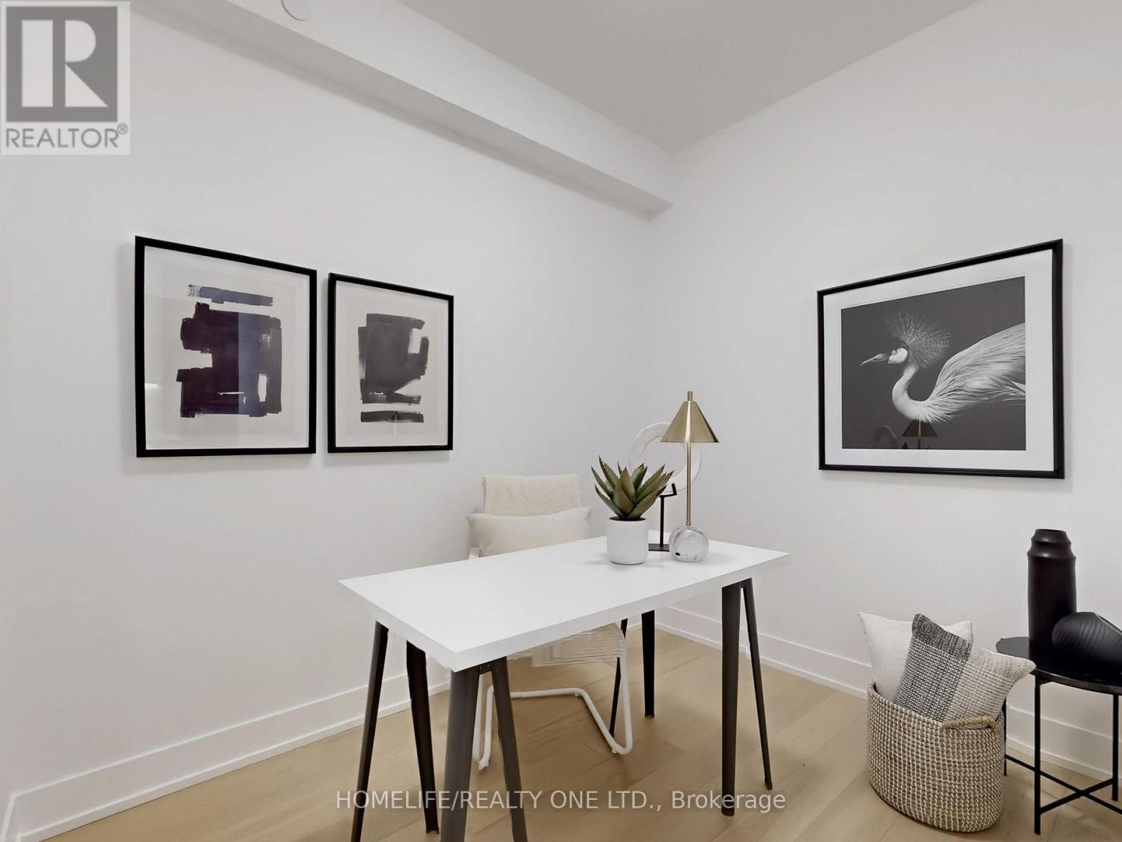 Discover A Rare Gem Nestle Within a Boutique George Residence, Right In The Heart of Leslieville. This Executive 1 + 1 Suite Epitomizes Urban Chic Lifestyle. You Will Love the Mix Of Style, Function, Comfort & A Thoughtfully Designed Floor Plan That Offers Specious Room, Timeless Quality Finishes, Floor-to-Ceiling Windows, High Ceilings & Ample Storage Throughout. Spanning approximately 700 sq. ft. Of Living Space With Two Walk-Outs Leading To Over 100 sq. ft. Private Urban Yard Fitted W/Full Size Gas BBQ. Stunning Principal Room Will Impress You With Spacious Uninterrupted Flow & Show Stopper Grand Kitchen Ideal For Entertaining - The Oversized Centre Island, Breakfast Bar, Quartz Counters & Backsplash, Soft Closing Euro-Style Cabinetry with Extended 8-Ft Upper Cabinets, 4 Burner Gas Range Make It Both Functional & Stylish. Spacious Primary Retreat Is Fitted With 3-Piece Semi-Ensuite That Features Wall-to-Wall Shower, Two Double Closets & Walk-out To Balcony. Versatile Separate Room Den Is Perfectly Suited For Home Office Or Guest Room. Entrance Foyer Includes a Large Double Closet For Convenient Storage. Engineered Hardwood Floors Flow Throughout. Suite Is Equipped With Front Load Ensuite Laundry. A Locker For Additional Storage Is Included. This Premium Building Offers Fantastic Amenities Such As A Gorgeous Outdoor Terrace Fitted w/Lounge, Kitchen, BBQs, Fire Pit & Fitness Area, Party Room, Gym, Concierge, Dog Wash Station & Visitors Parking. Conveniently Situated with All Amenities At Your Doorstep, Walk, Bike & Pet Friendly Community. This Is An Exceptional Opportunity To Embrace The Vibrant Lifestyle of Leslieville & Beaches Without Maintaining A House. (id:51158)