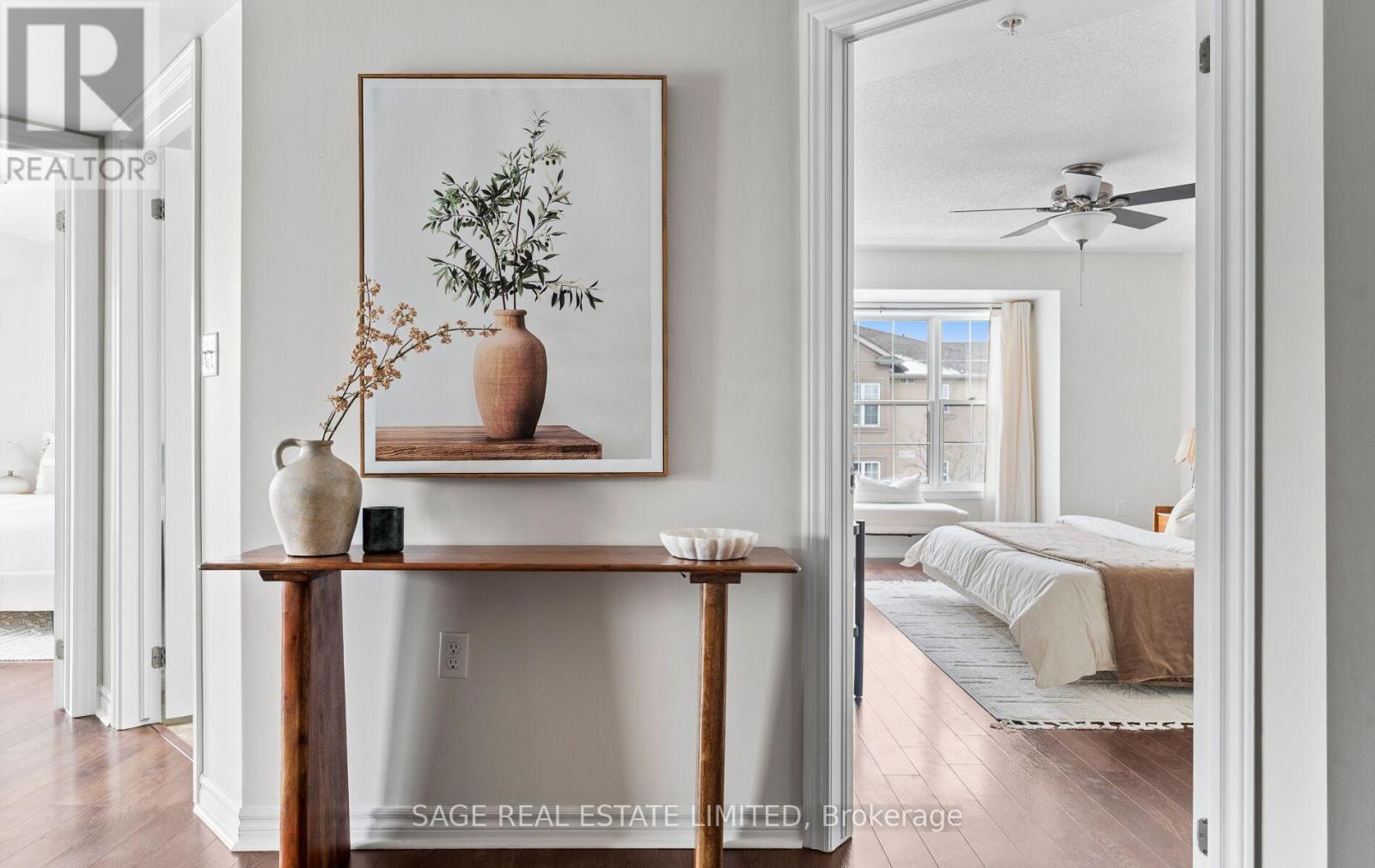 Top Floor. Turn Key. Totally Perfect. A spacious corner unit with everything you actually want. This 1,013 sq ft condo is not your standard cookie-cutter layout. Cathedral ceilings and a generous living room with a cozy gas fireplace allow space for both the sectional of your dreams and a defined dining area, creating a space where you actually want to hang out. The flow is effortless, offering room to live, work, and play without ever feeling cramped. The bright, practical kitchen features full-sized appliances, ample cabinetry, and a walk-out to the balcony. The west-facing primary bedroom is a peaceful retreat with space for a king-sized bed, generous closet storage, and a 4-piece ensuite. A well-sized second bedroom with double windows offers flexibility for guests, a home office, or creative space, serviced by a 3-piece second bathroom ideal for visitors and everyday convenience. A defined foyer with hall closet provides a welcoming arrival and keeps daily essentials neatly tucked away.Located minutes from Milton GO Station and Highway 401, commuting and weekend escapes are seamless while still enjoying a comfortable residential setting. Shops, groceries, coffee spots, Milton Crossroads, and Sinclair Park are all within easy reach. This condo truly feels like ahouse, not a box, and is vacant, turn-key, and ready for its next owners! The unit includes two parking spaces - one prime underground spot conveniently located by the elevator and one above-ground space - plus an easily accessible locker, making everyday living that much simpler. (id:51158)