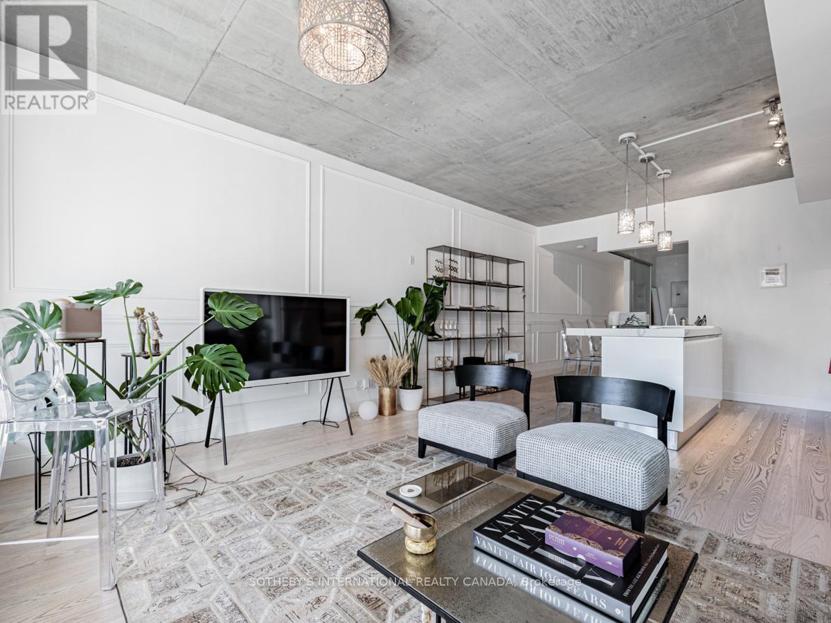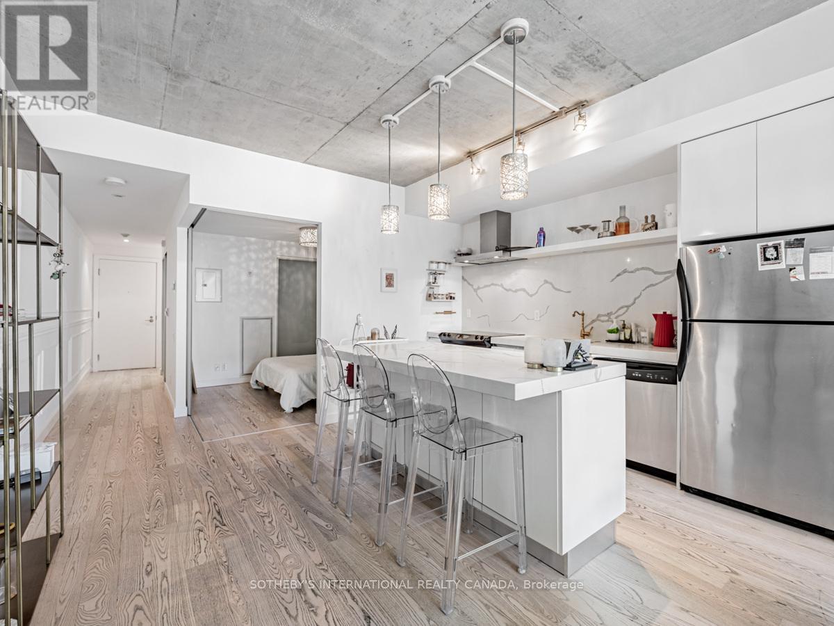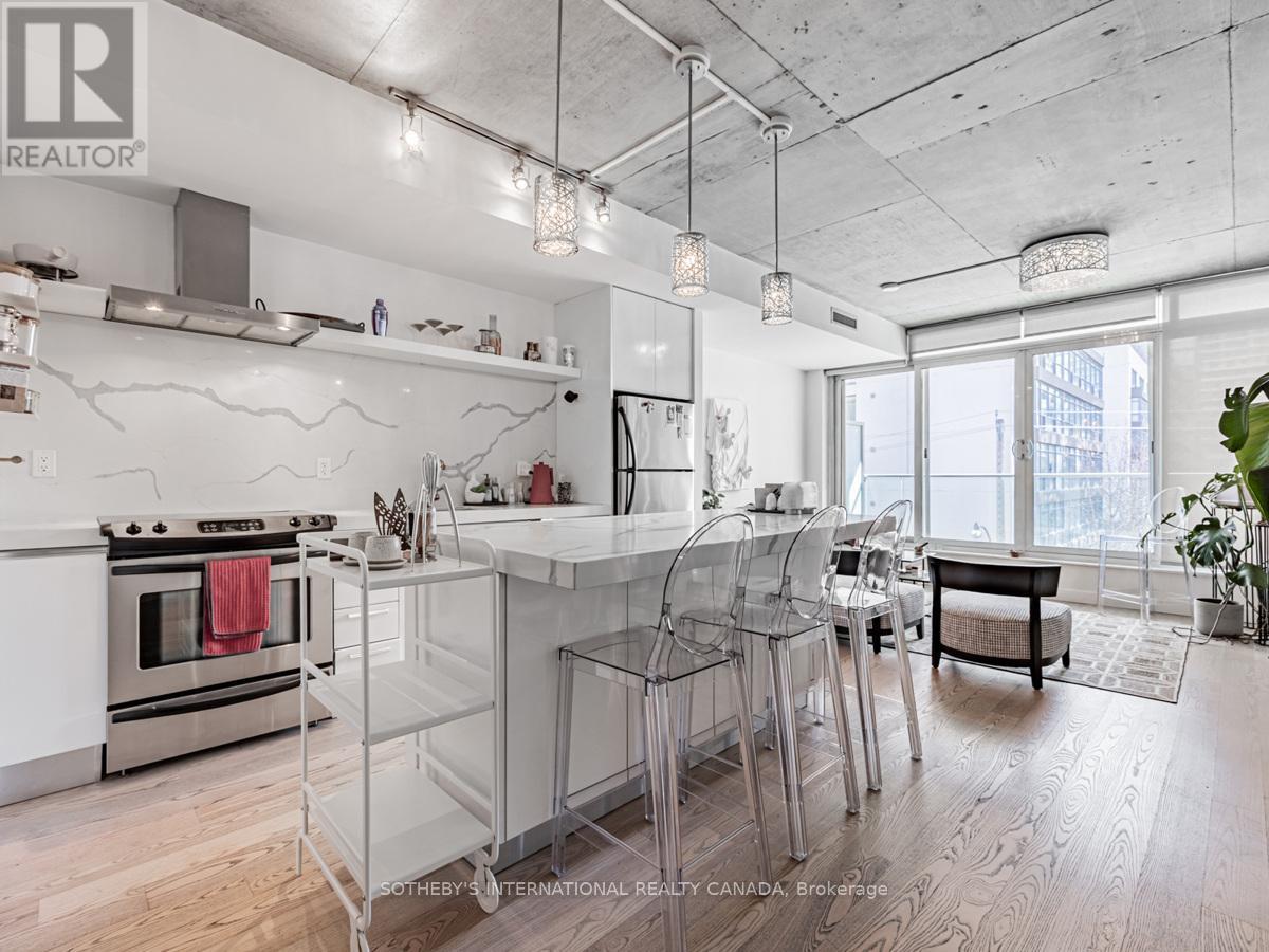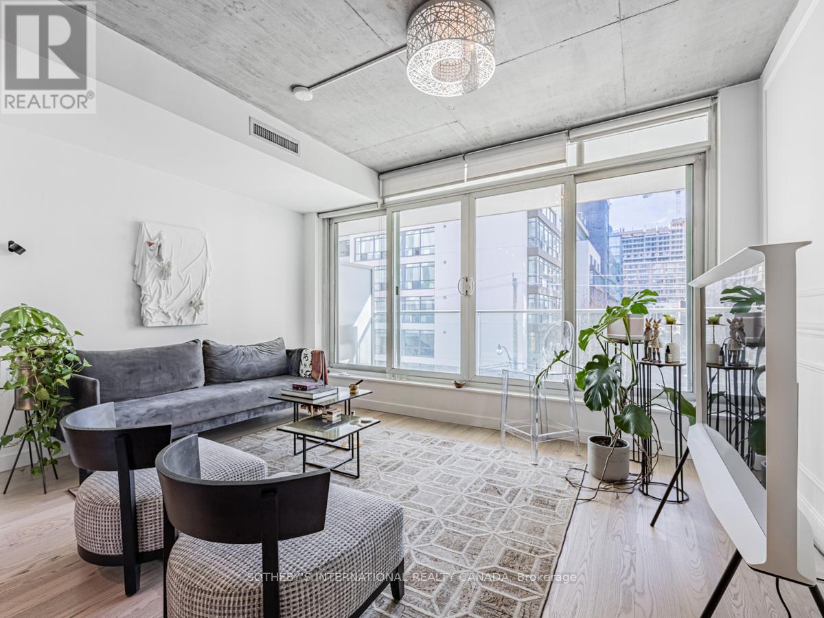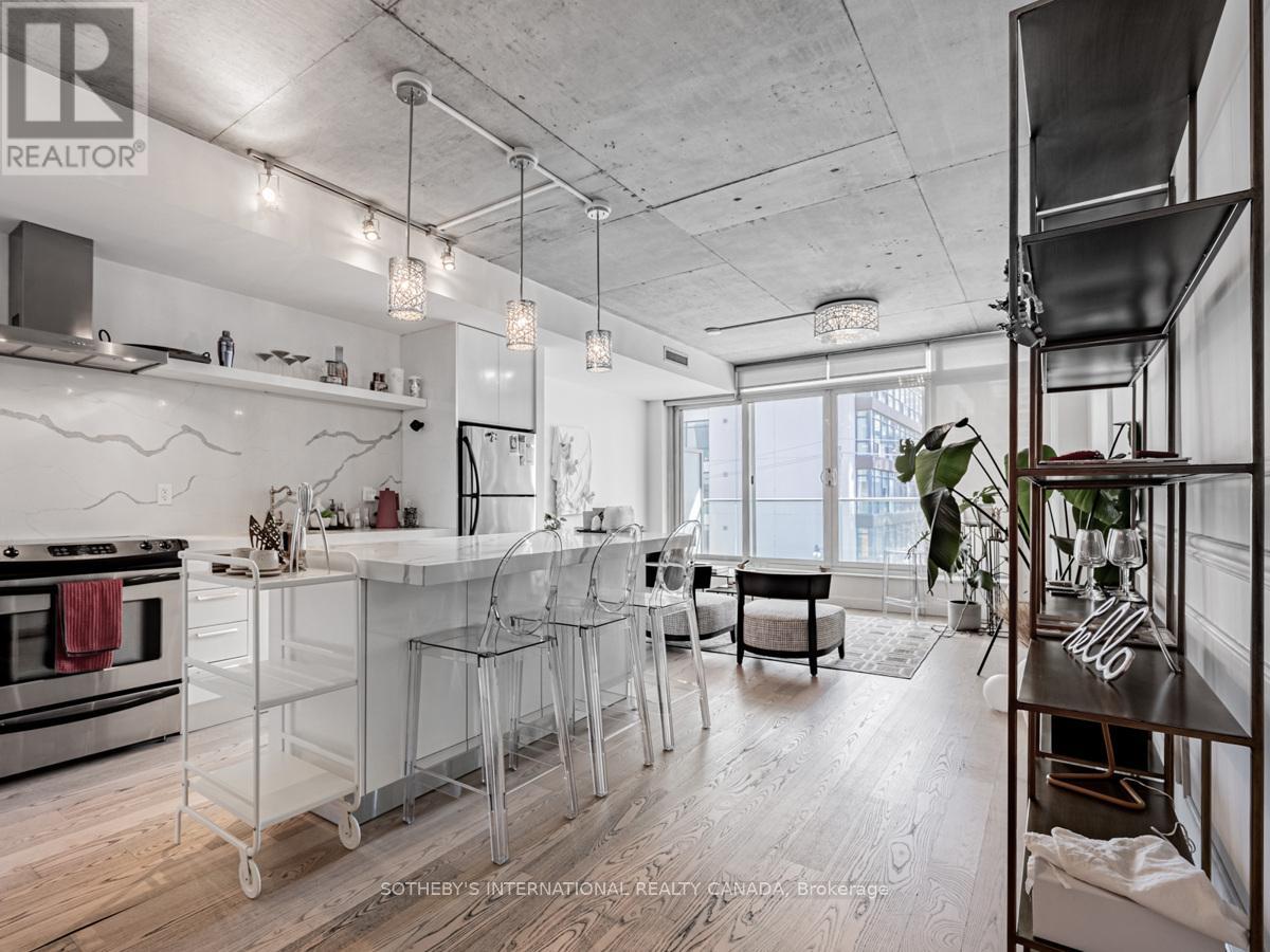 Experience luxury urban living at the highly coveted 75 Portland, where sophisticated design meets vibrant city life. This expansive loft, ideally located in the heart of King West Village, offers an unparalleled lifestyle surrounded by a wealth of neighborhood amenities. Perfectly upgraded and tailored for those who appreciate refined living, this space is flooded with natural light. Boasting approximately 650 sqft of thoughtfully designed interiors, plus a spacious balcony, the open-concept layout is enhanced by sleek, modern finishes. Perfectly Situated And Within Walking Distance Of Public Transit, Great Restaurants, Fitness Studios, Parks, And All Sought-After Conveniences. *Partially furnished* as seen in photos. The bed &couch are excluded. Landlord open to a 6-month lease. (id:51158)