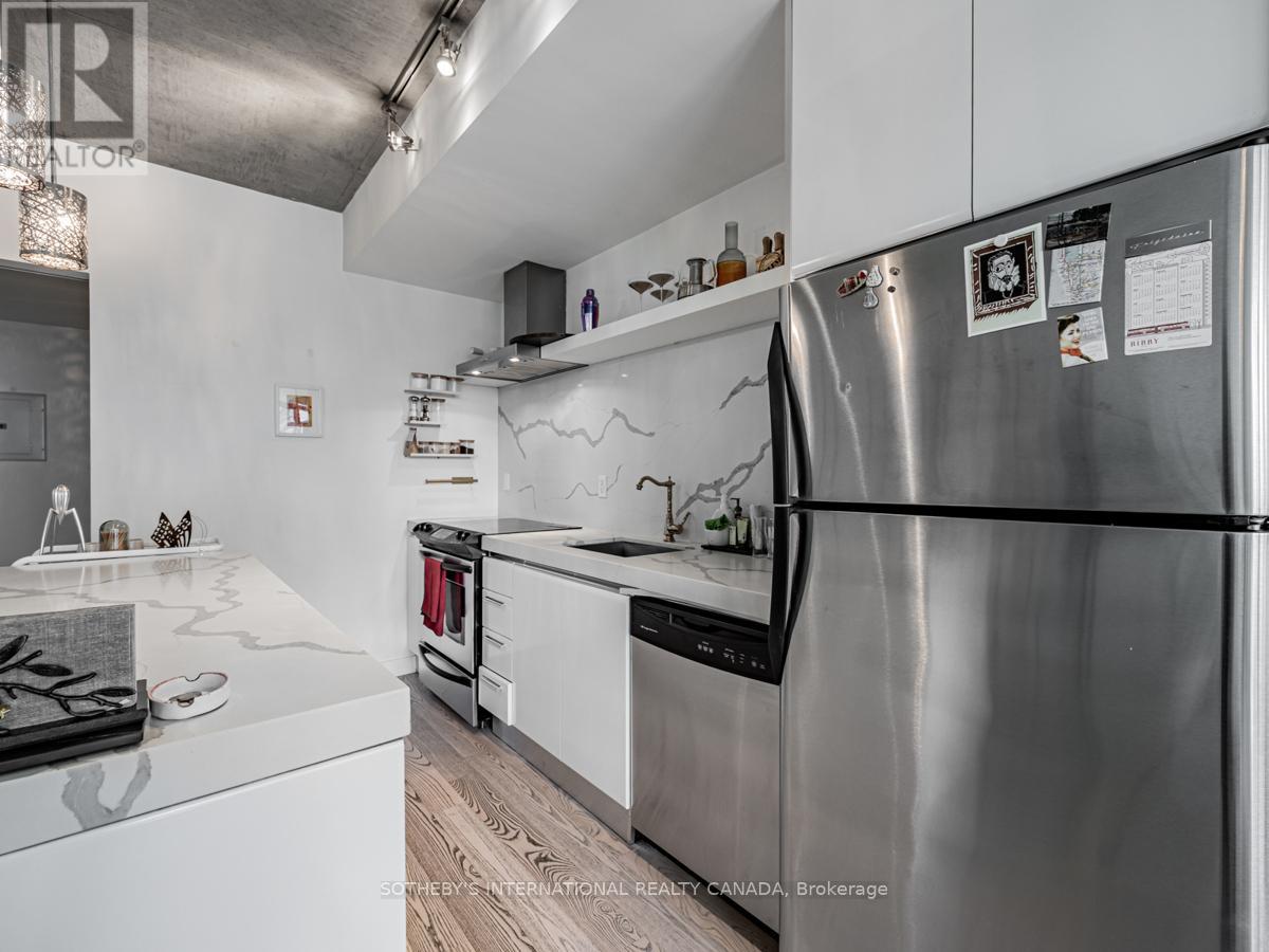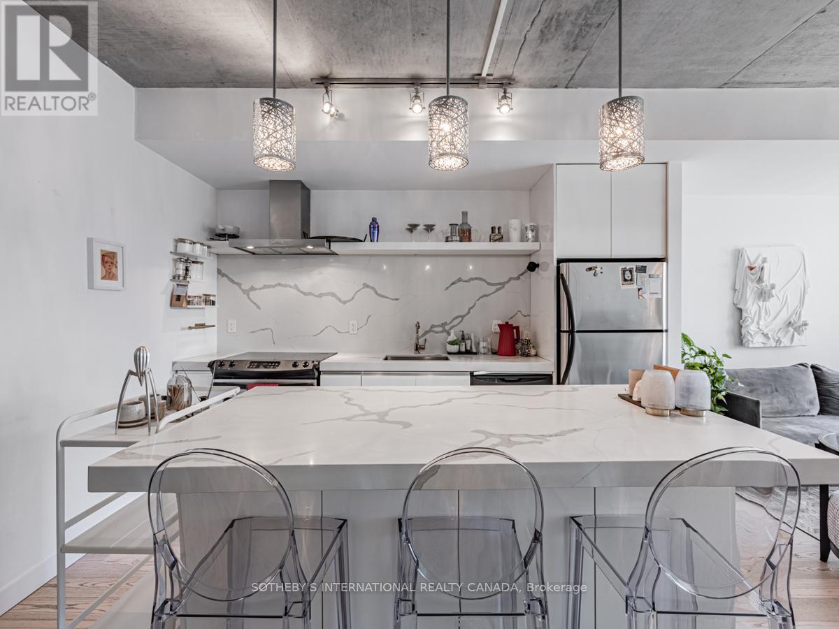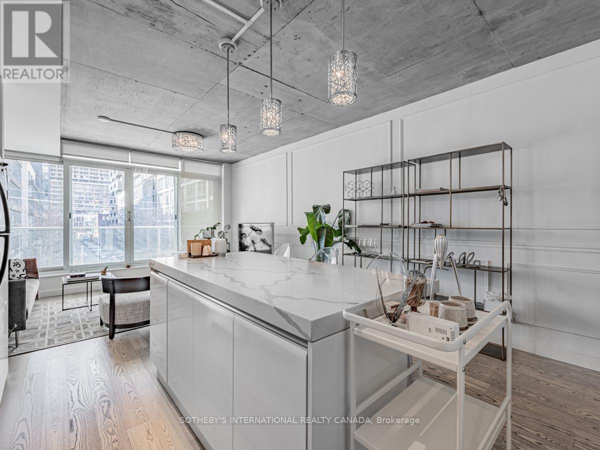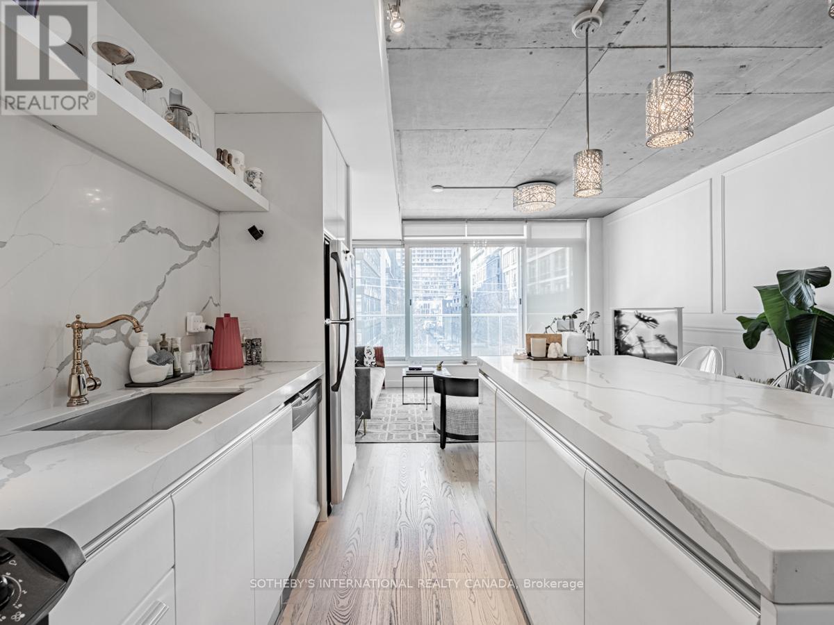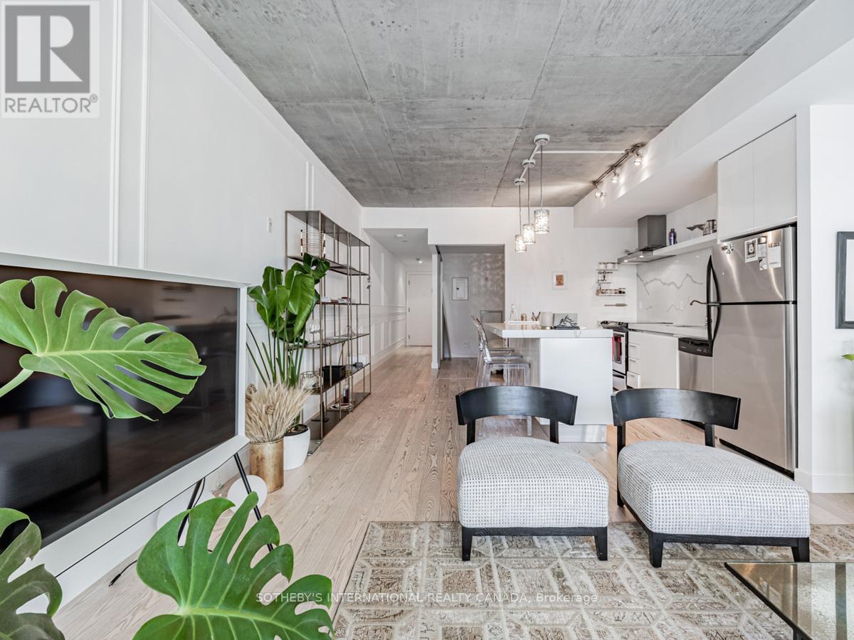 Experience luxury urban living at the highly coveted 75 Portland, where sophisticated design meets vibrant city life. This expansive loft, ideally located in the heart of King West Village, offers an unparalleled lifestyle surrounded by a wealth of neighborhood amenities. Perfectly upgraded and tailored for those who appreciate refined living, this space is flooded with natural light. Boasting approximately 650 sqft of thoughtfully designed interiors, plus a spacious balcony, the open-concept layout is enhanced by sleek, modern finishes. Perfectly Situated And Within Walking Distance Of Public Transit, Great Restaurants, Fitness Studios, Parks, And All Sought-After Conveniences. *Partially furnished* as seen in photos. The bed &couch are excluded. Landlord open to a 6-month lease. (id:51158)