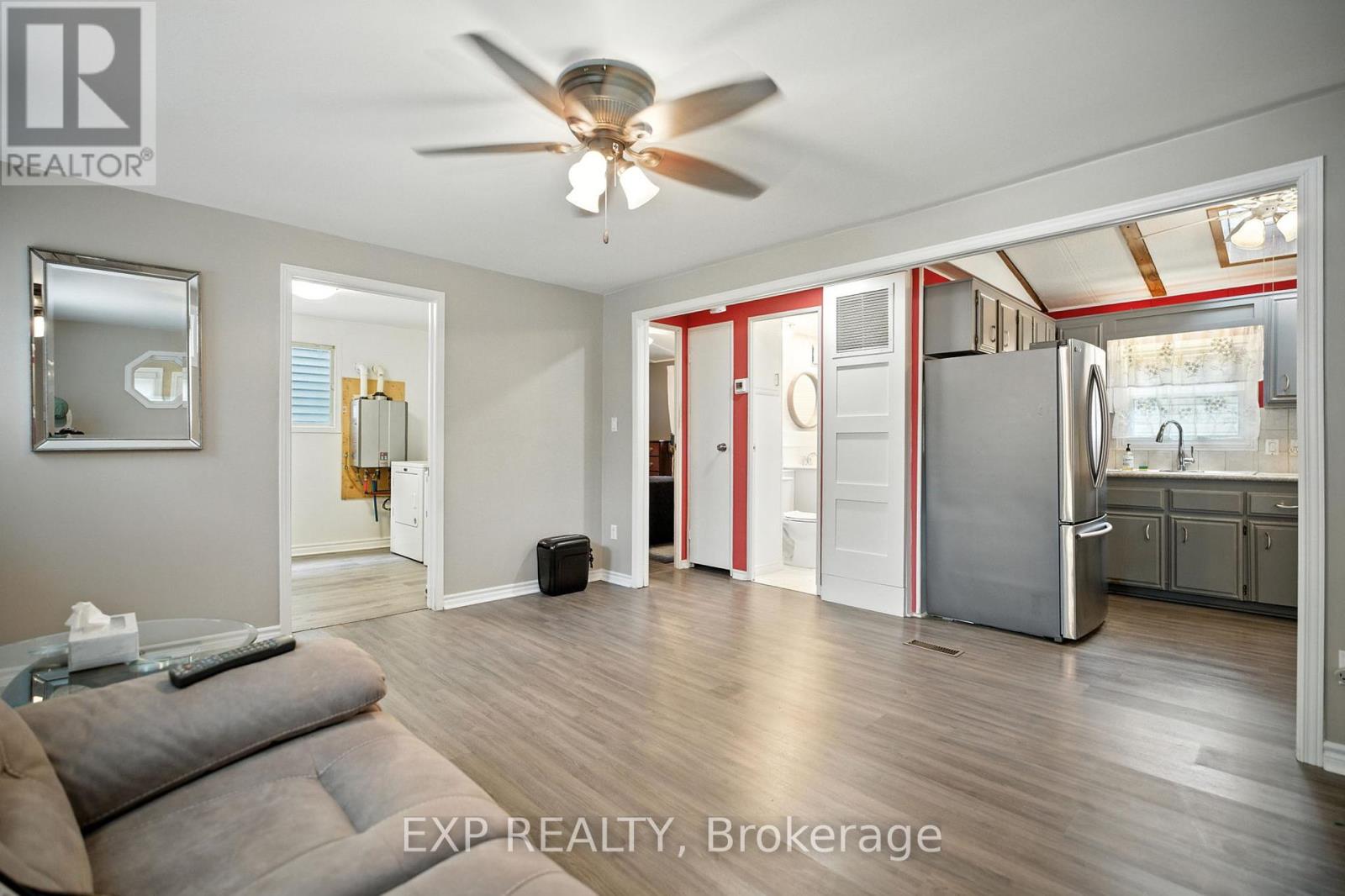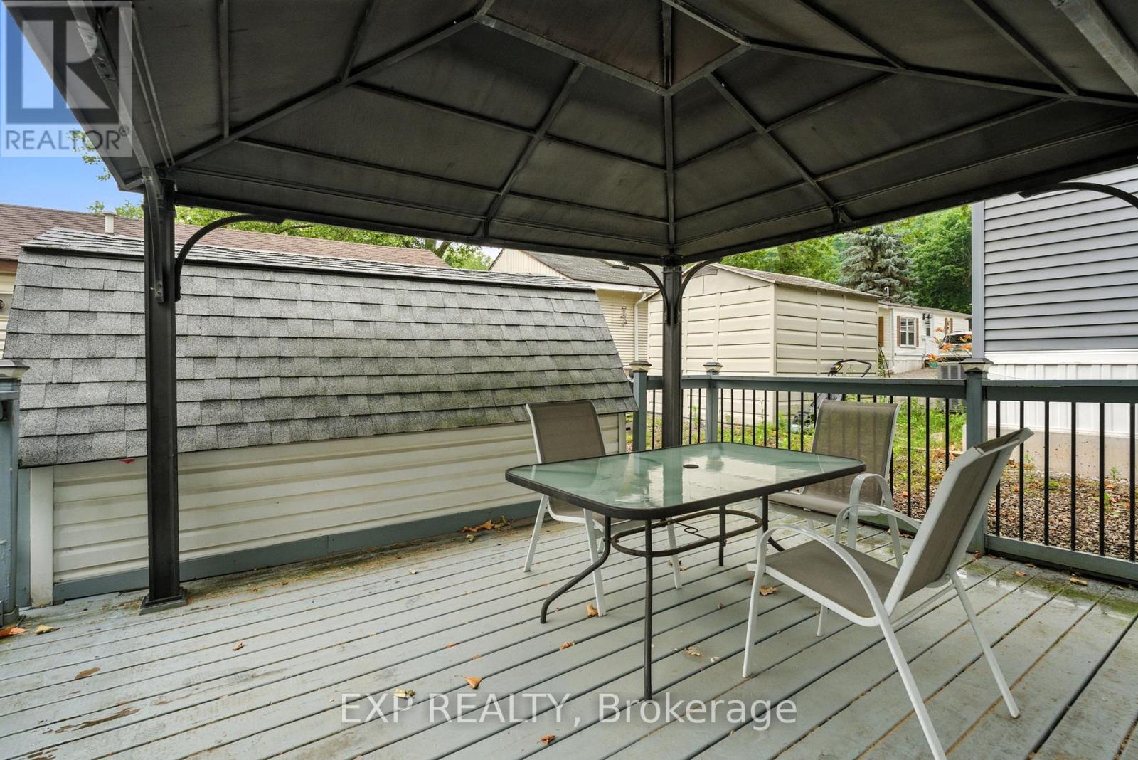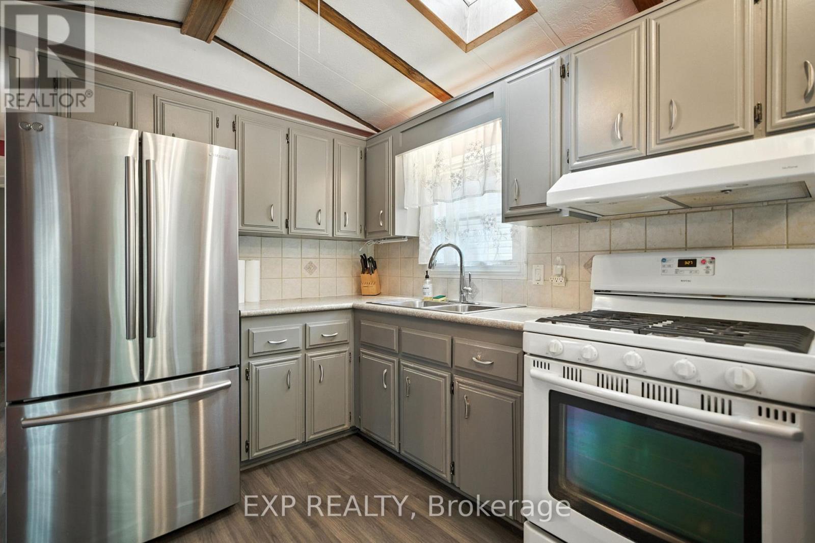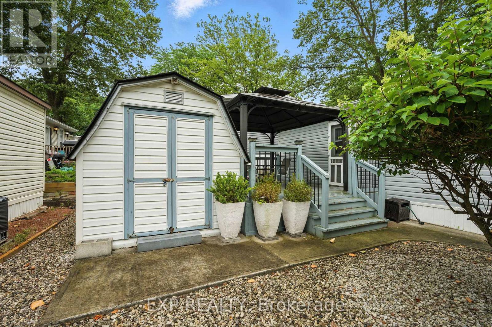 Welcome to Creekside Senior Estates! Located in the beautiful town of St Davids, This exclusive 55 plus living community is nestled in Niagara's premier wine country, close to Queenston Heights and other attractions, golf courses, a minute drive to Niagara Falls, minutes from Niagara On The Lake downtown, super close to the 405/QEW highway and has everything you'd want to enjoy living on the property. The community centre offers billiards, book/DVD lending, a games room, meeting room, and a kitchen for community members to use. Weekly activities include bingo, playing cards, dominoes, community work parties, 50/50 draws and gardening sessions. A daily happy hour gathering gives everyone a chance to enjoy the company of their fellow residents. Several larger events are planned monthly and often include a community breakfast, potluck supper, movie night, town hall meeting, craft workshops, or even a duck race down Four Mile Creek. Also on site you will find an in-ground community pool, tuck shop, and Canada Post mail delivery (community mailboxes). This beautiful home offers 2 bedrooms with option to keep one an onsite laundry room, open concept kitchen, dining and living area, large foyer/sitting room, newly updated bathroom, a large deck for outdoor living, a shed for all your tools and right across the street is visitor parking and a beautiful tree lined brook with common seating area. This property also comes with $25000 in co-op shares that lower your pad fees from around $650 per month to $235 per month. (id:51158)