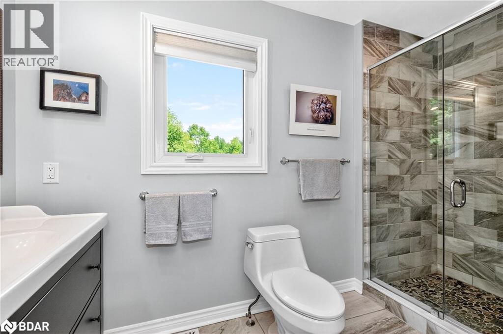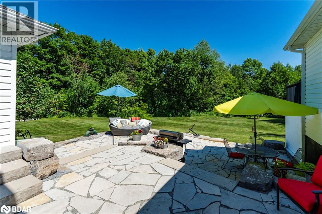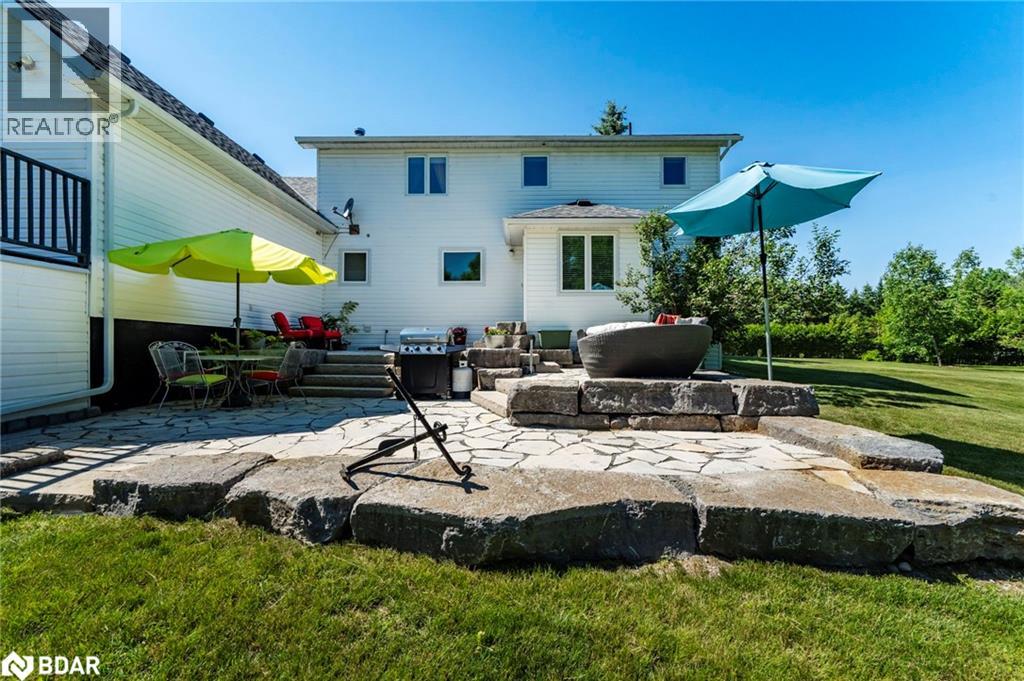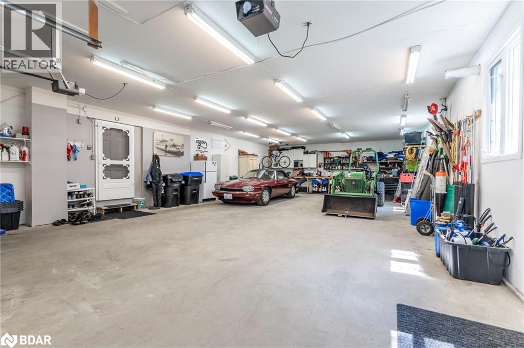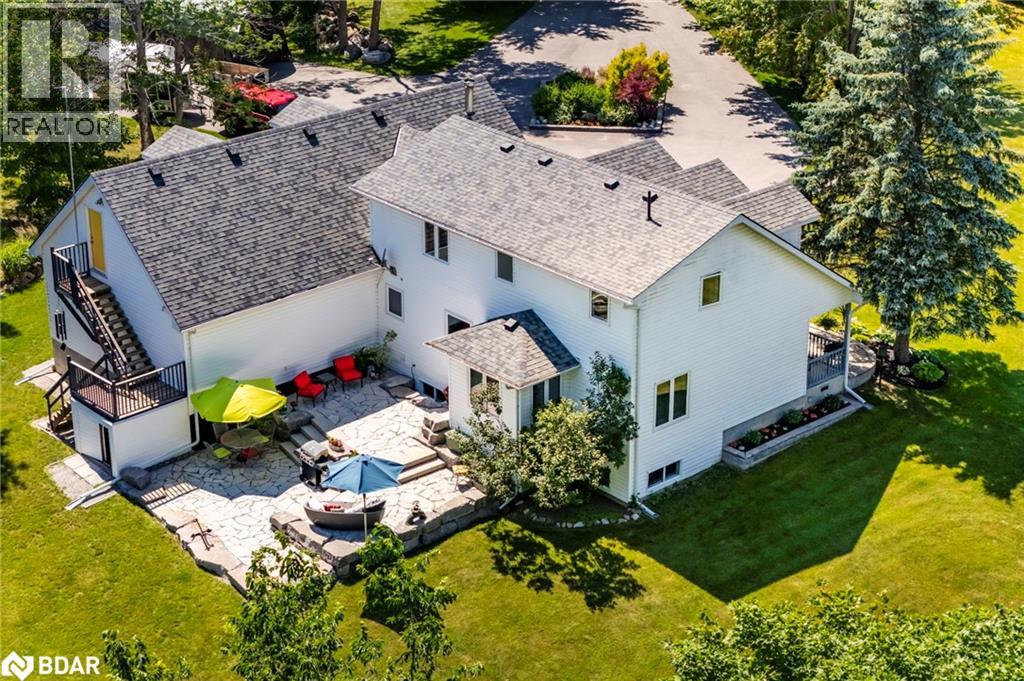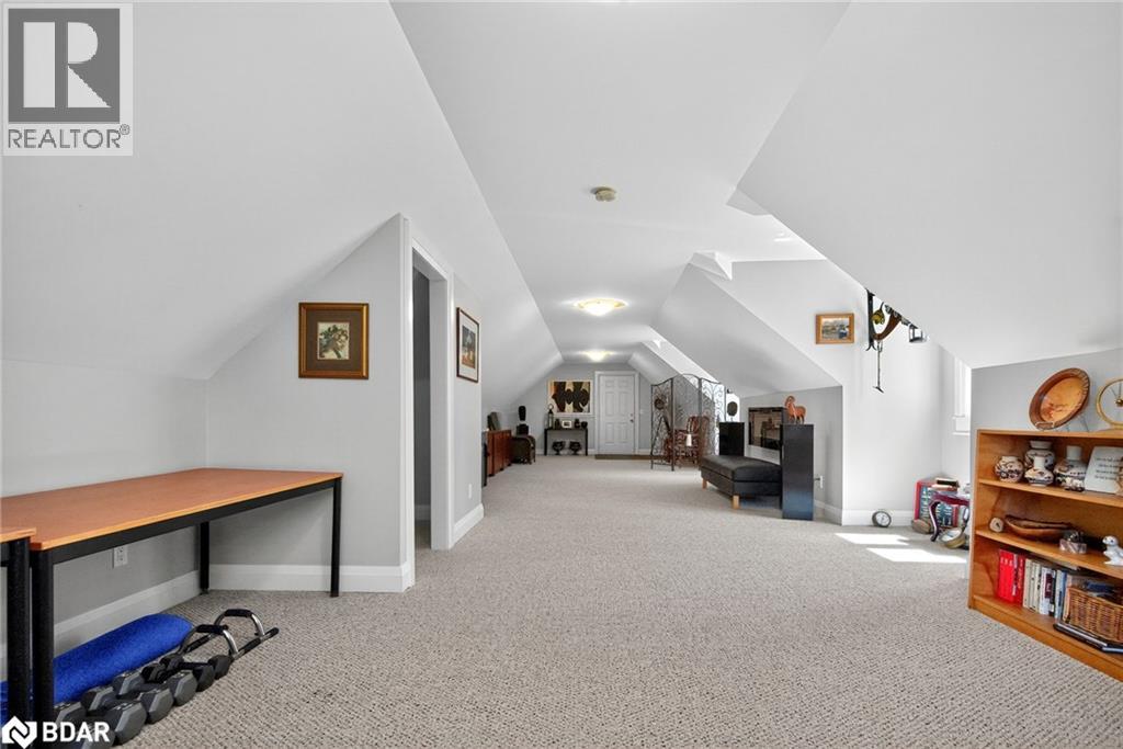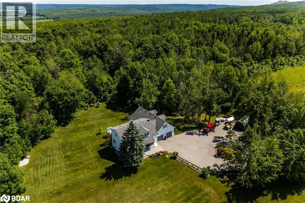 Set on a picturesque 7.7-acre lot at the edge of Moonstone, this updated Cape Cod-style home blends charm, space, and versatility. With 3 bedrooms, 4 bathrooms, and over $200,000 in thoughtful upgrades since 2016, it’s ideal for families, hobbyists, or anyone seeking a private retreat with room to grow. The main floor features maple hardwood floors and light-filled open-concept living, dining, and kitchen areas, along with a cozy den and a convenient two-piece bath. Upstairs, the spacious primary suite includes a custom closet, three-piece ensuite, and a quiet office nook, while two additional bedrooms and a full bathroom complete the upper level. A bonus room above the garage—with its own separate entrance—offers flexible living space, perfect for a studio, guest suite, or home-based business. The finished basement includes a rec room with bar, guest accomodations, bathroom, laundry area, and access to a large heated workshop located beneath the tandem garage. With direct outdoor access and a ramp to the backyard, it’s an ideal space for hobbyists or storing ATVs, snowmobiles, or equipment. Outdoors, enjoy a new stone patio, scenic walking trails, and ample parking with a paved driveway, 4-car tandem garage, and space for up to 12 vehicles. A whole-home Generac generator ensures peace of mind year-round. This is a rare opportunity to own a property that checks every box—privacy, functionality, and potential—in one of Moonstone’s most desirable settings. (id:51158)