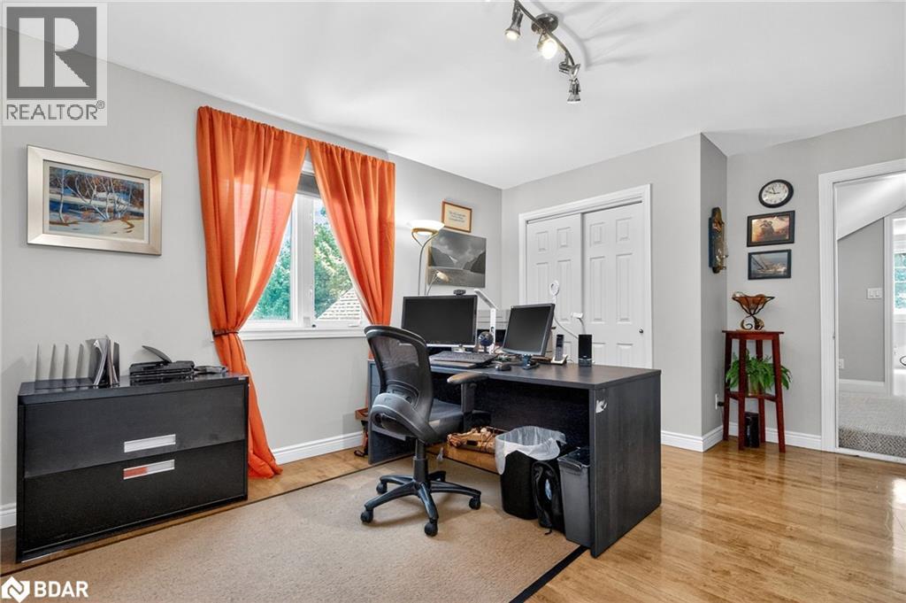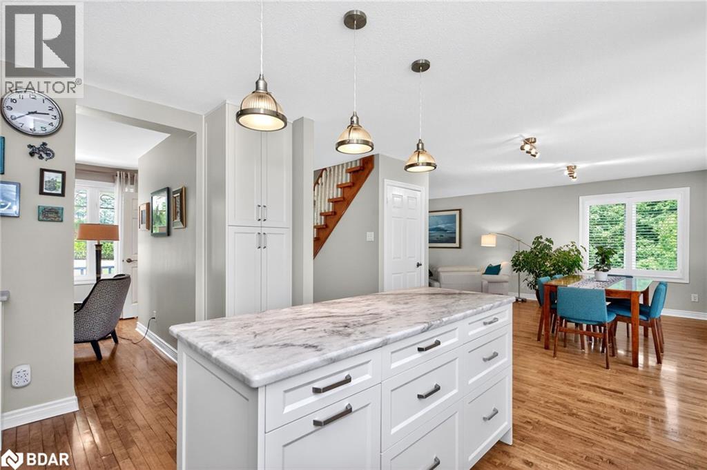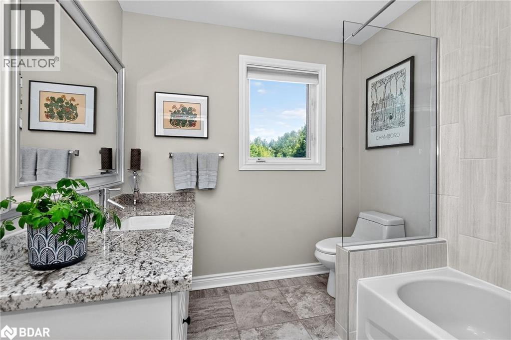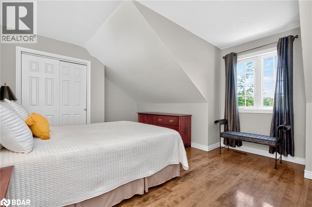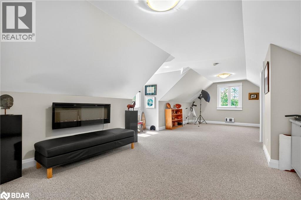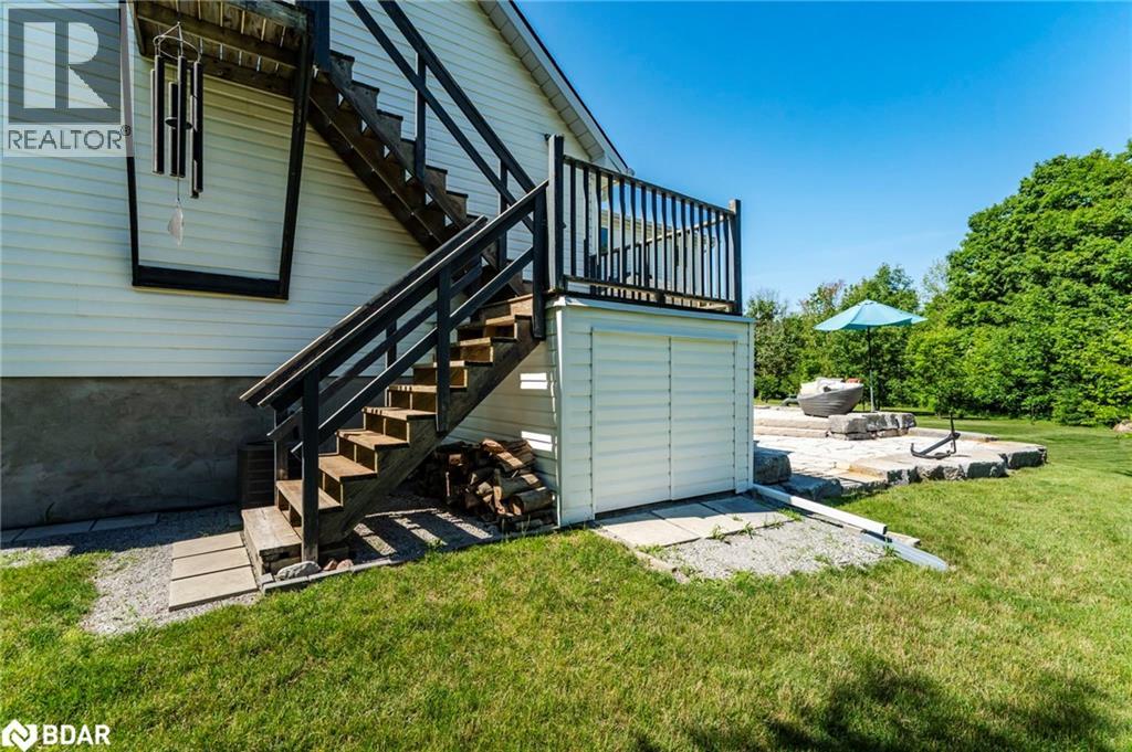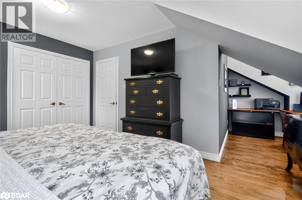 Set on a picturesque 7.7-acre lot at the edge of Moonstone, this updated Cape Cod-style home blends charm, space, and versatility. With 3 bedrooms, 4 bathrooms, and over $200,000 in thoughtful upgrades since 2016, it’s ideal for families, hobbyists, or anyone seeking a private retreat with room to grow. The main floor features maple hardwood floors and light-filled open-concept living, dining, and kitchen areas, along with a cozy den and a convenient two-piece bath. Upstairs, the spacious primary suite includes a custom closet, three-piece ensuite, and a quiet office nook, while two additional bedrooms and a full bathroom complete the upper level. A bonus room above the garage—with its own separate entrance—offers flexible living space, perfect for a studio, guest suite, or home-based business. The finished basement includes a rec room with bar, guest accomodations, bathroom, laundry area, and access to a large heated workshop located beneath the tandem garage. With direct outdoor access and a ramp to the backyard, it’s an ideal space for hobbyists or storing ATVs, snowmobiles, or equipment. Outdoors, enjoy a new stone patio, scenic walking trails, and ample parking with a paved driveway, 4-car tandem garage, and space for up to 12 vehicles. A whole-home Generac generator ensures peace of mind year-round. This is a rare opportunity to own a property that checks every box—privacy, functionality, and potential—in one of Moonstone’s most desirable settings. (id:51158)